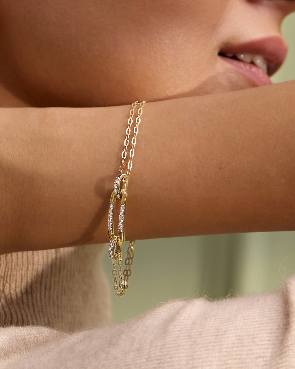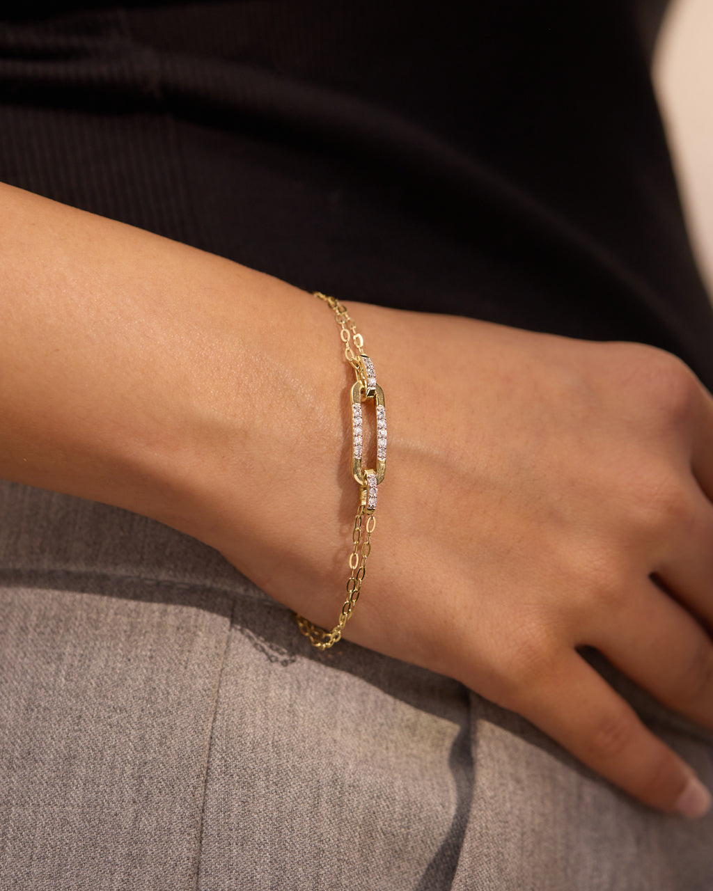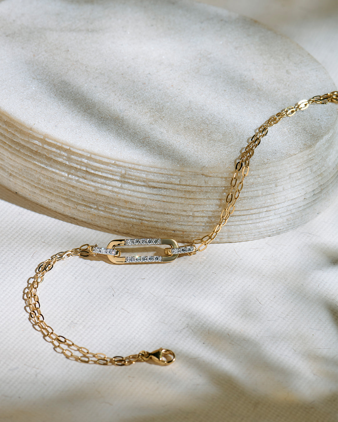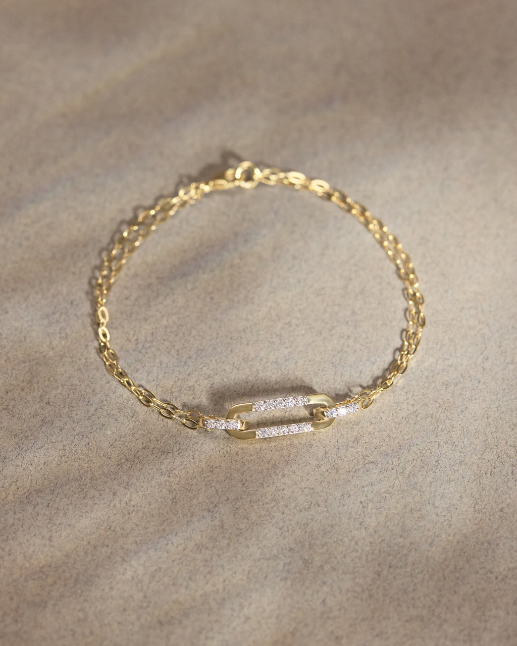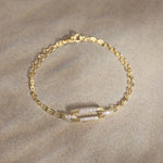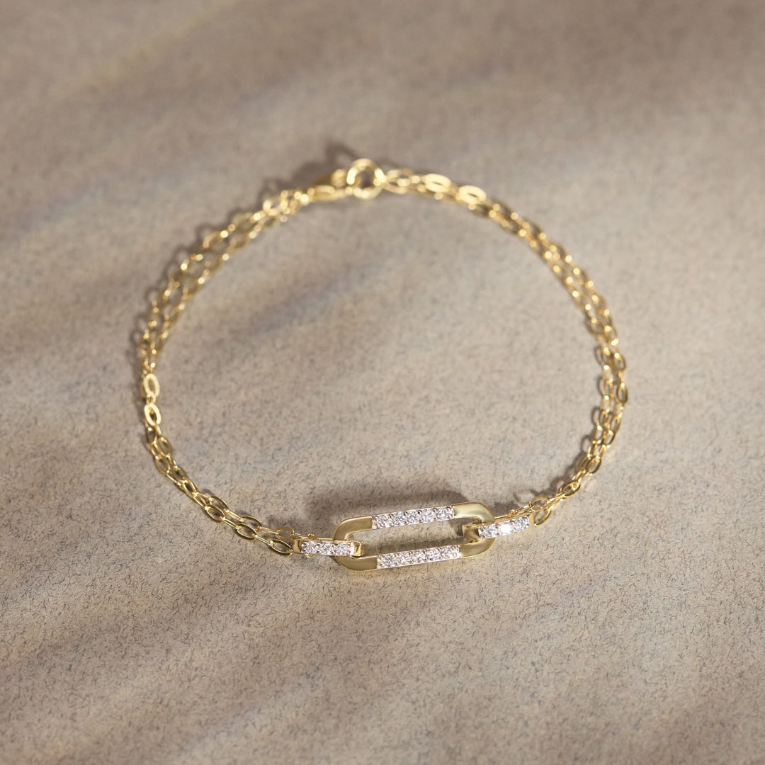 Sleek oval links paired with pavé diamond connectors, this bracelet strikes the balance between minimal design and statement sparkle. Lightweight yet luxurious, it’s crafted in 14kt gold vermeil to give your wrist a luminous finish. Layer it with your go-to bangles, or let it stand alone as a quiet expression of style.