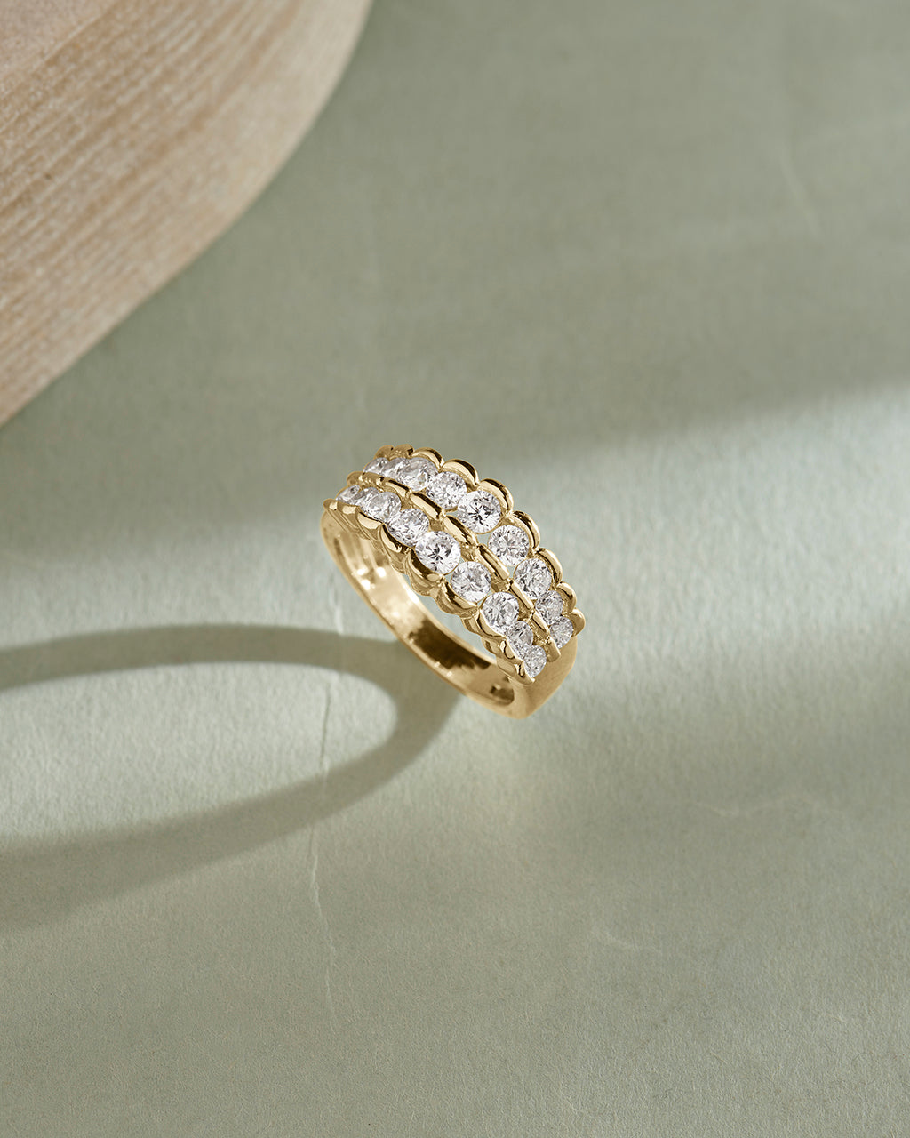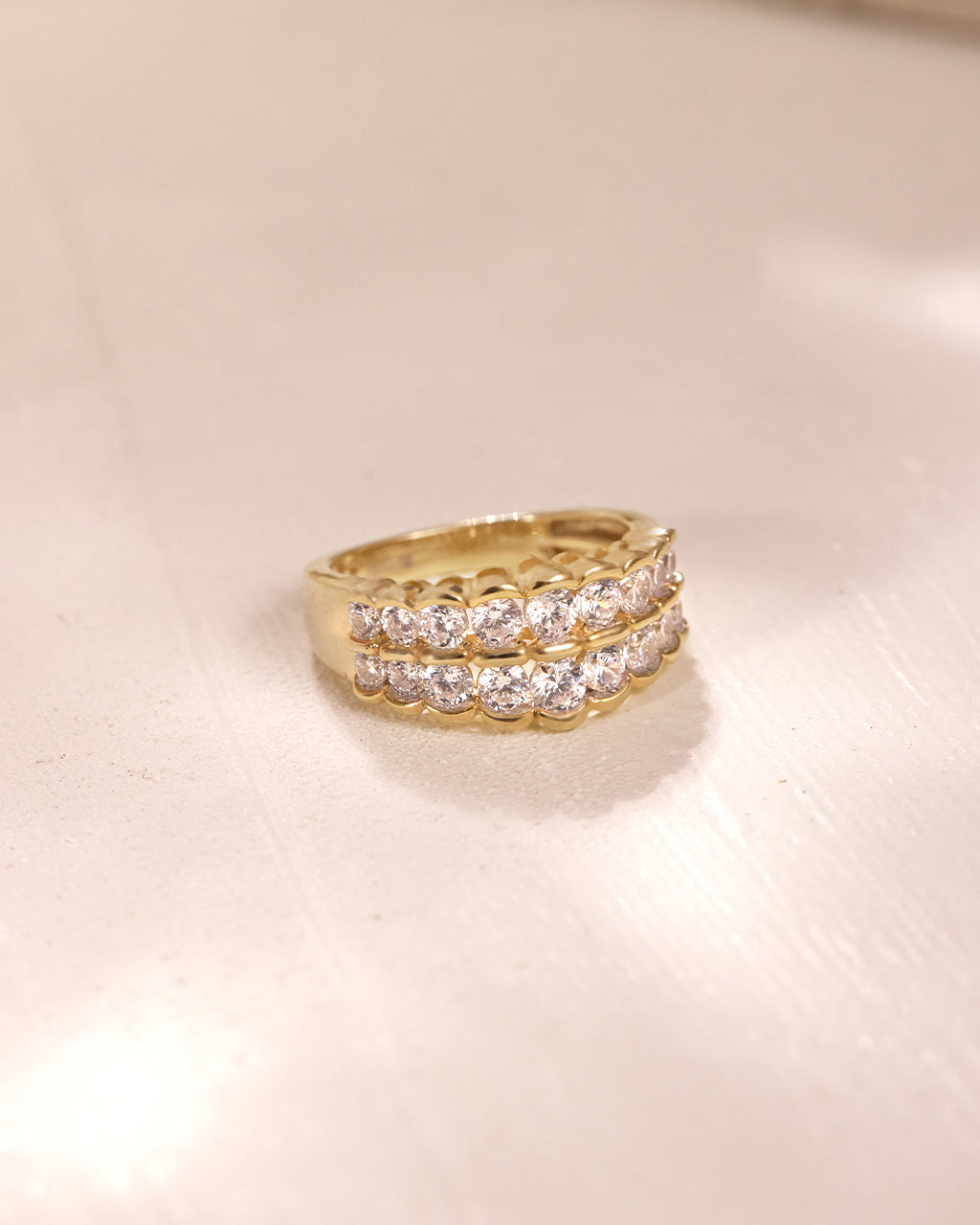 The Duo Shine Band pairs parallel lines of shimmering diamonds with a sculpted gold vermeil setting for timeless elegance.