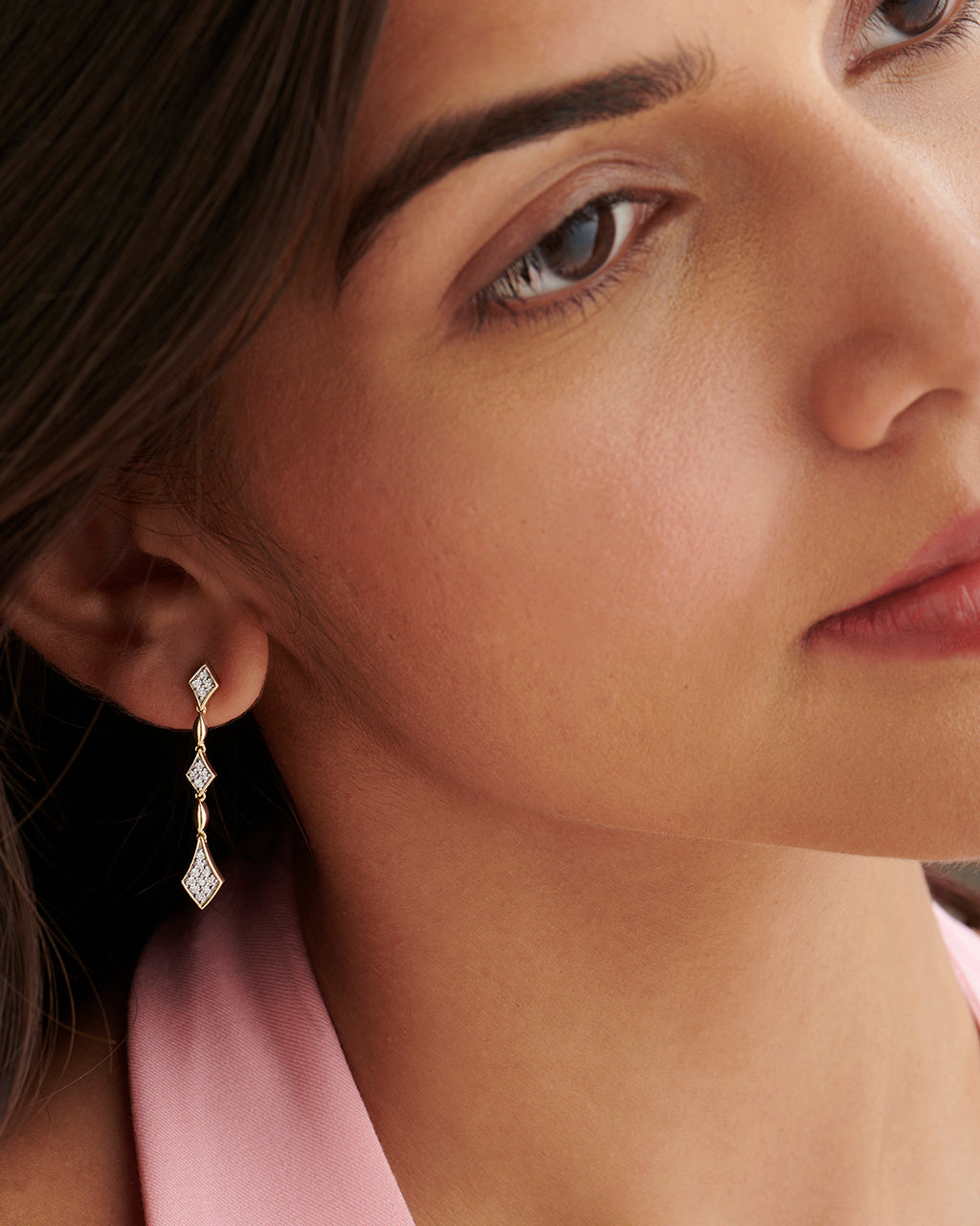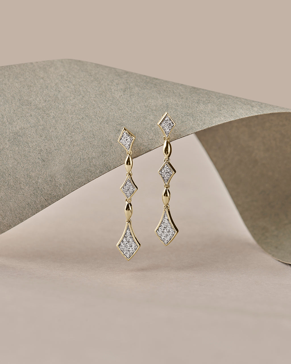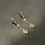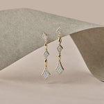 Diamonds in perfect alignment. These 14k gold vermeil drop earrings feature diamond-shaped frames set with pavé diamonds, linked by polished gold beads, creating a long, elegant silhouette that moves with subtle shimmer.