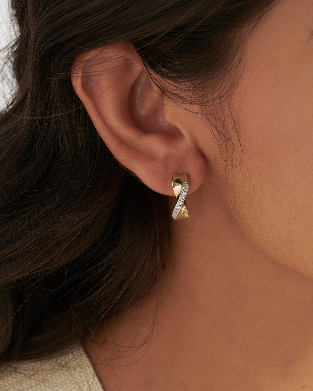 A fresh spin on the classic hoop. These 14k gold vermeil earrings feature a sculpted twist design accented with diamonds, adding movement, dimension, and sparkle from every angle.