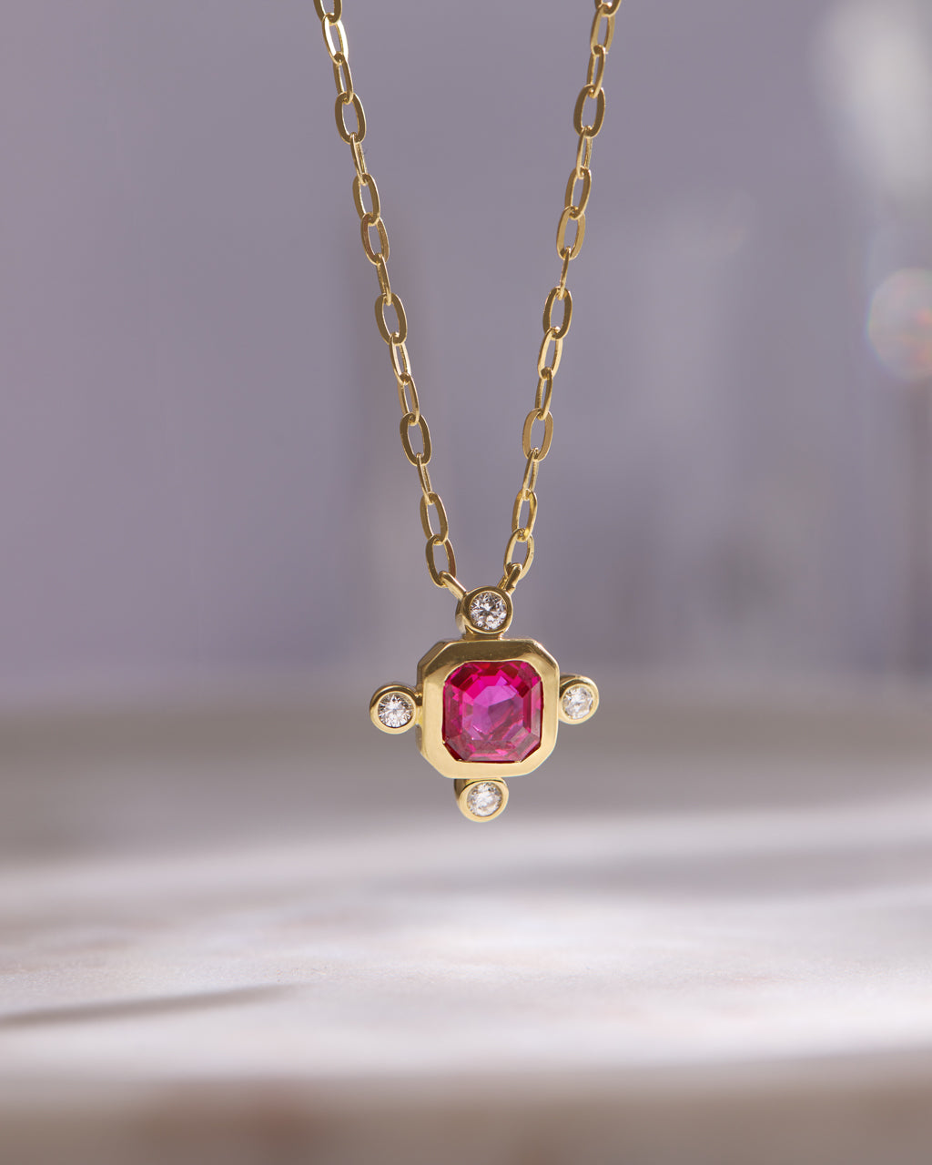 The Modern Gem Necklace redefines minimal glamour. With a vibrant gemstone at its heart, accented by sparkling diamonds on each corner, the pendant floats on a fine gold vermeil chain. It’s modern, versatile, and instantly elevates your look.
