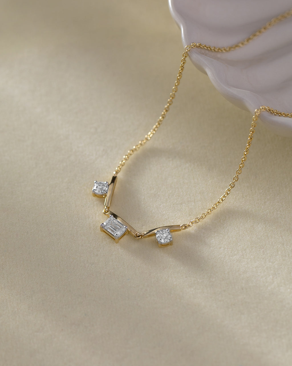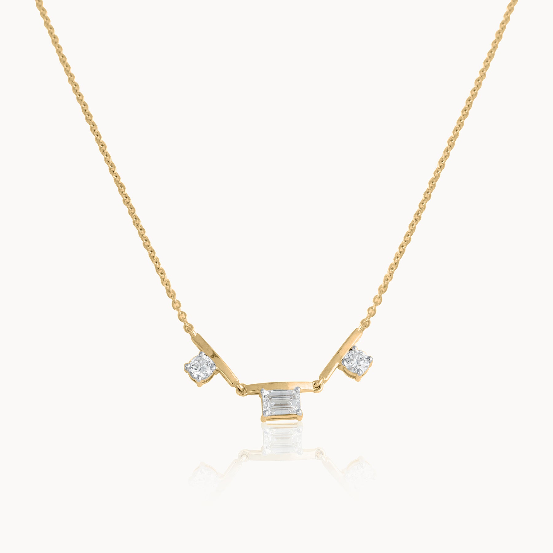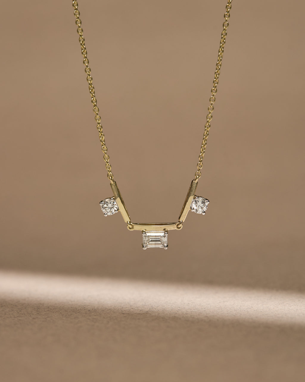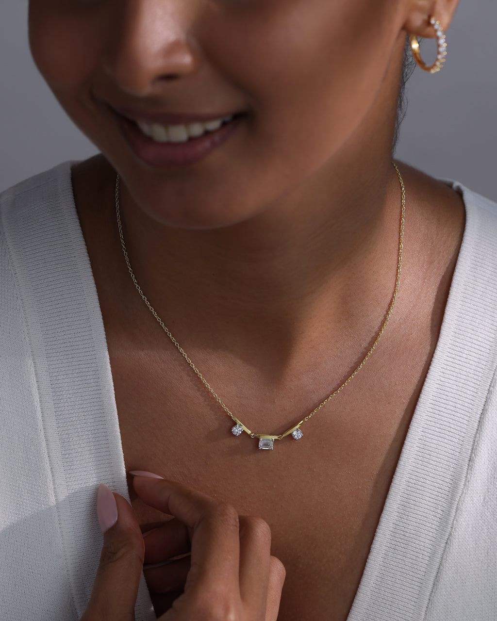 The Arc Diamond Necklace brings together clean lines and timeless sparkle in a curved gold form that hugs the collarbone with ease.