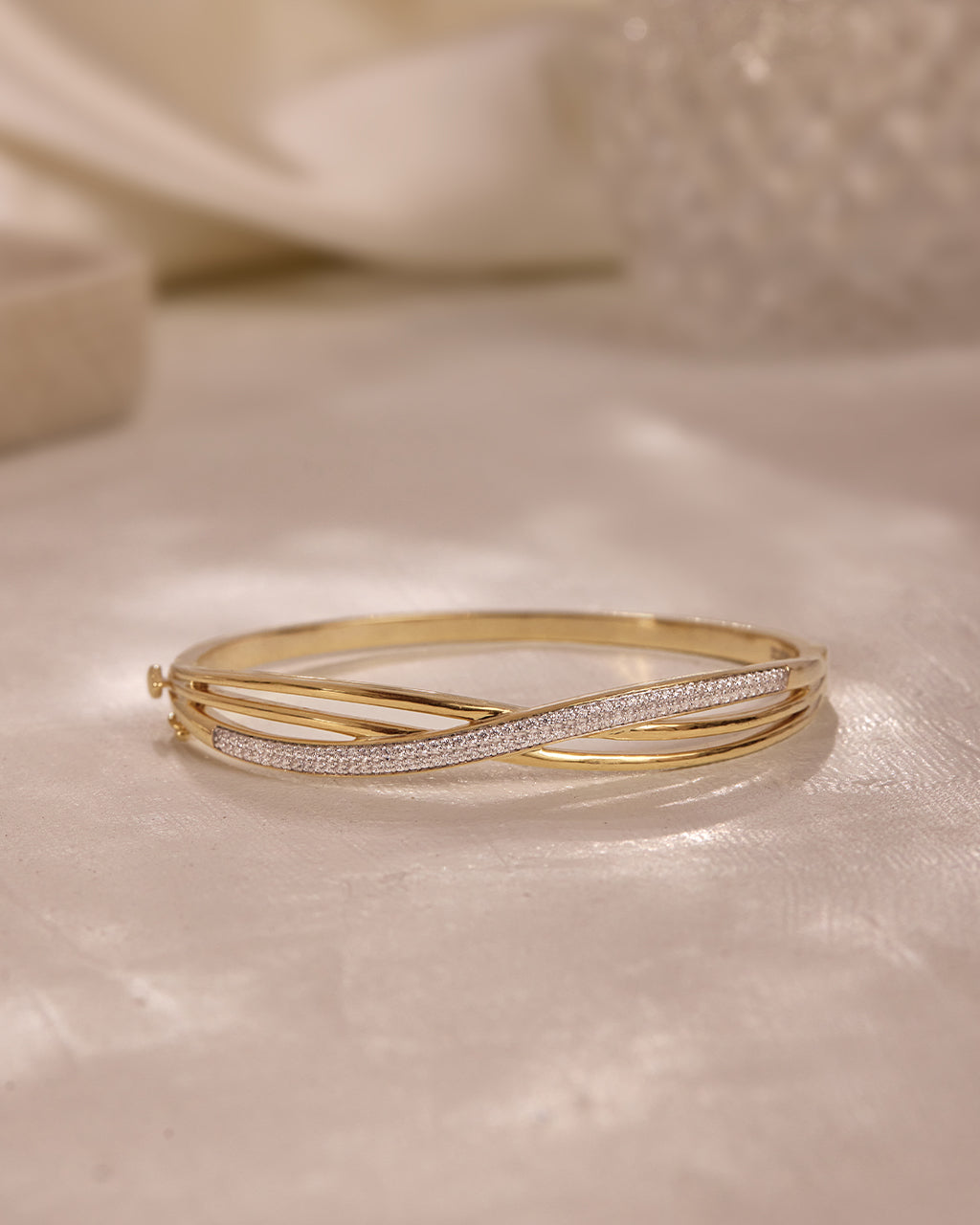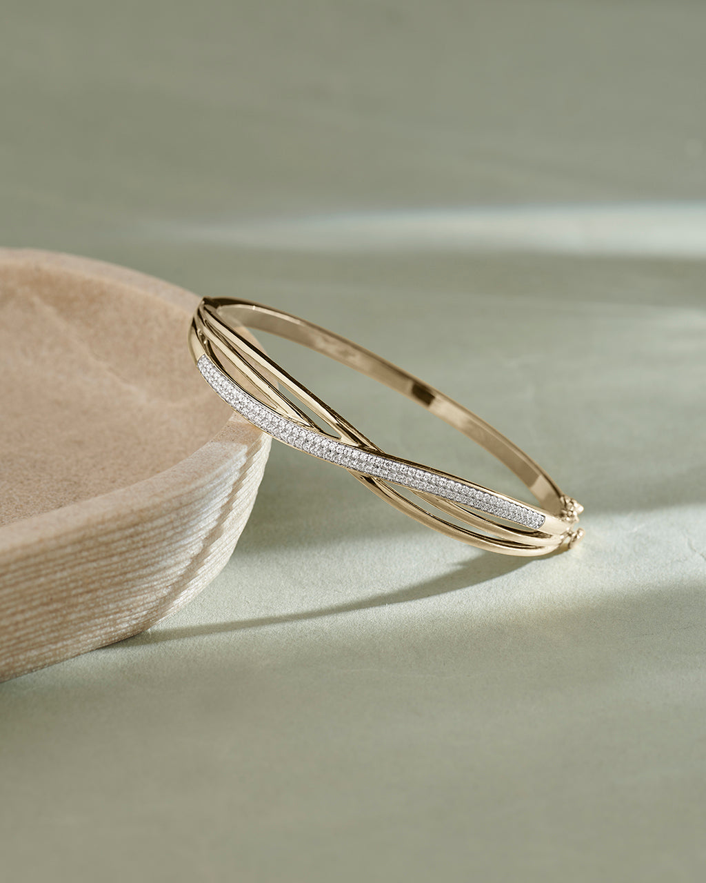 A sleek criss-cross silhouette, accented with a line of sparkling diamonds, crafted in radiant 14kt gold vermeil.