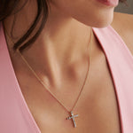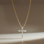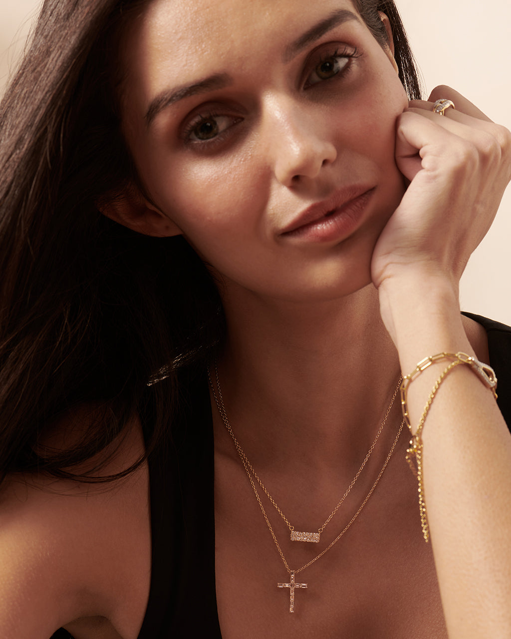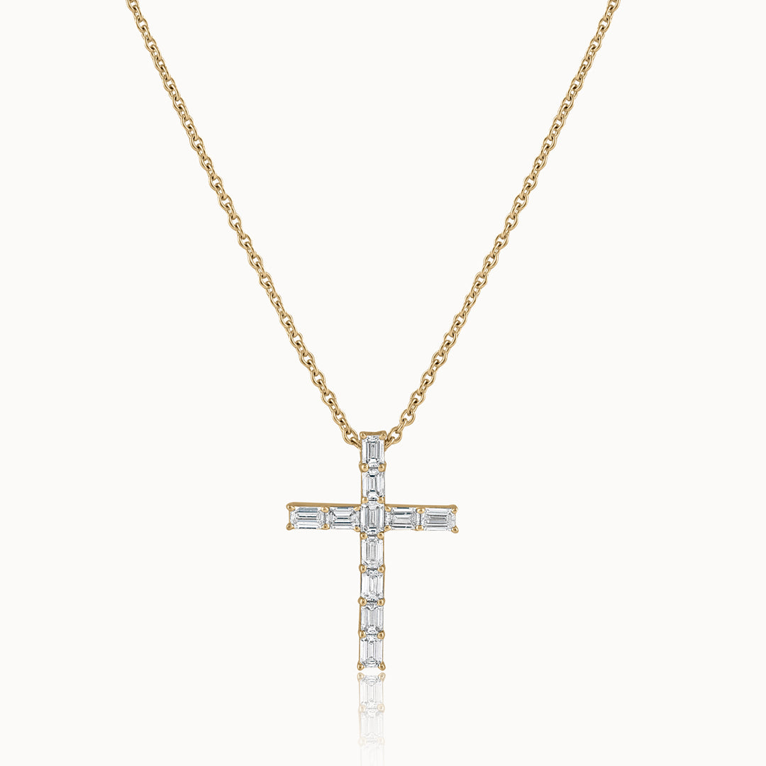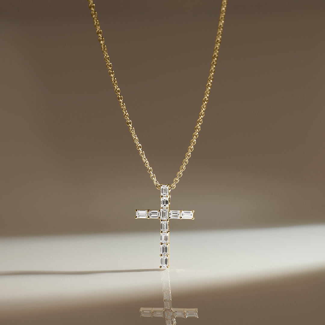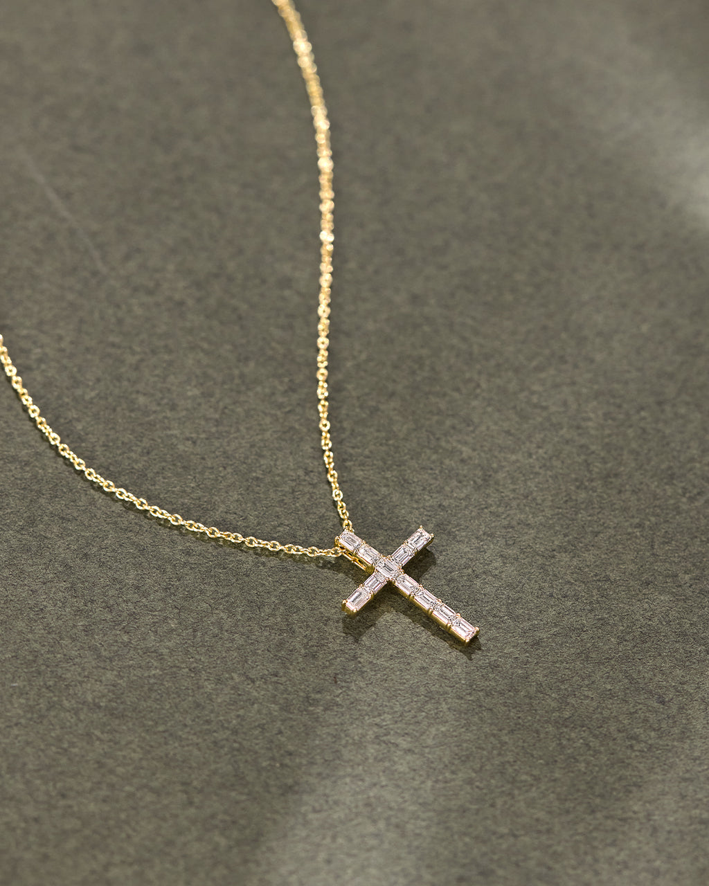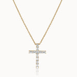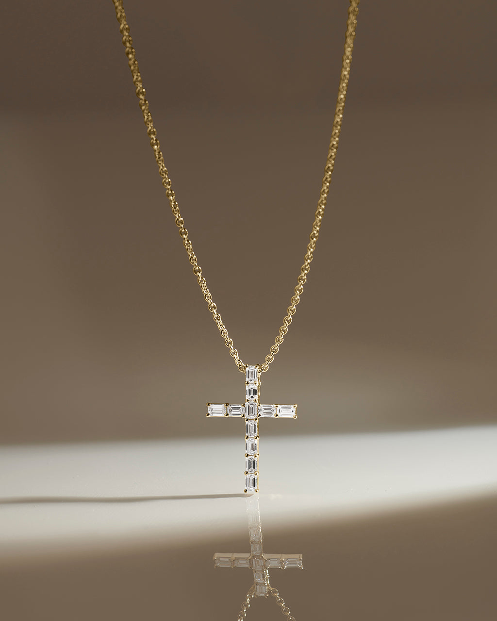 A modern tribute to a timeless symbol. This cross pendant, adorned with baguette diamonds and set in 14kt gold vermeil, offers refined elegance you can wear every day.