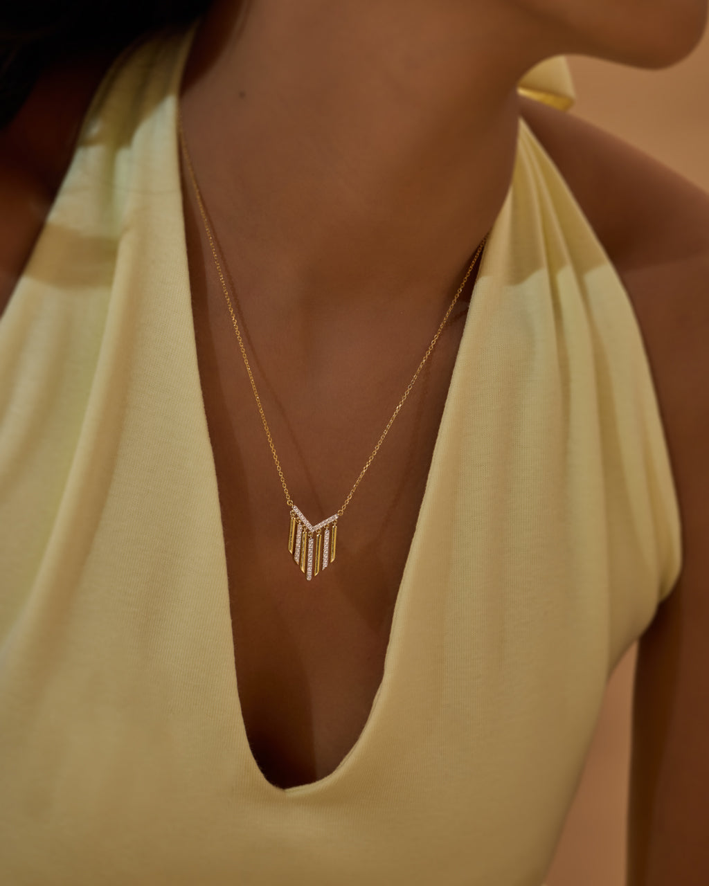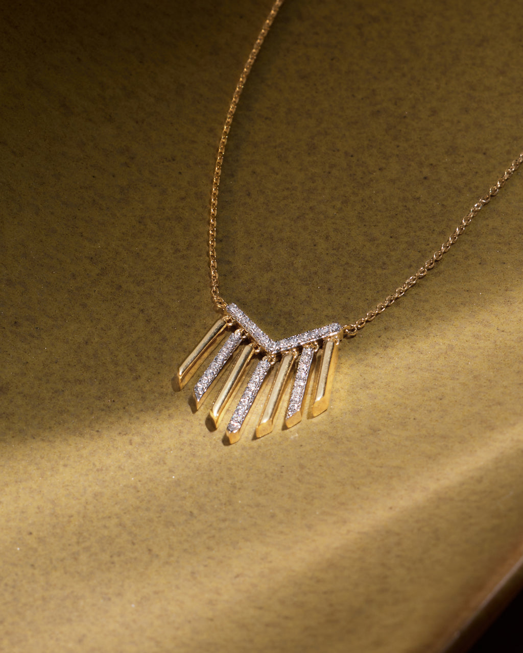 Move and shine with ease—the Dazzling Fringe Diamond Necklace in polished 14kt Gold Vermeil features playful diamond-studded fringe that catches the light with every step. An effortless way to add sparkle to your everyday style.
