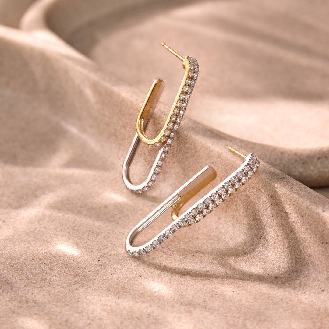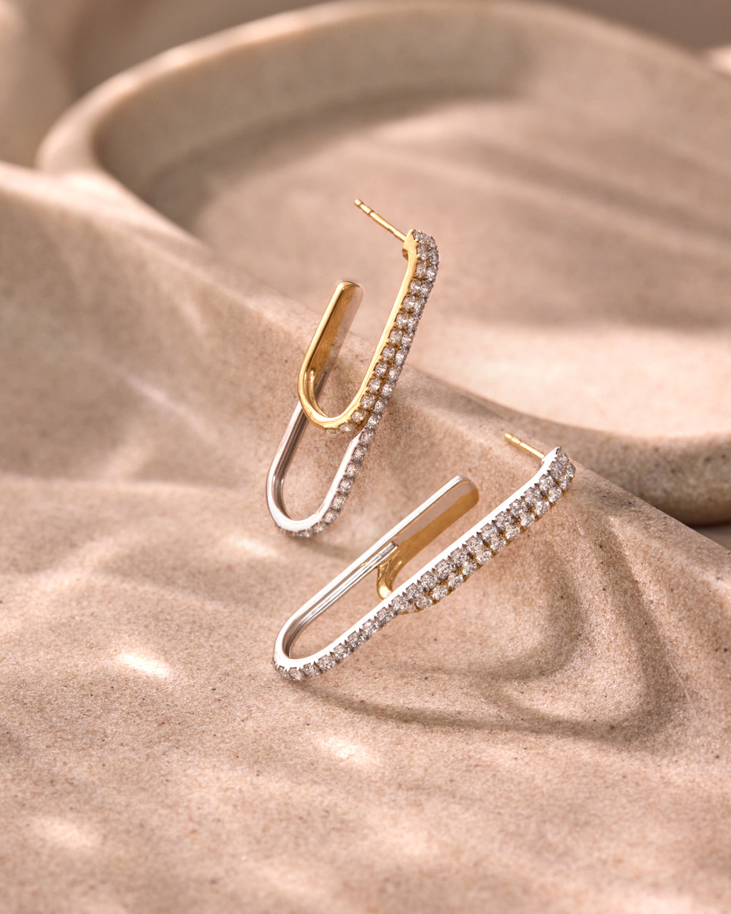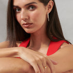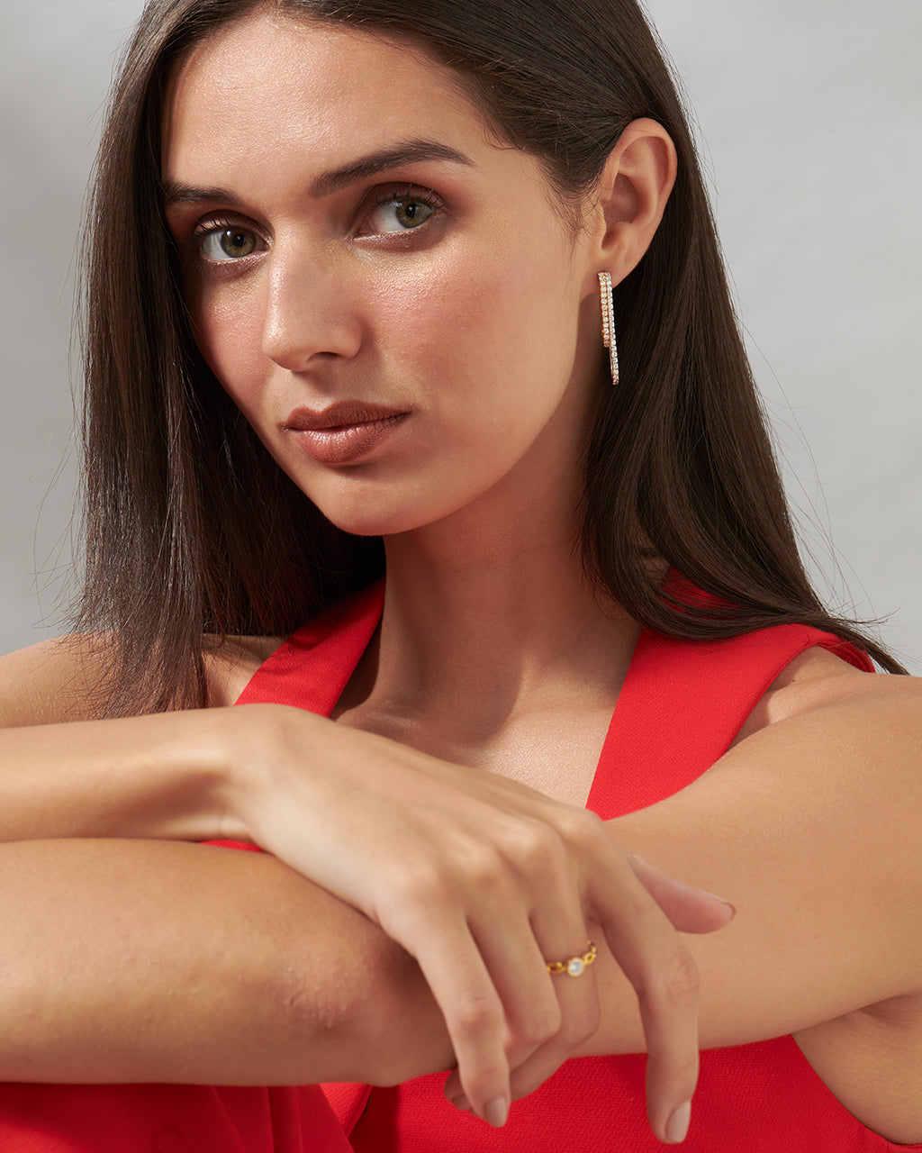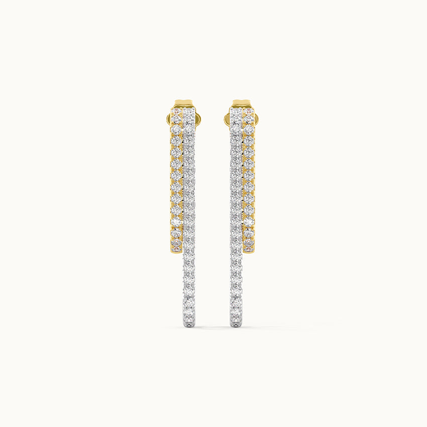The Elongated Drip Diamond Earrings in polished 14kt Gold Vermeil feature a sleek, extended silhouette fully lined with pavé diamonds,crafted to catch the light and make an entrance.