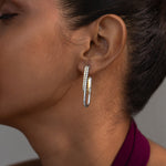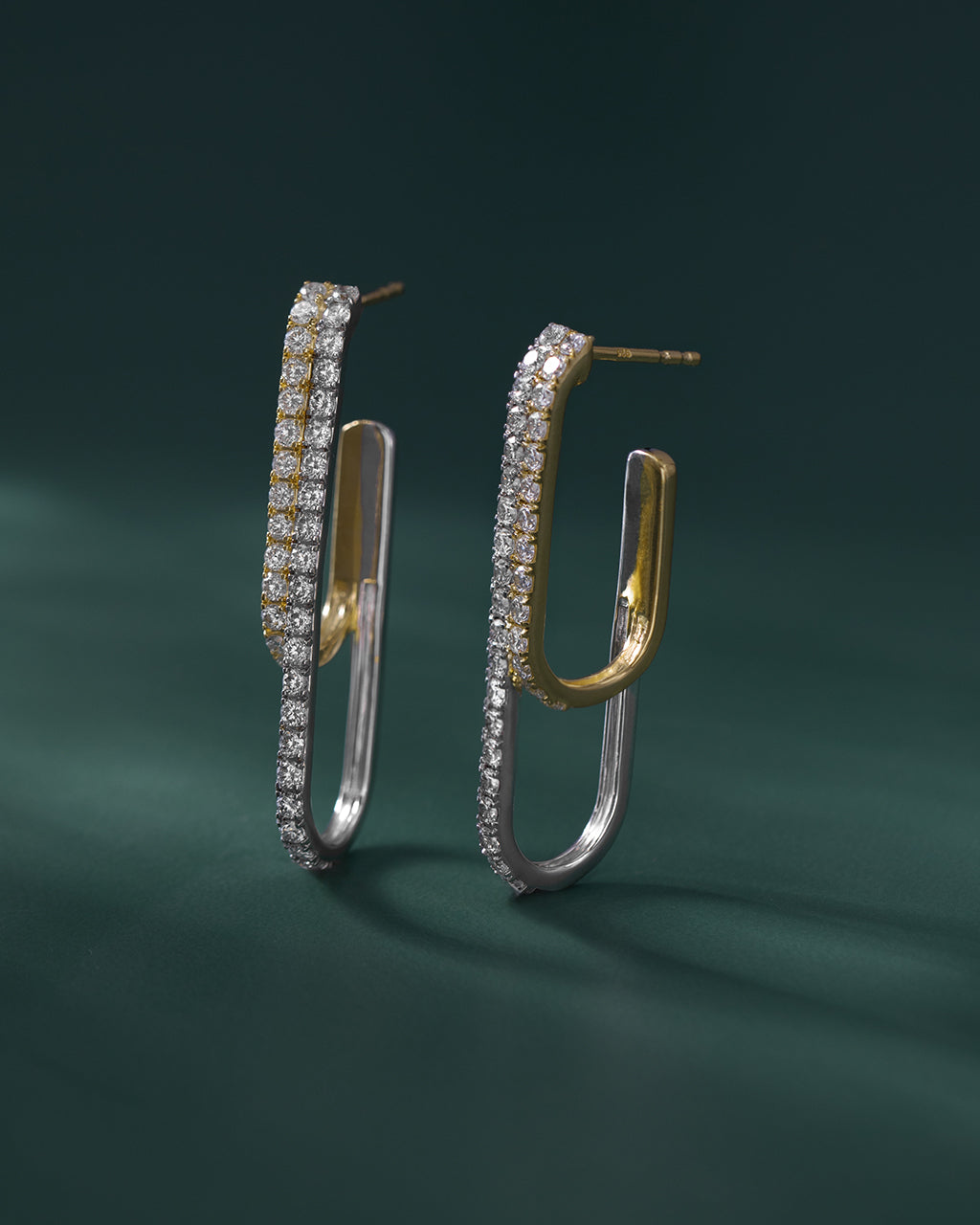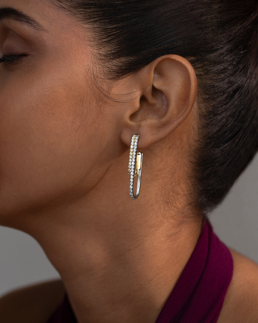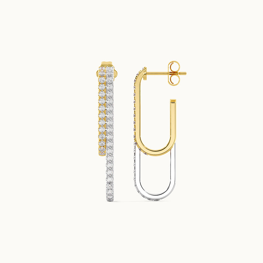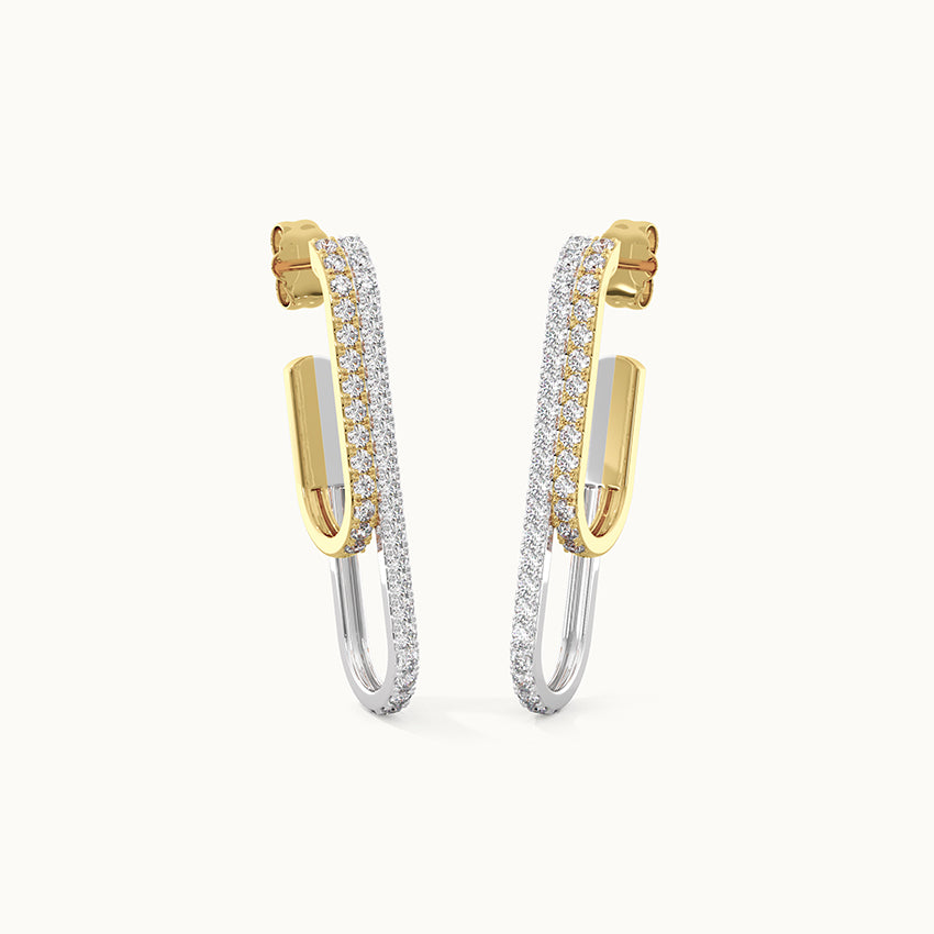 The Elongated Drip Diamond Earrings in polished 14kt Gold Vermeil feature a sleek, extended silhouette fully lined with pavé diamonds,crafted to catch the light and make an entrance.