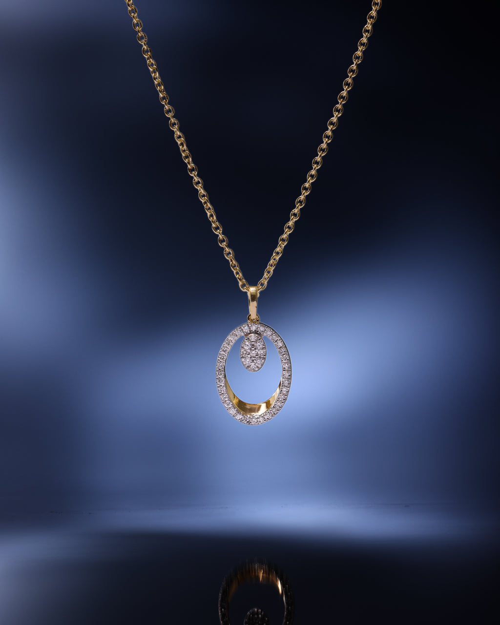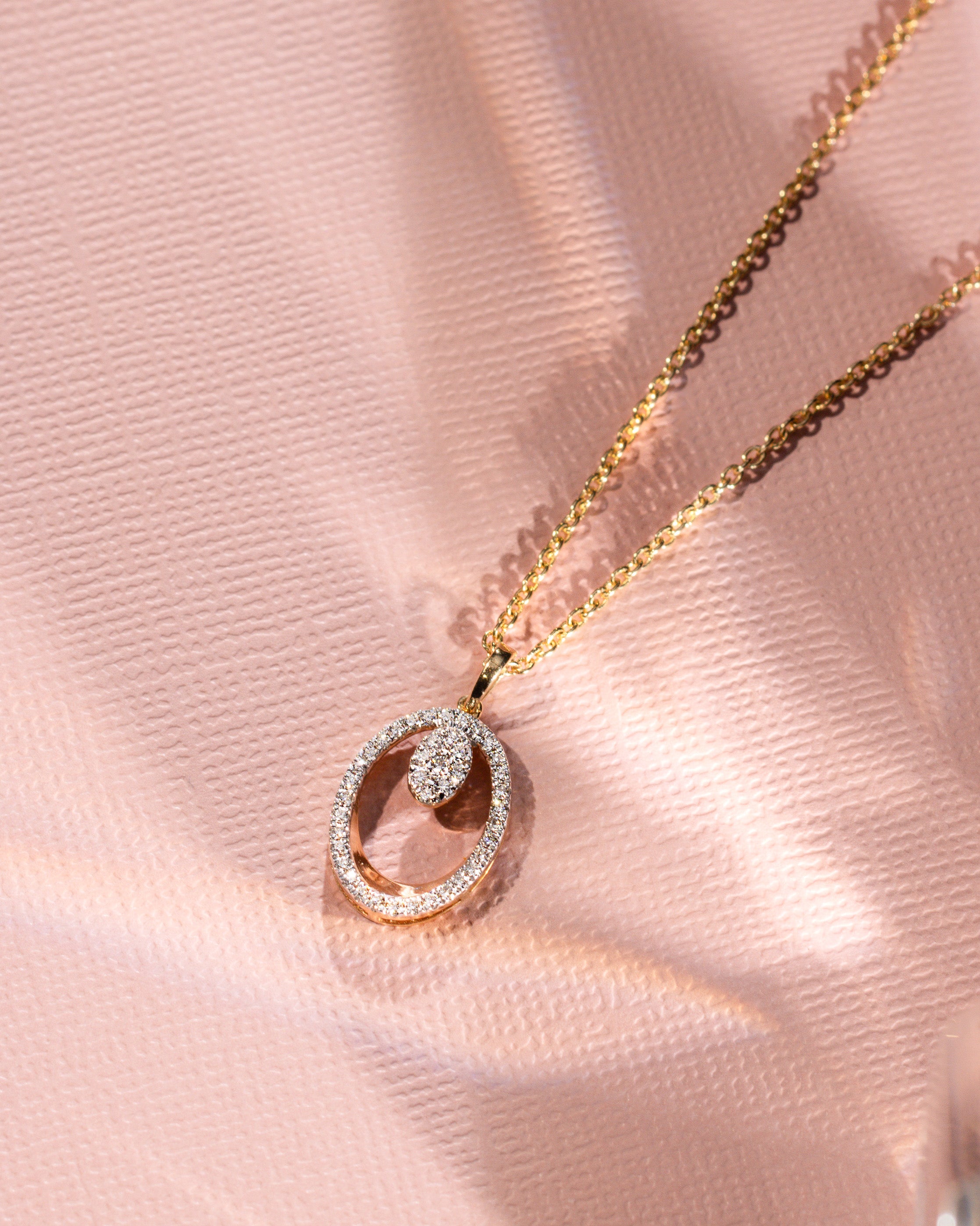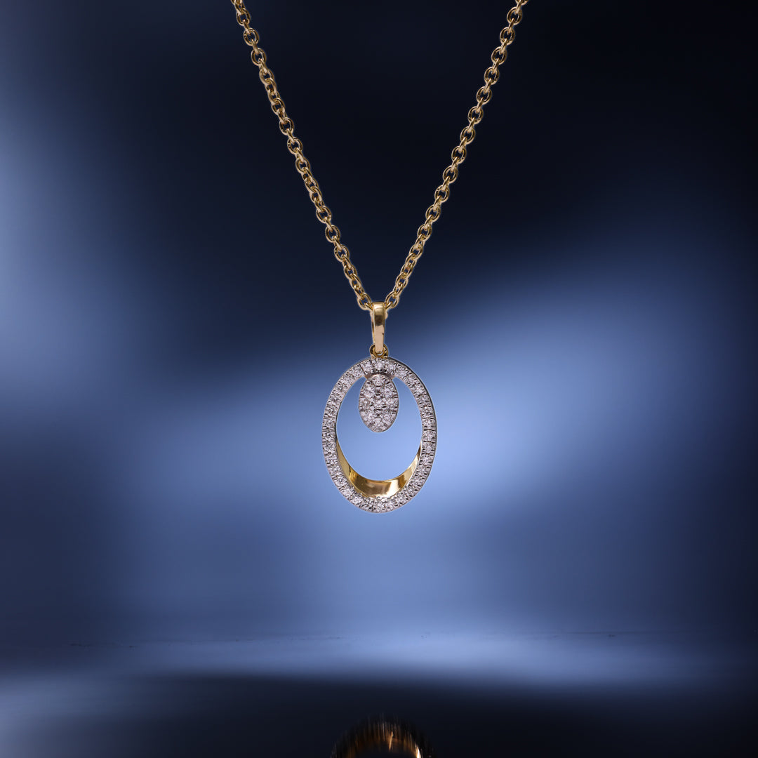 Timeless elegance with a brilliant touch—the Oval Diamond Halo Necklace in polished 14kt Gold Vermeil features a luminous oval centerpiece framed by a halo of sparkling diamonds, crafted to light up every occasion.