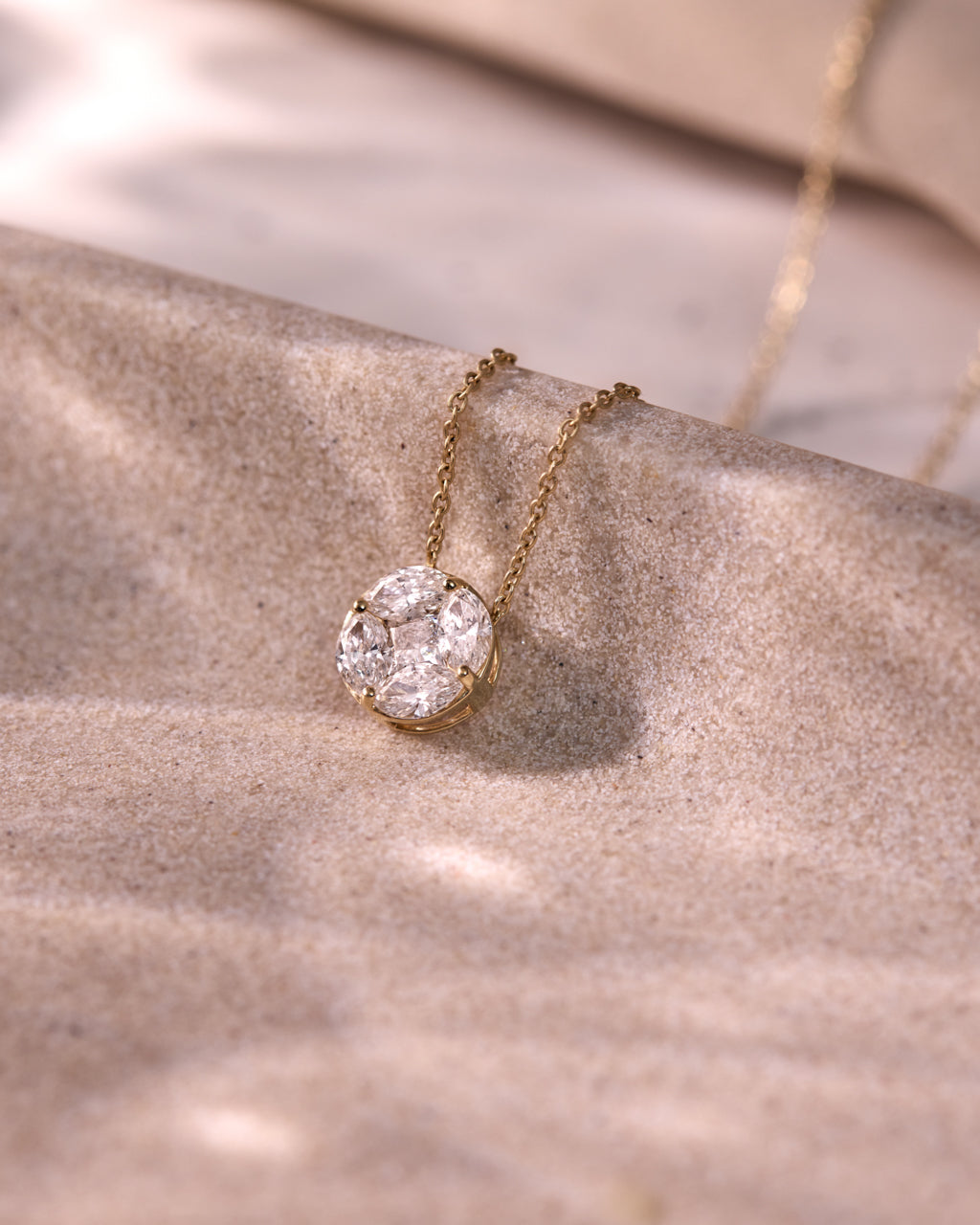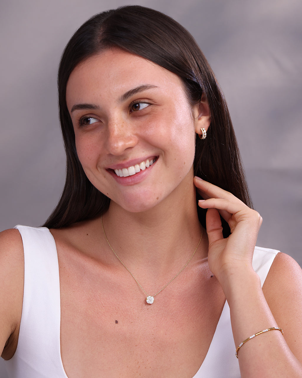 The Solitaire Soul Cluster Necklace centers a singular gem inside a constellation of light—bringing intention, energy, and effortless sparkle to your neckline.