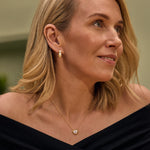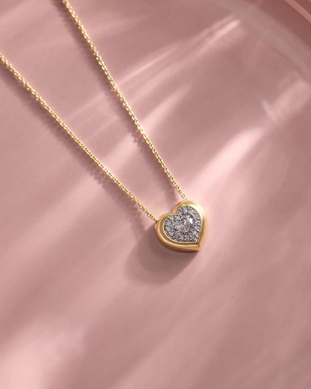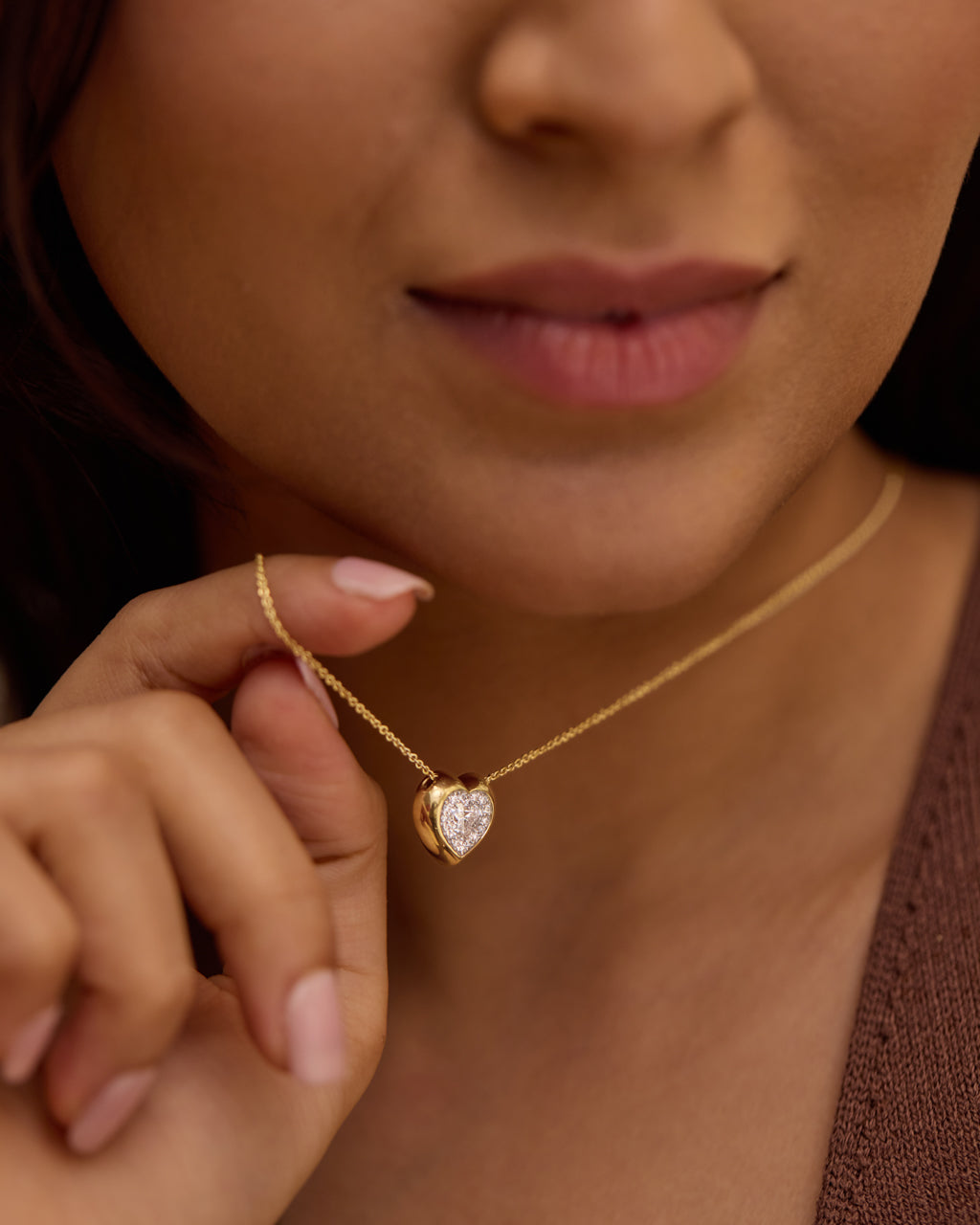 A necklace that holds its own kind of love. The diamond cluster reflects light with soft intent, anchored in 14kt gold vermeil that moves with you. It’s not about grand gestures, it’s about the glow that lingers.