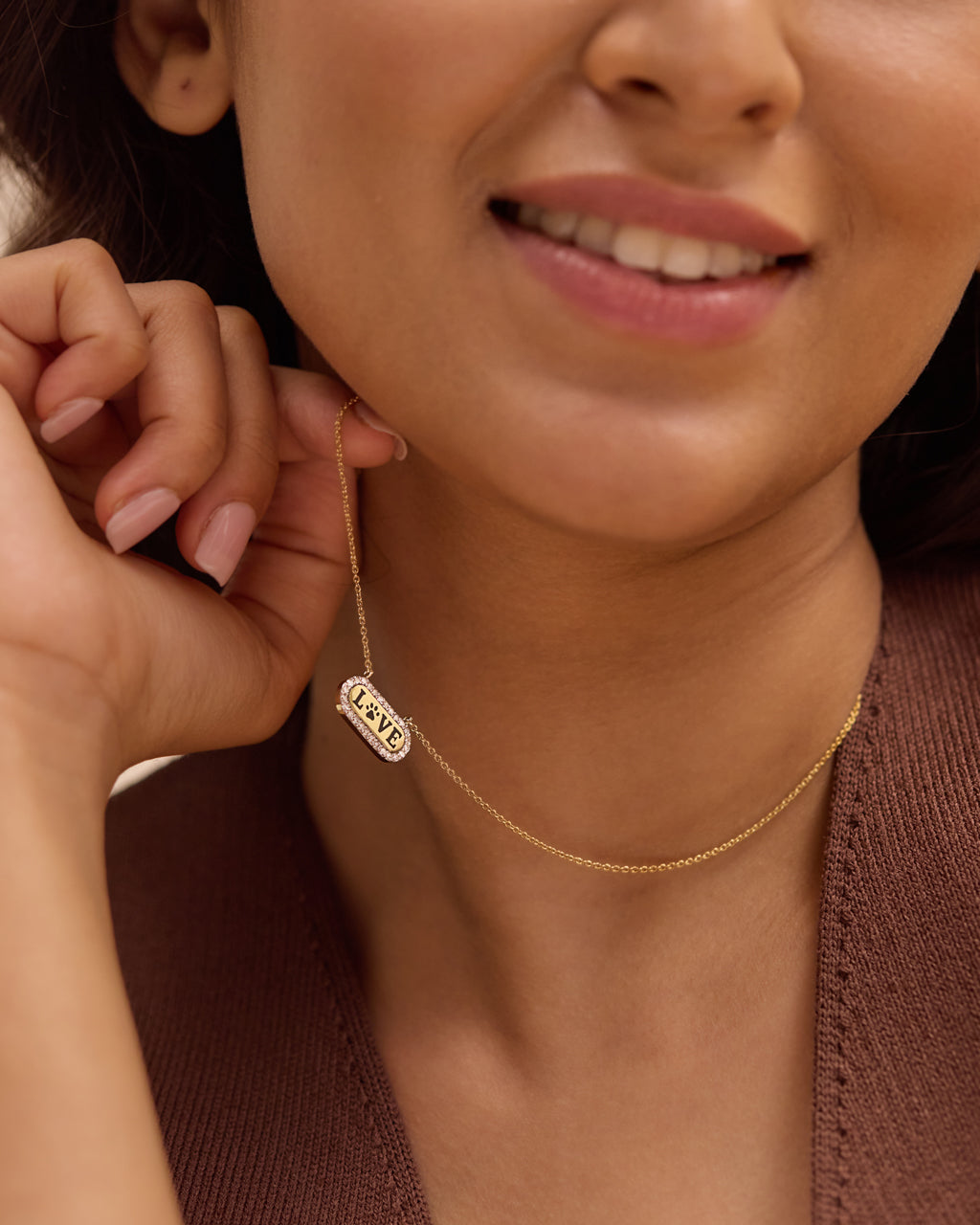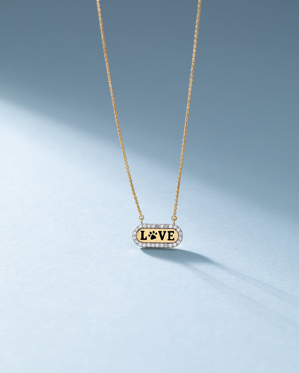 The Pet Love Bar Necklace turns sentiment into style, with a paw-print detail that adds heart to its sleek diamond-trimmed silhouette. It is a subtle nod to your four-legged companion, worn close to your heart. Perfect for everyday wear, it’s a piece that carries warmth, sparkle, and meaning.