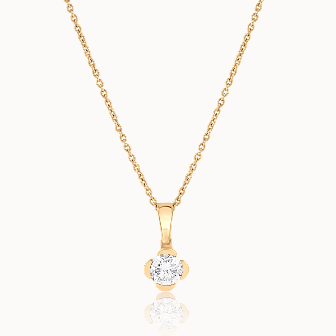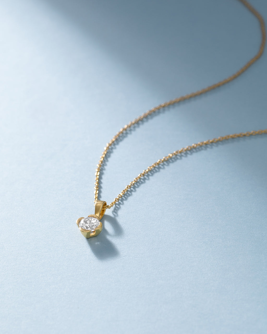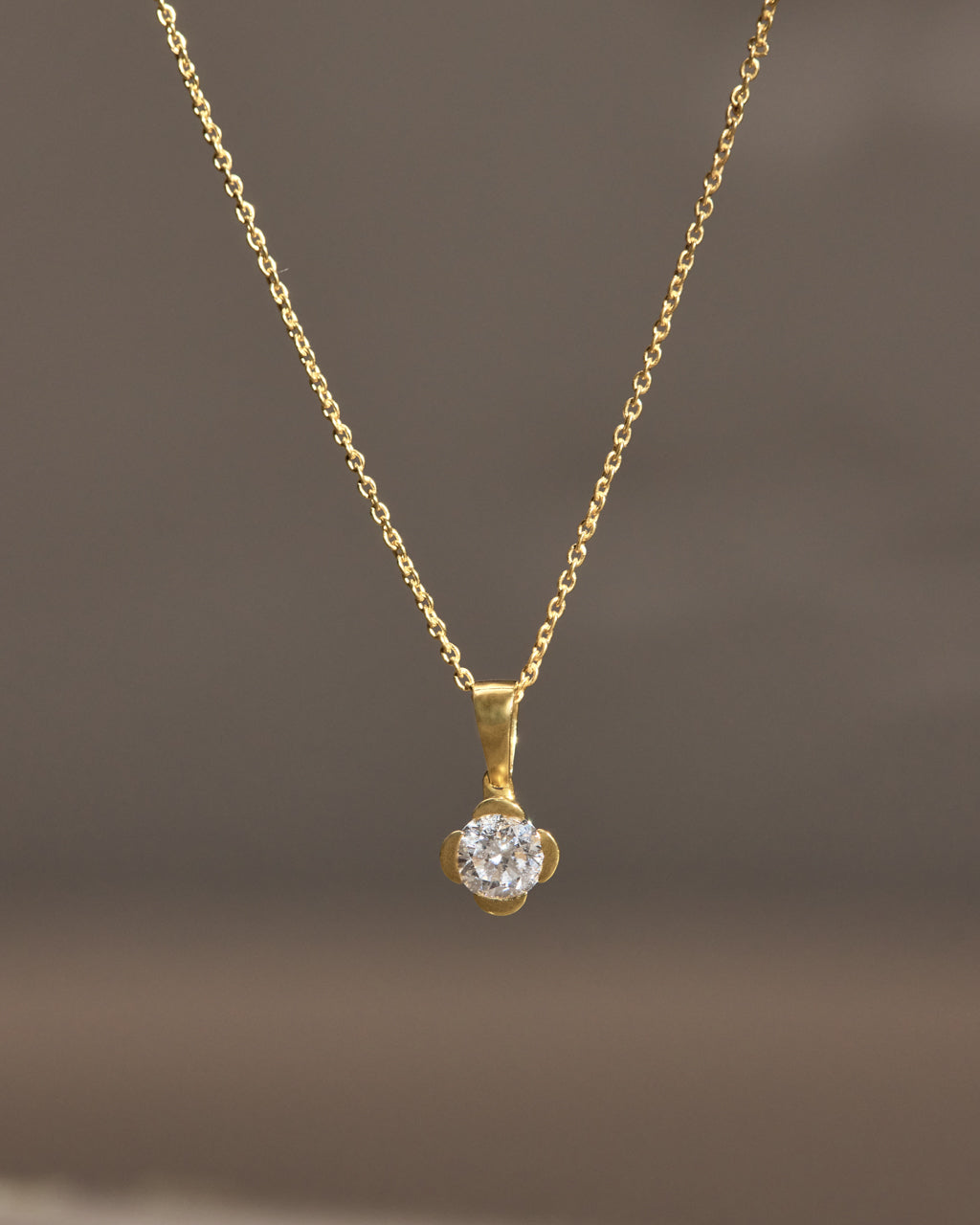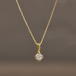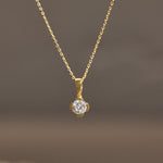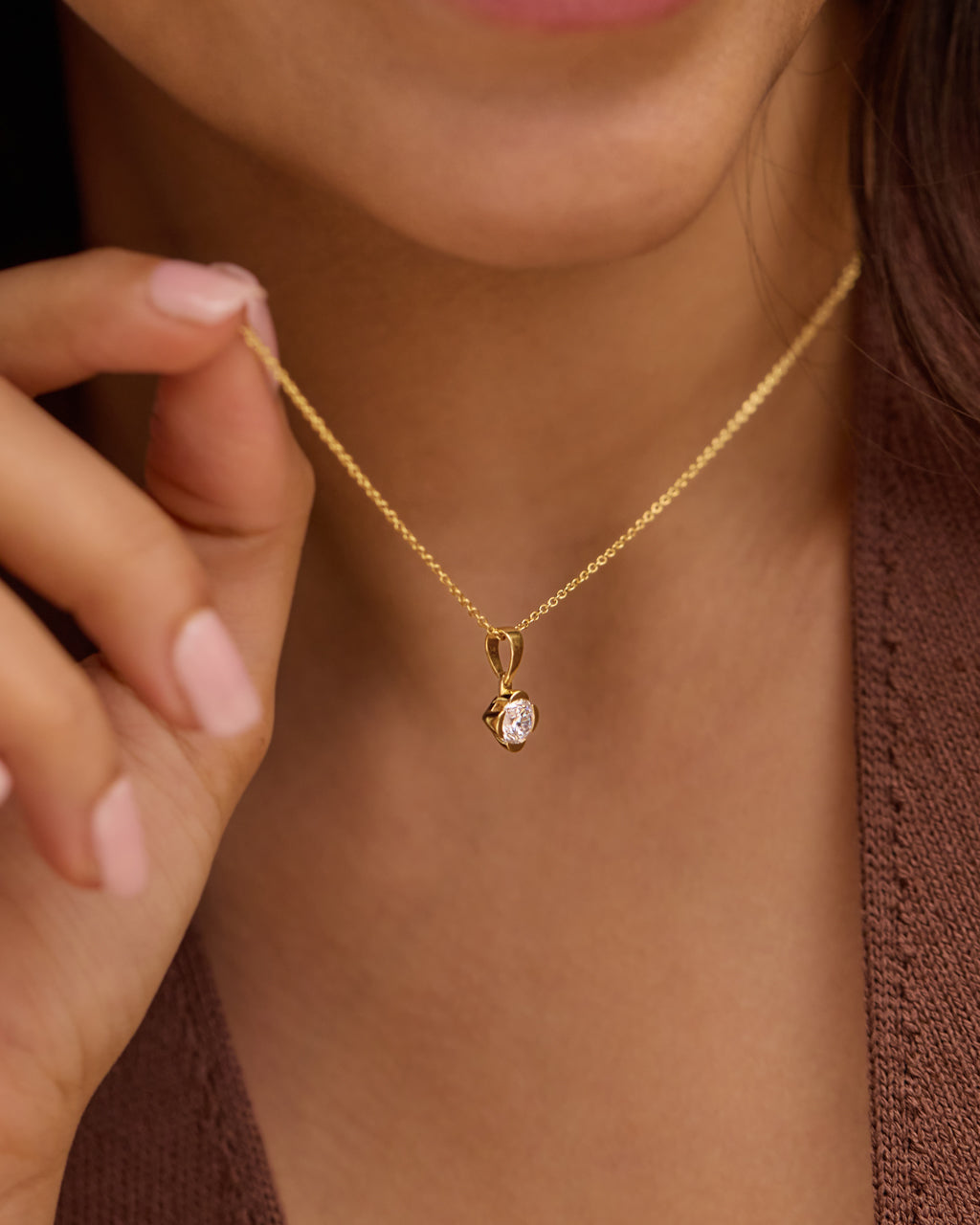 A solitaire diamond set in a delicate bezel brings timeless elegance with a subtle twist. Suspended from a fine gold vermeil chain, this necklace balances simplicity and charm effortlessly. Perfect for layering or letting it shine solo, it’s a modern essential with a classic heart.