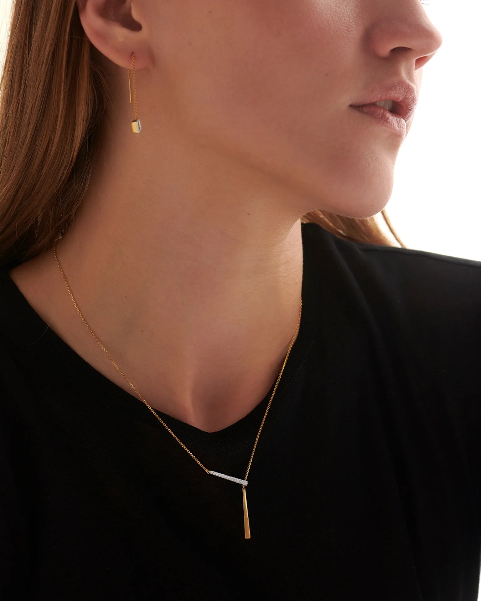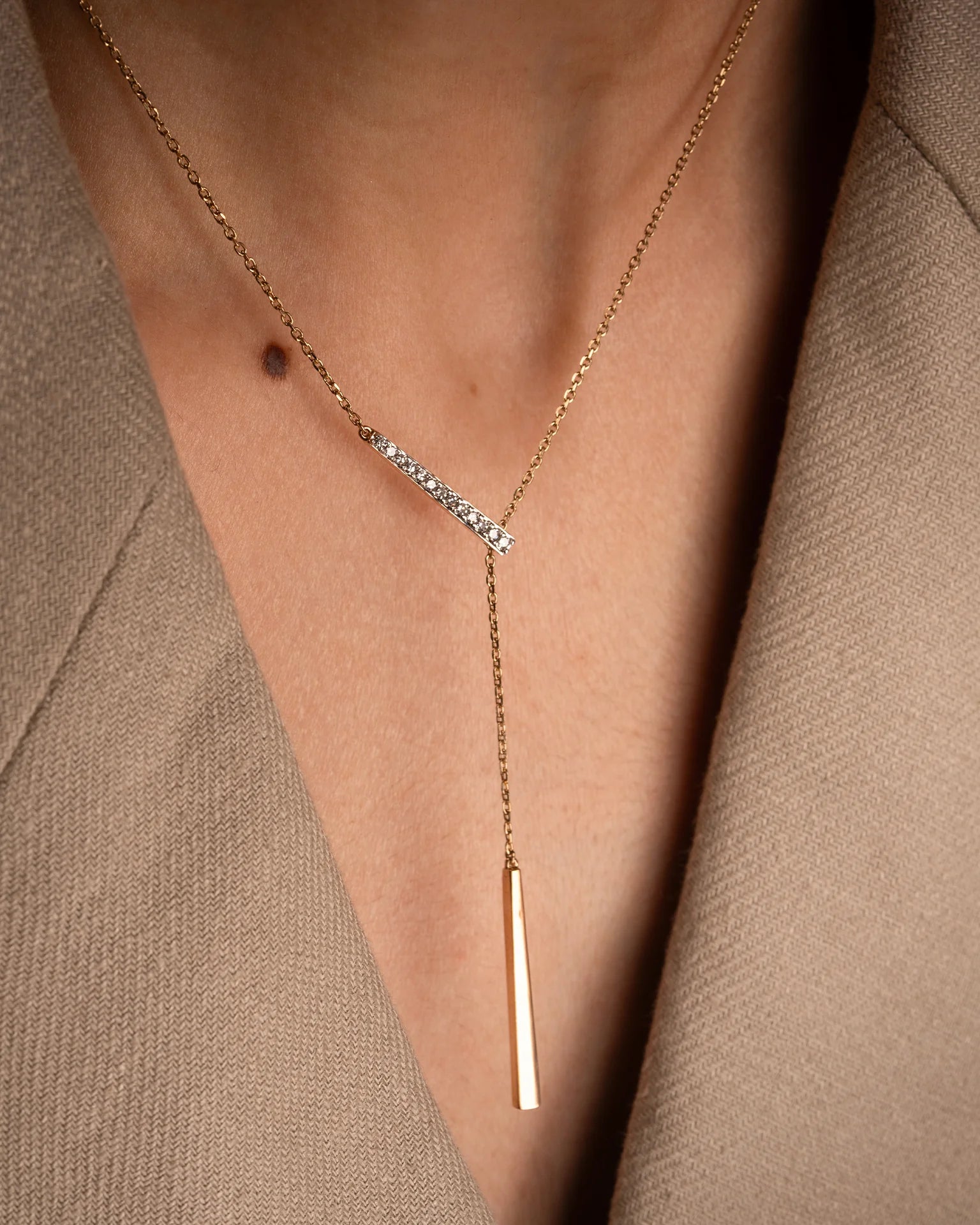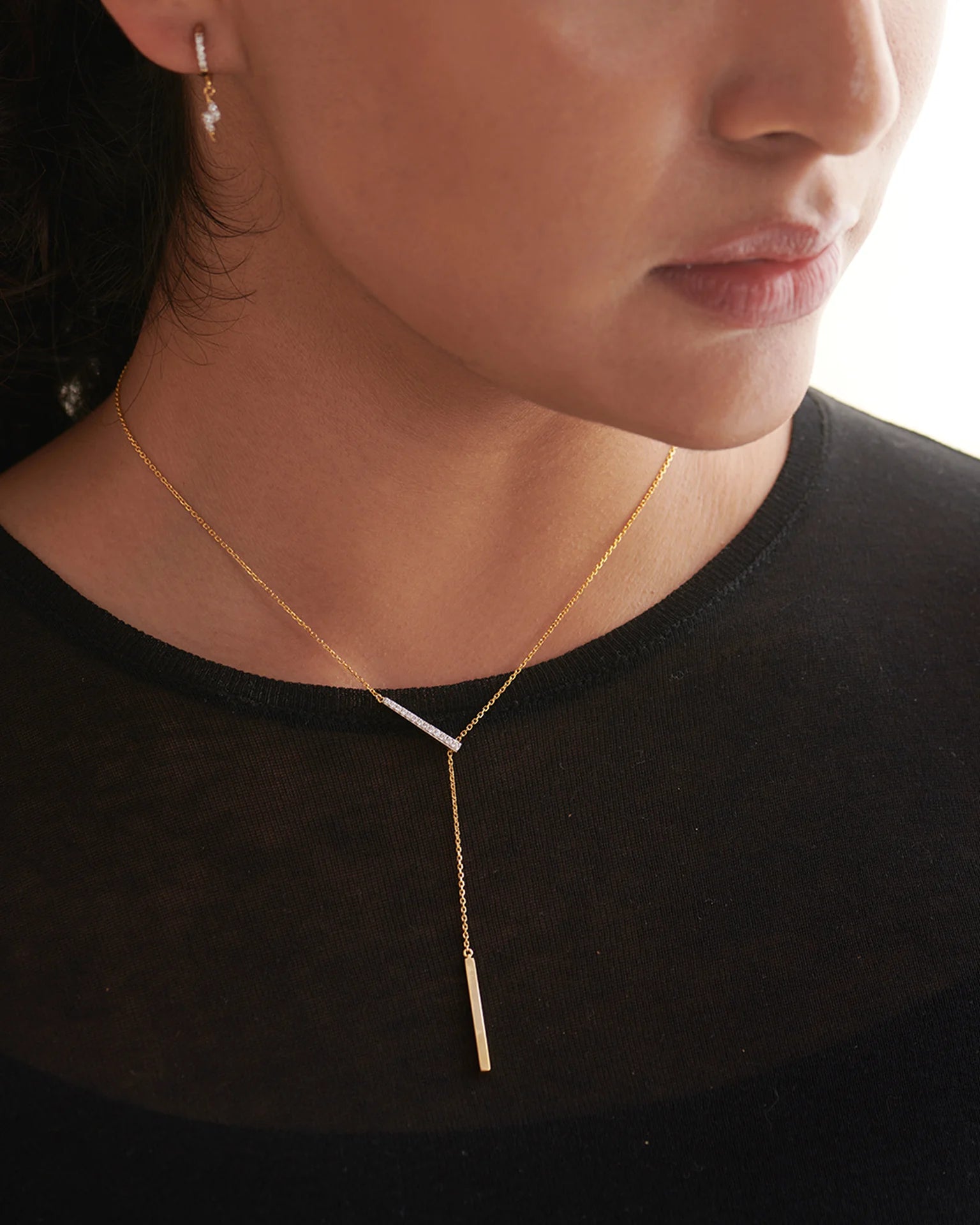 I really love this necklace. It's light and you can adjust the length of the chain and wear it in different ways. I really like how it's asymmetrical. It is very light and easy to wear.