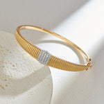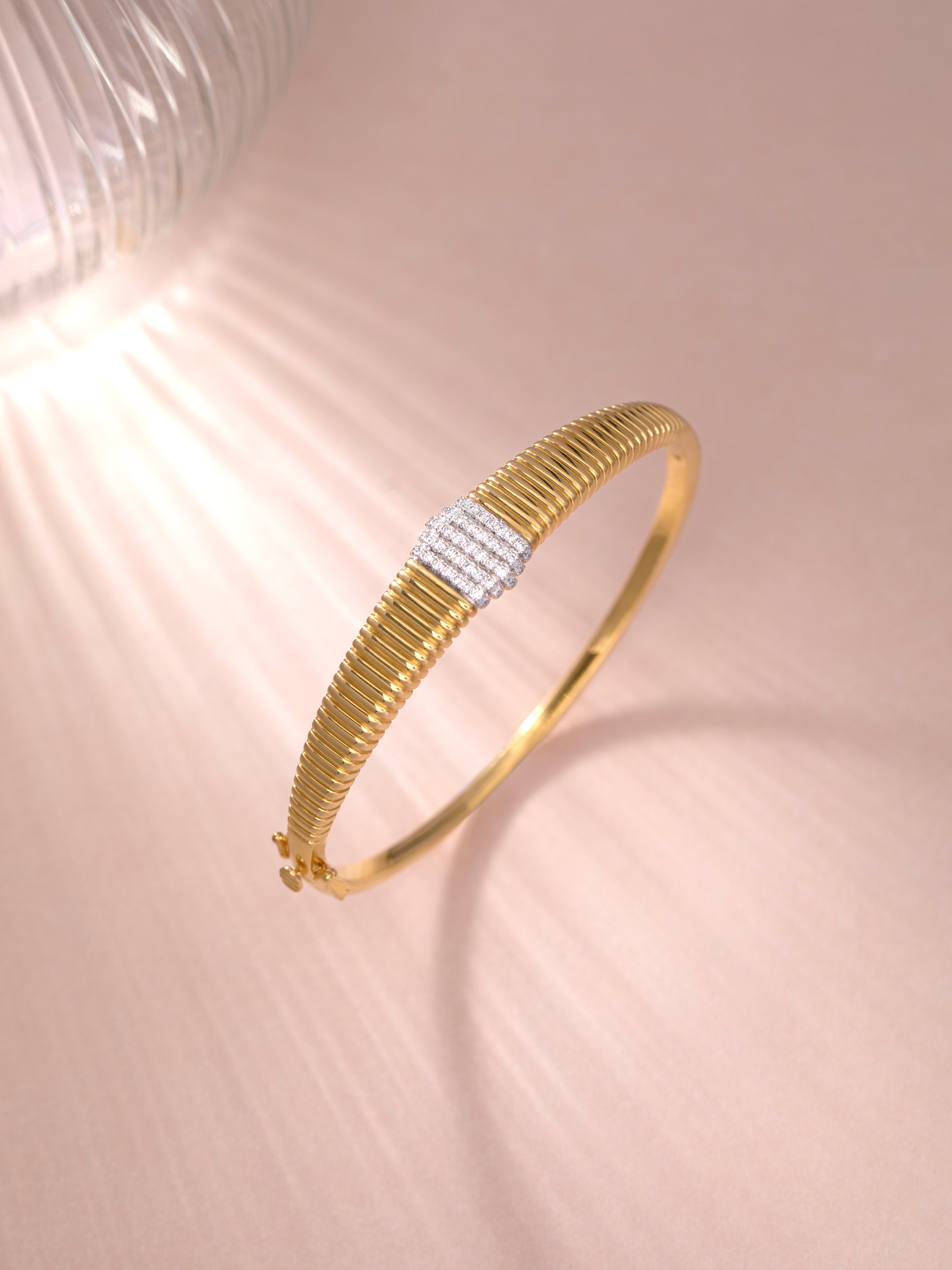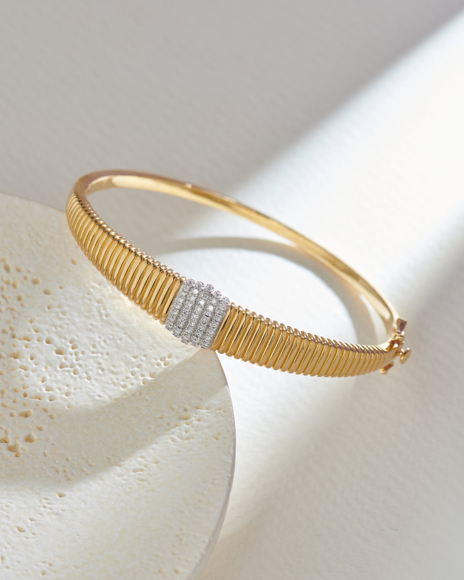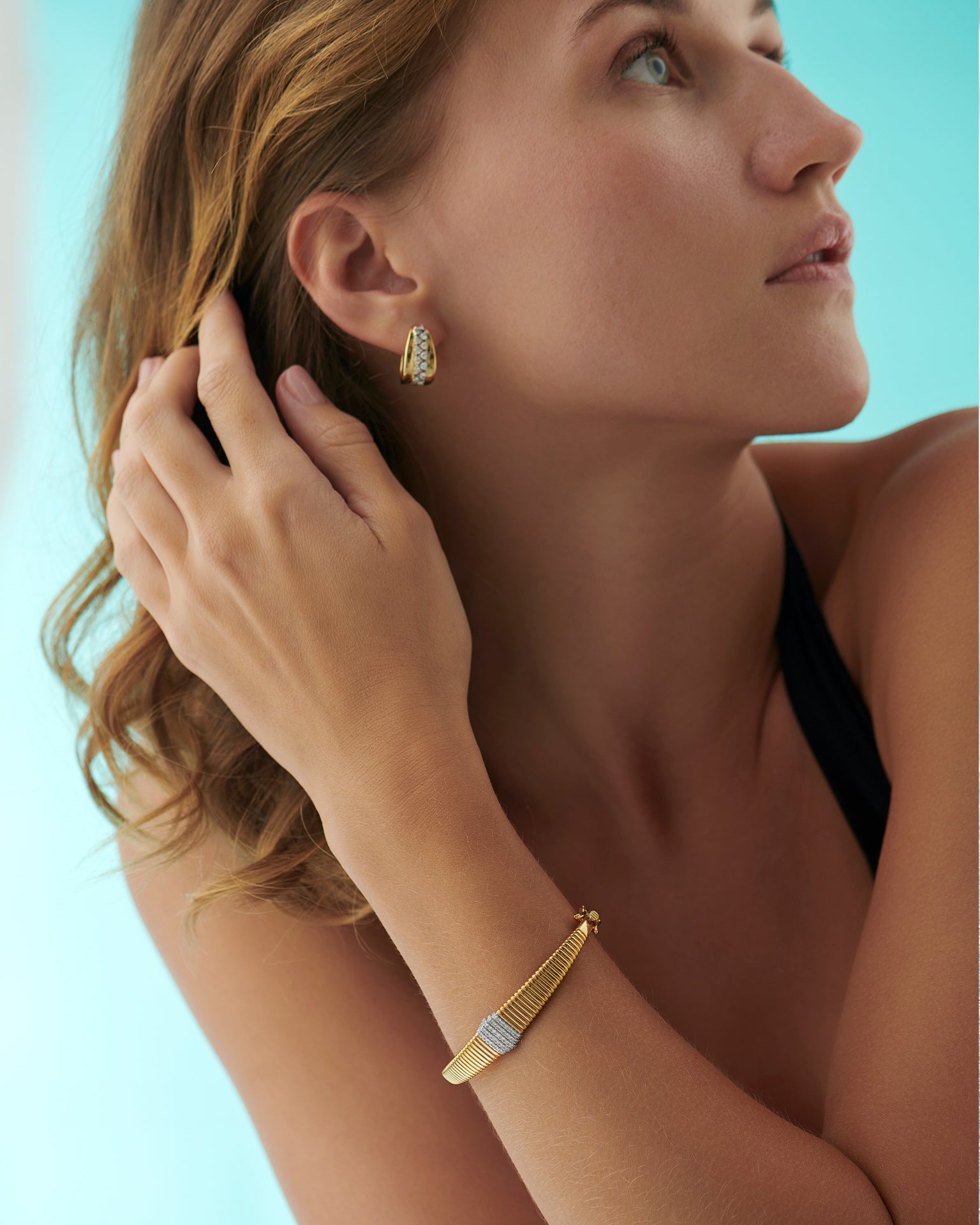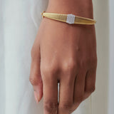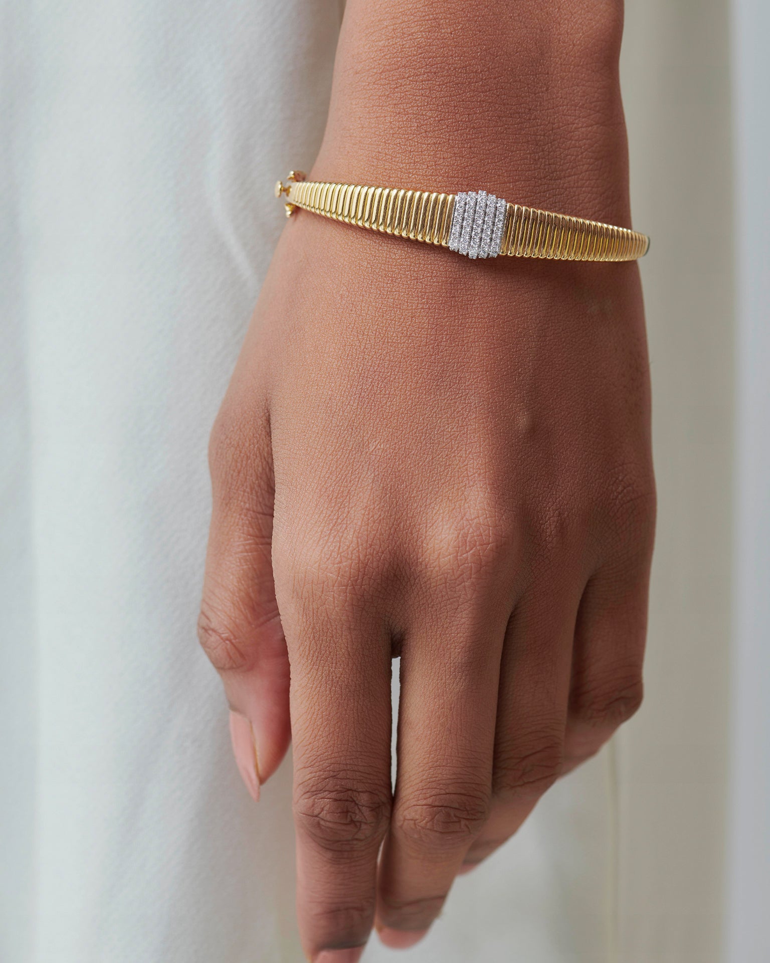 Crafted in 14kt gold vermeil with 0.33 ct of clustered diamonds and bold metal accents, this bracelet brings texture, shine, and statement energy to your wrist.