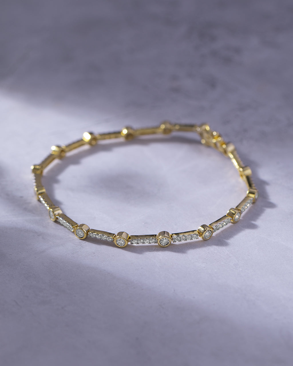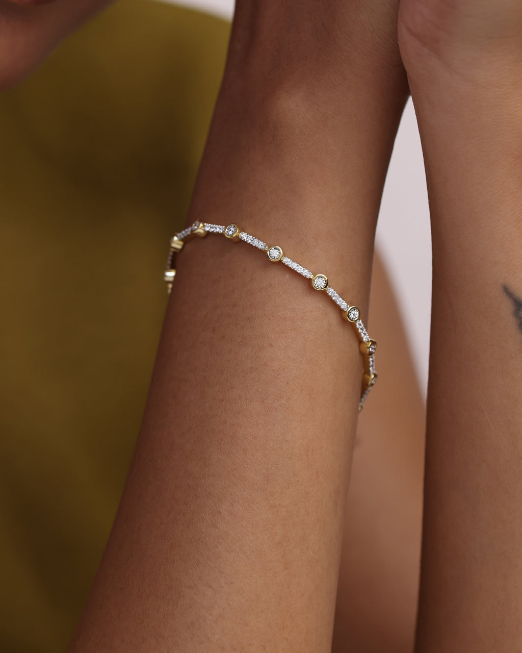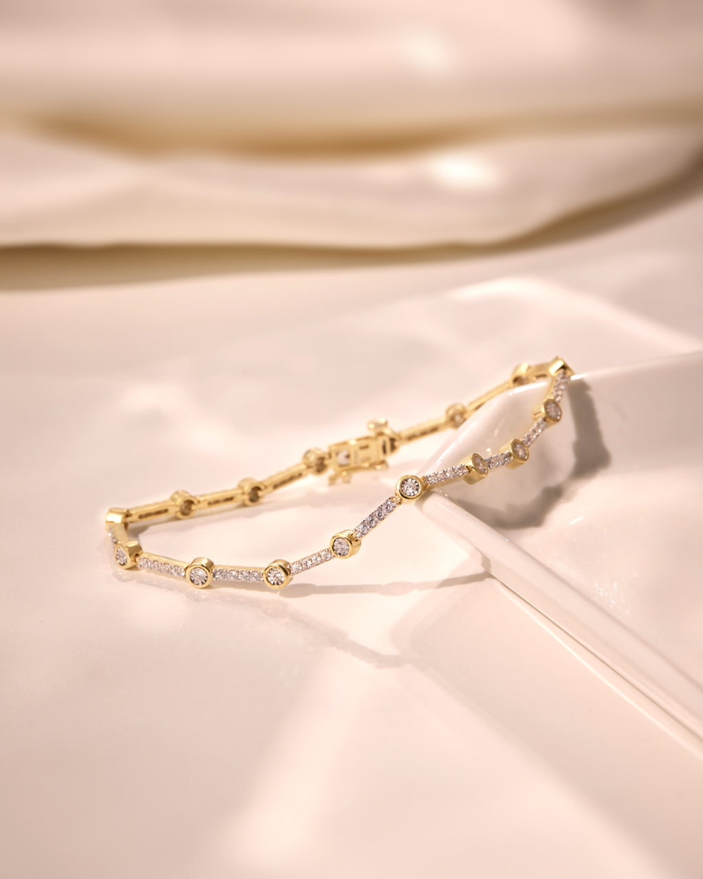 Built for everyday glow, the Dazzle Diamond Tennis Bracelet in 14kt Gold Vermeil lines modern links with shimmering diamonds for a refined, wearable shine.