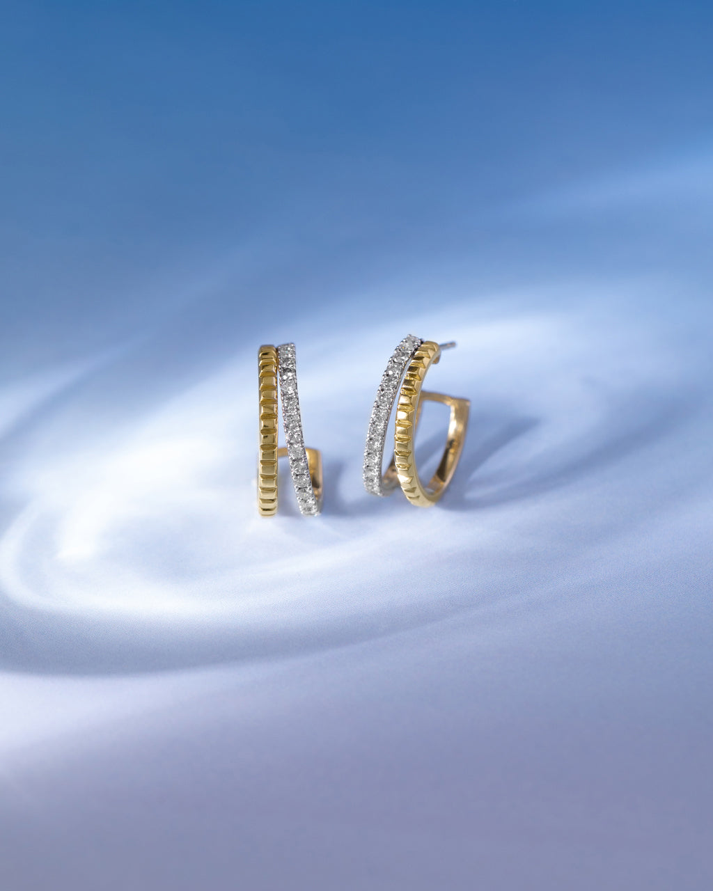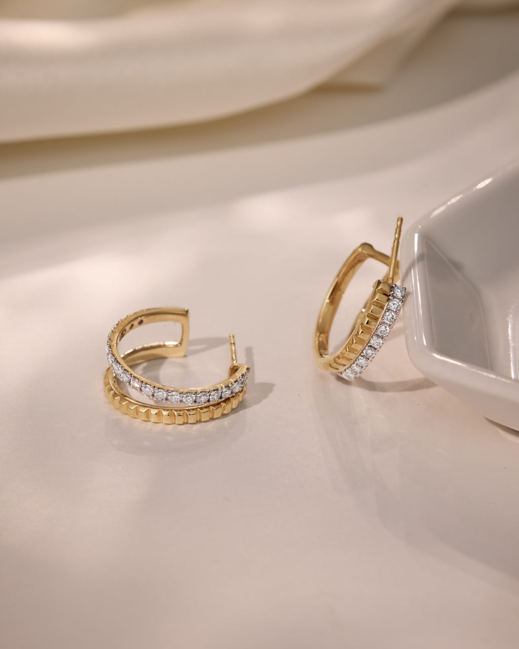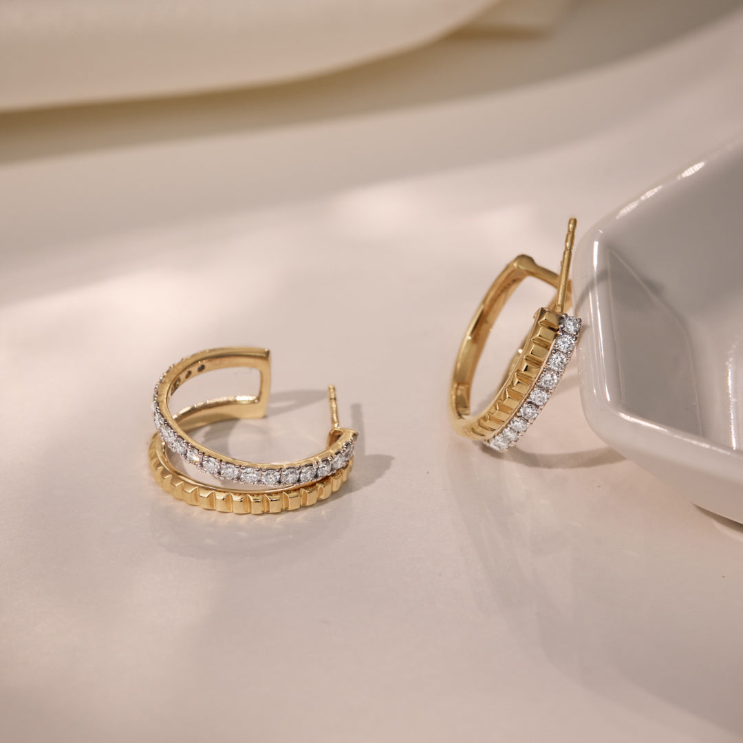 With a dimensional silhouette and a full row of shimmering diamonds, these semi-hoop earrings blend form and shine for a look that’s equally powerful and polished.