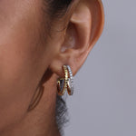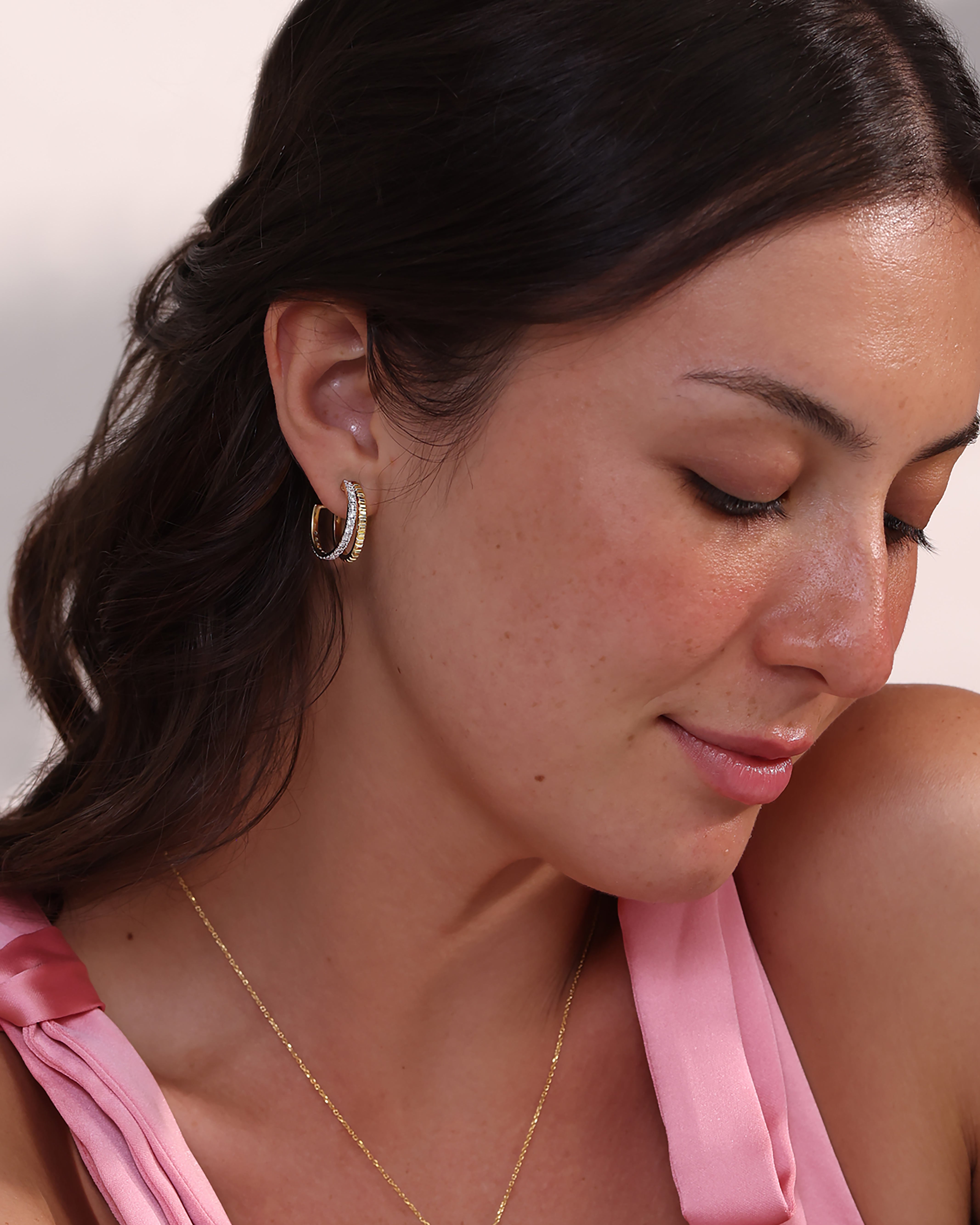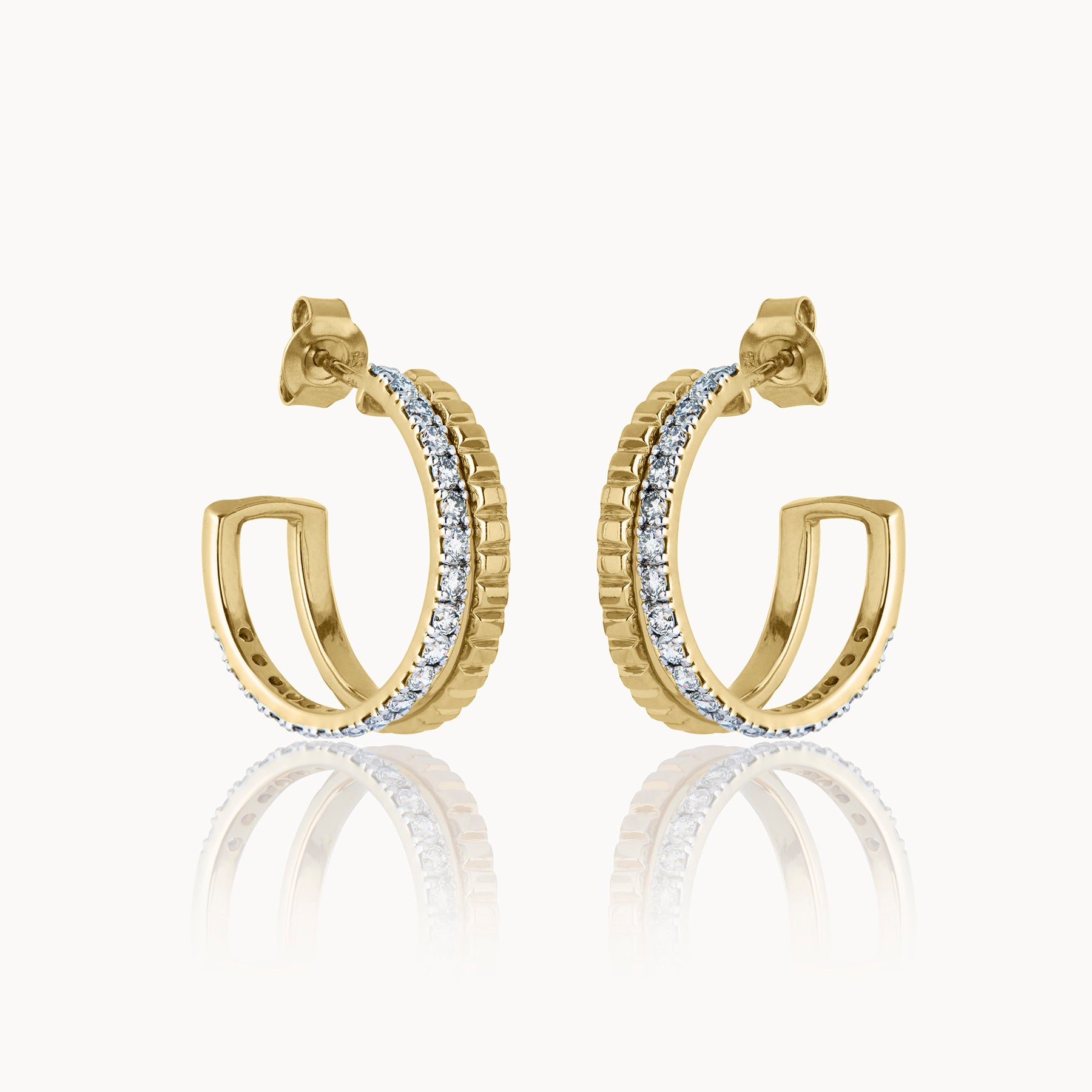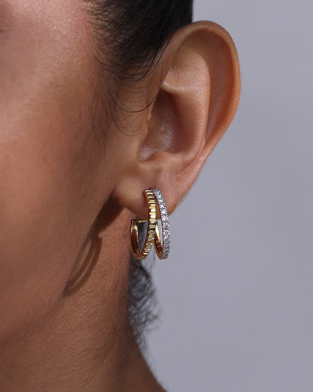 With a dimensional silhouette and a full row of shimmering diamonds, these semi-hoop earrings blend form and shine for a look that’s equally powerful and polished.