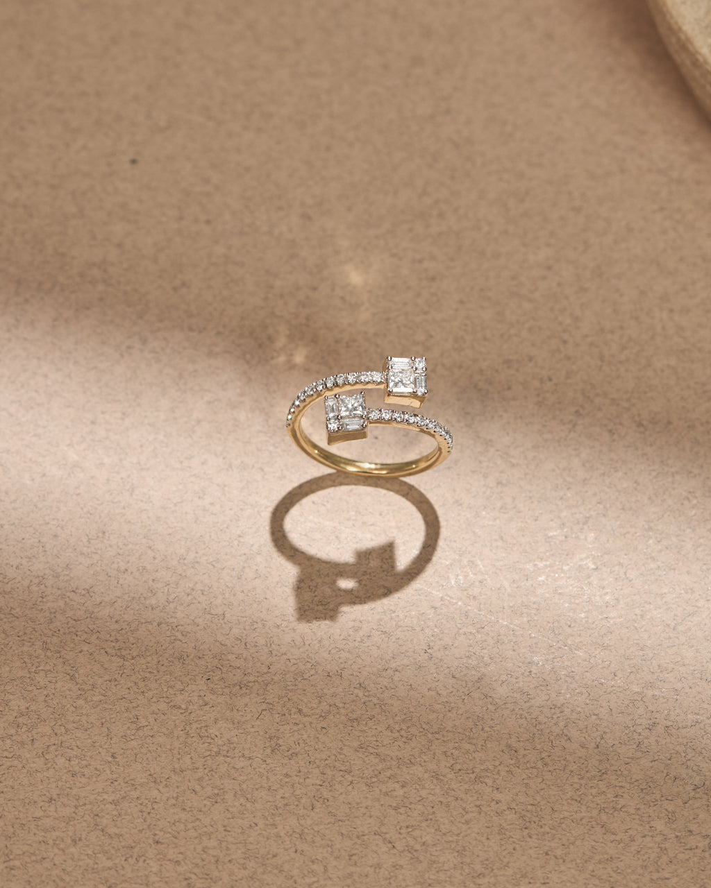 A modern wrap ring in Gold Vermeil, accented with diamonds for just enough shimmer. Subtle, sculptural, and endlessly wearable.