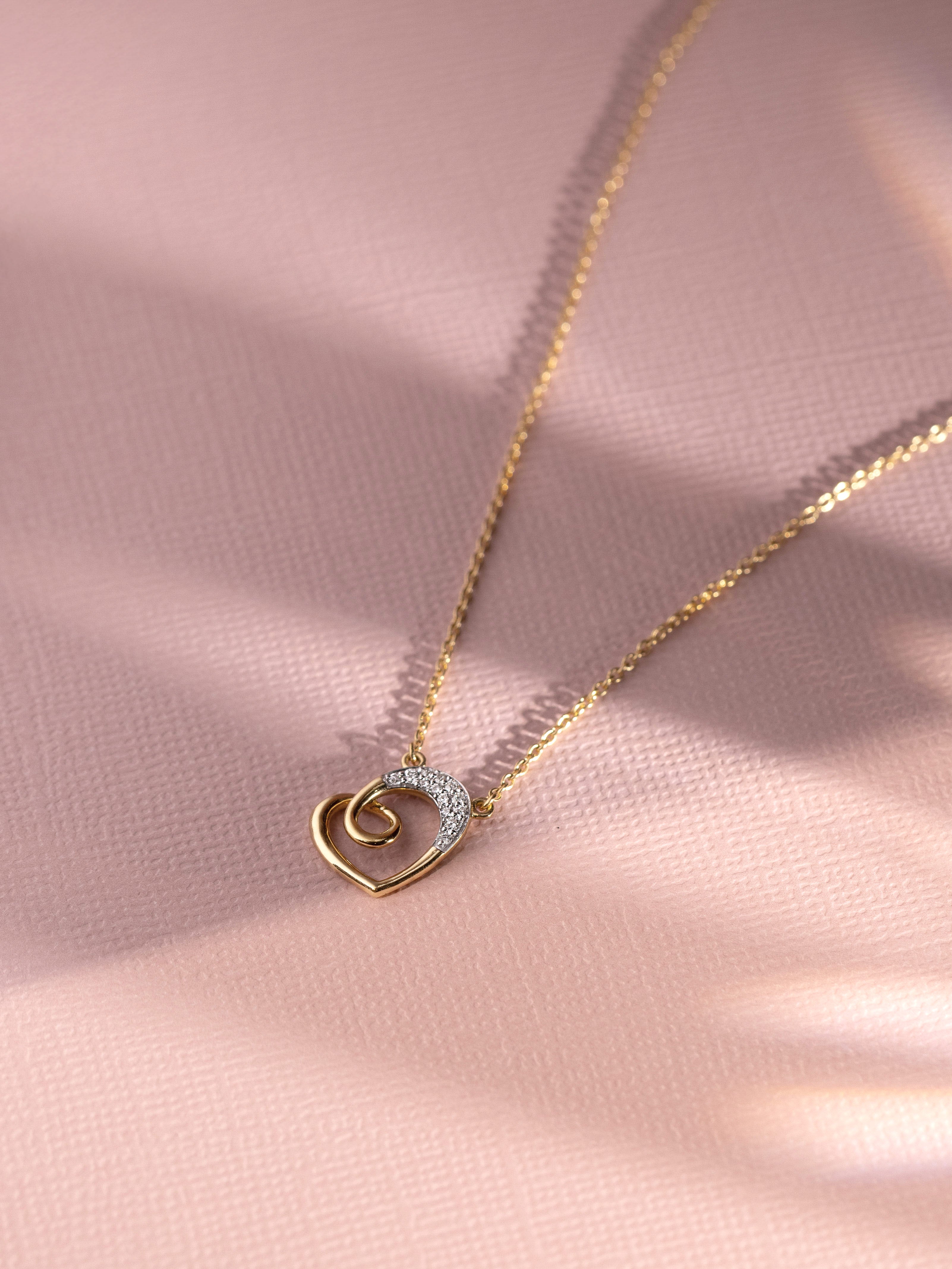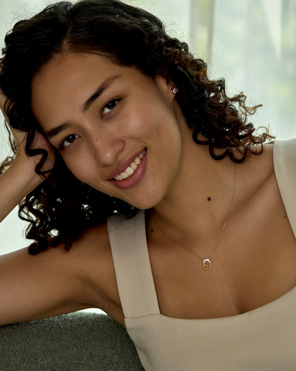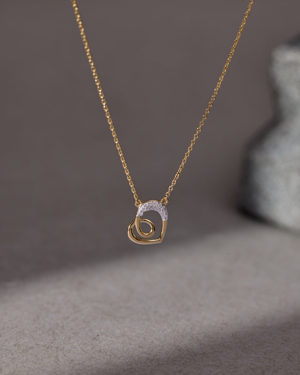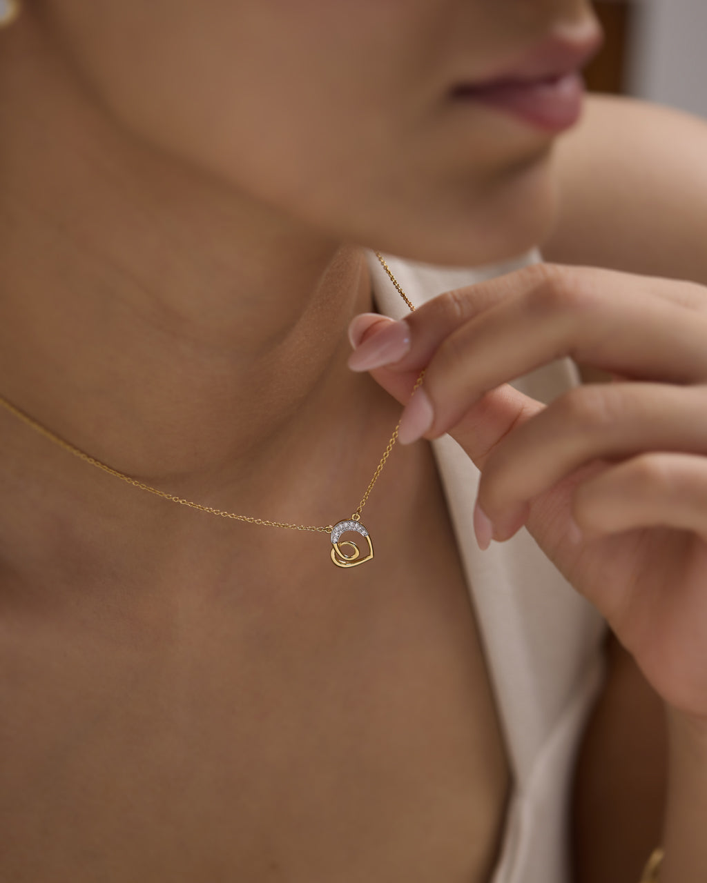 A delicate ode to love—the Amour Diamond Necklace in polished 14kt Gold Vermeil features a graceful heart-shaped pendant accented with shimmering diamonds, made to hold meaning close and shine a little brighter.