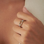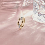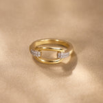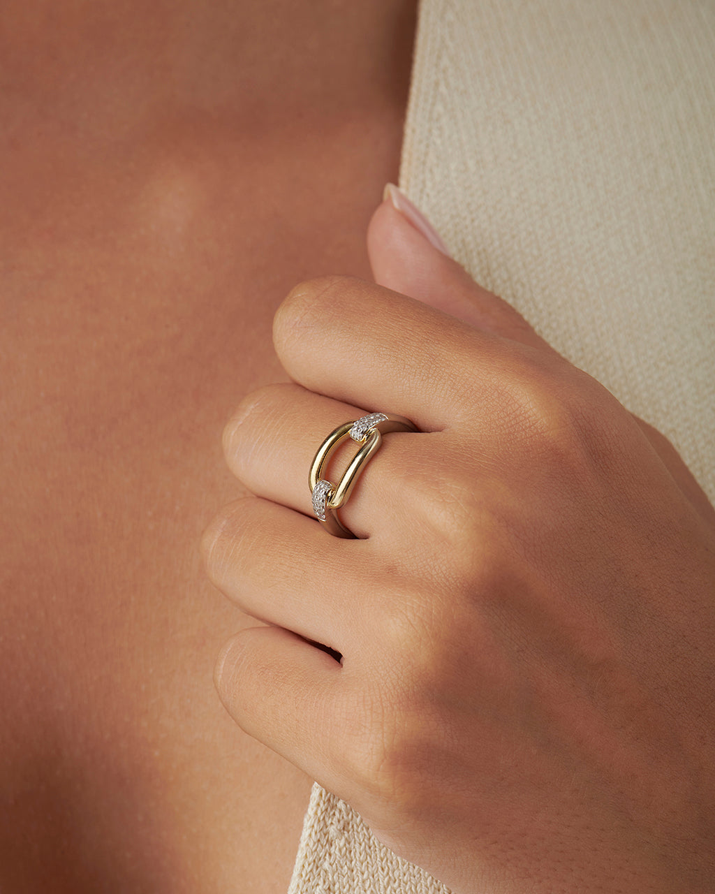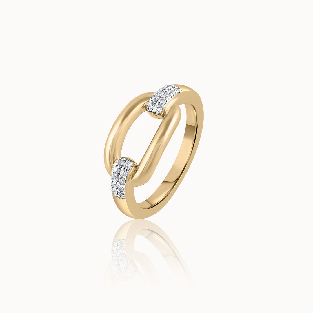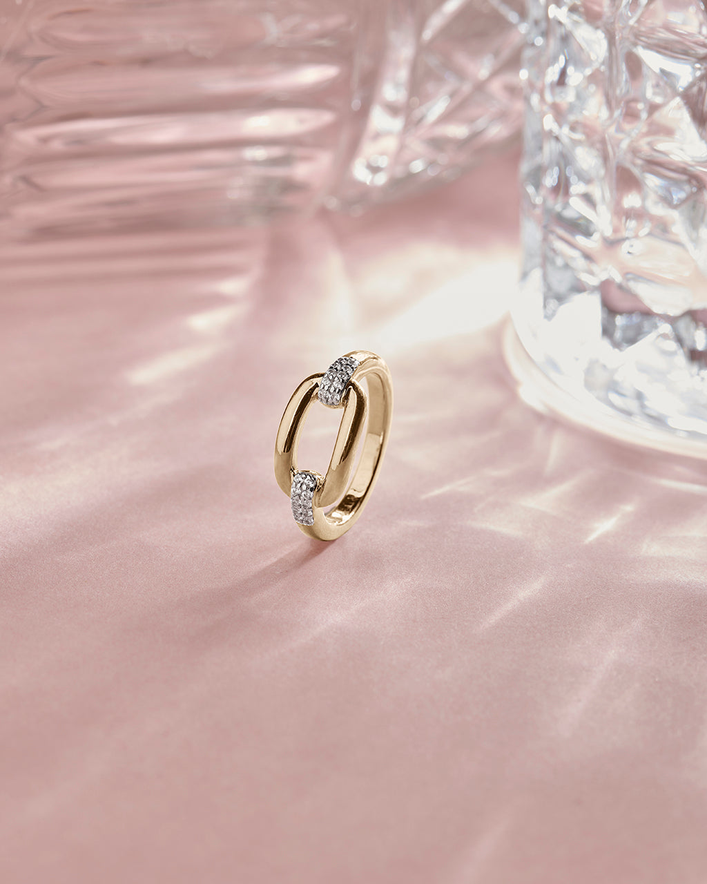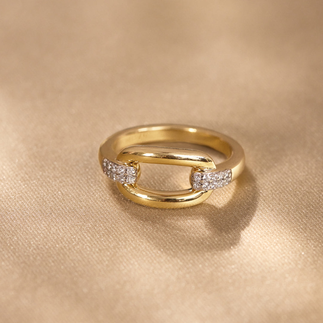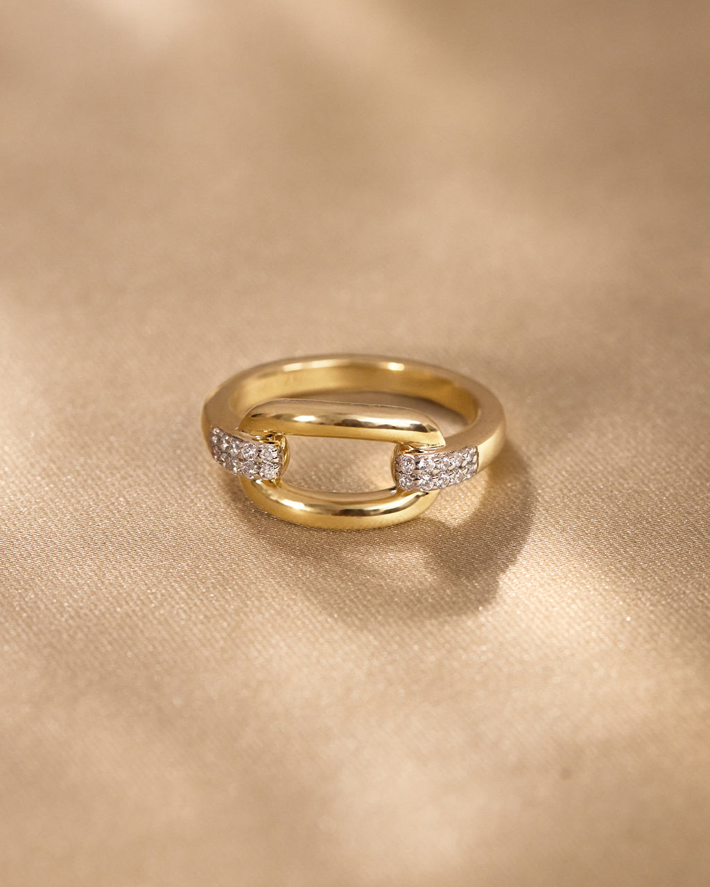 One bold link, framed in diamonds. This 14k gold vermeil ring features a polished gold link flanked by pavé diamond connectors, creating a sleek design with just the right amount of sparkle.
