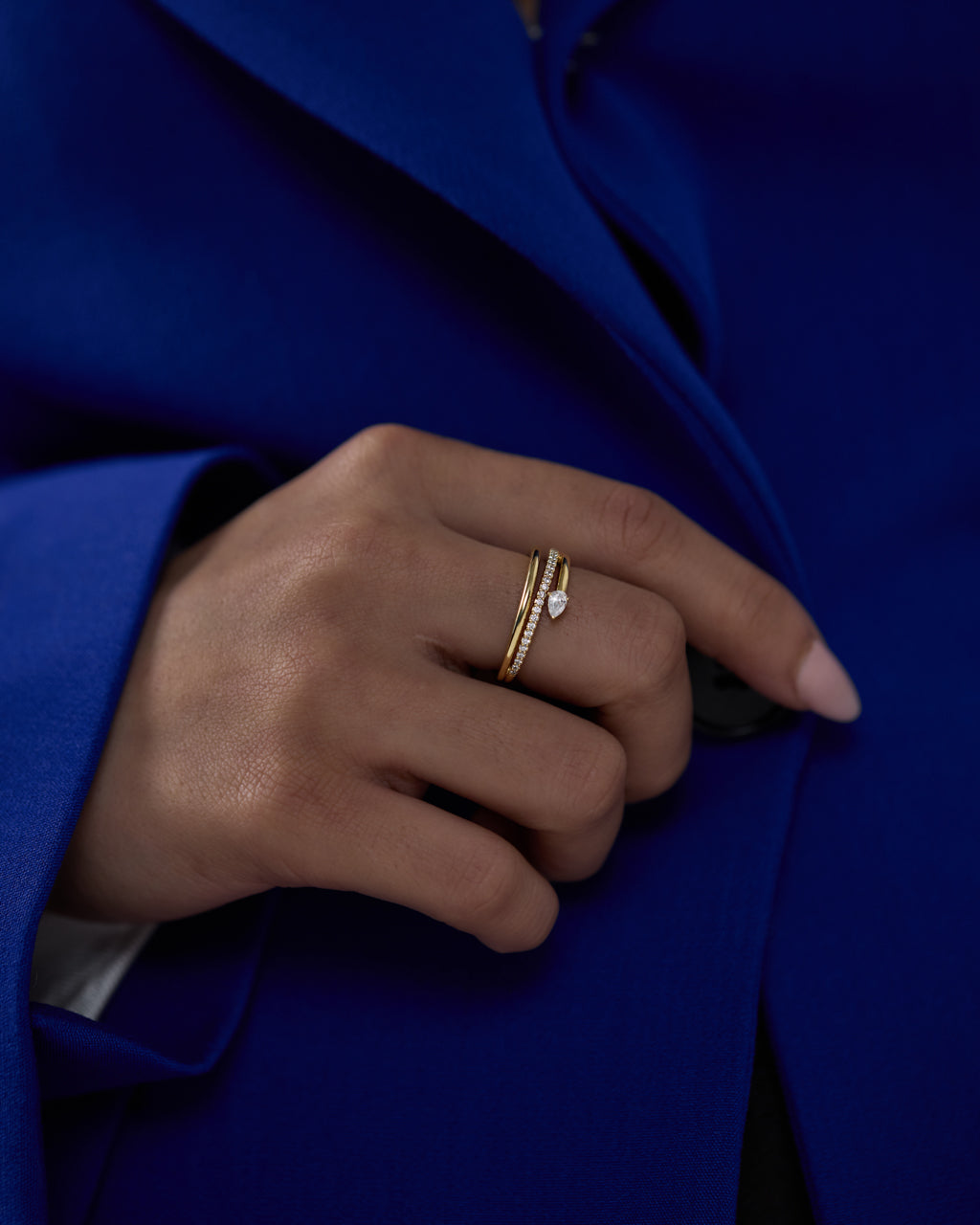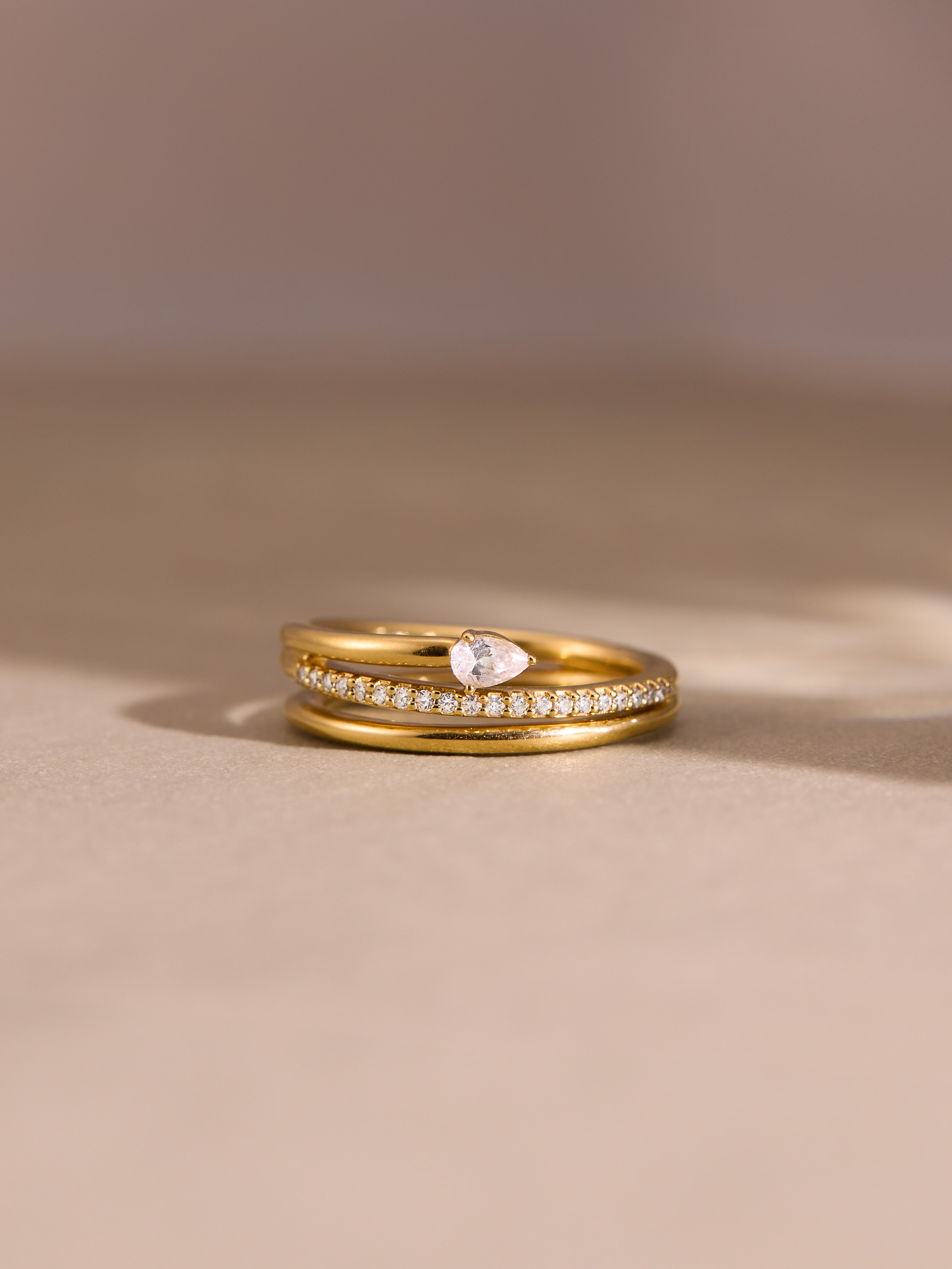 Timeless sparkle, endless possibilities—the Classic Stack Diamond Ring in polished 14kt Gold Vermeil features a sleek band lined with shimmering diamonds, perfect for stacking up or shining on its own.