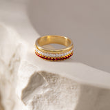 This 14kt gold vermeil band features 0.25 ct of round created rubies—rich red sparkle in a sleek, stackable silhouette made to mix, layer, and stand alone.