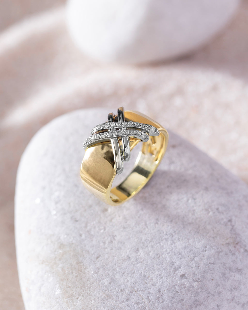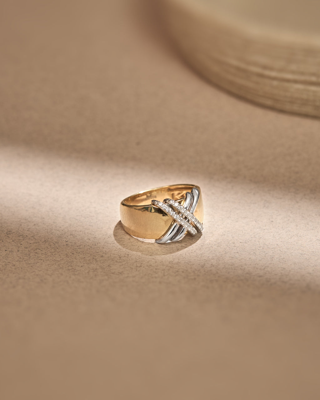 The Criss Cross Bold Band in polished 14kt Gold Vermeil weaves together strong lines and a striking silhouette—made to turn heads without trying too hard.