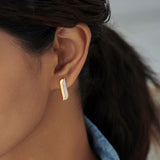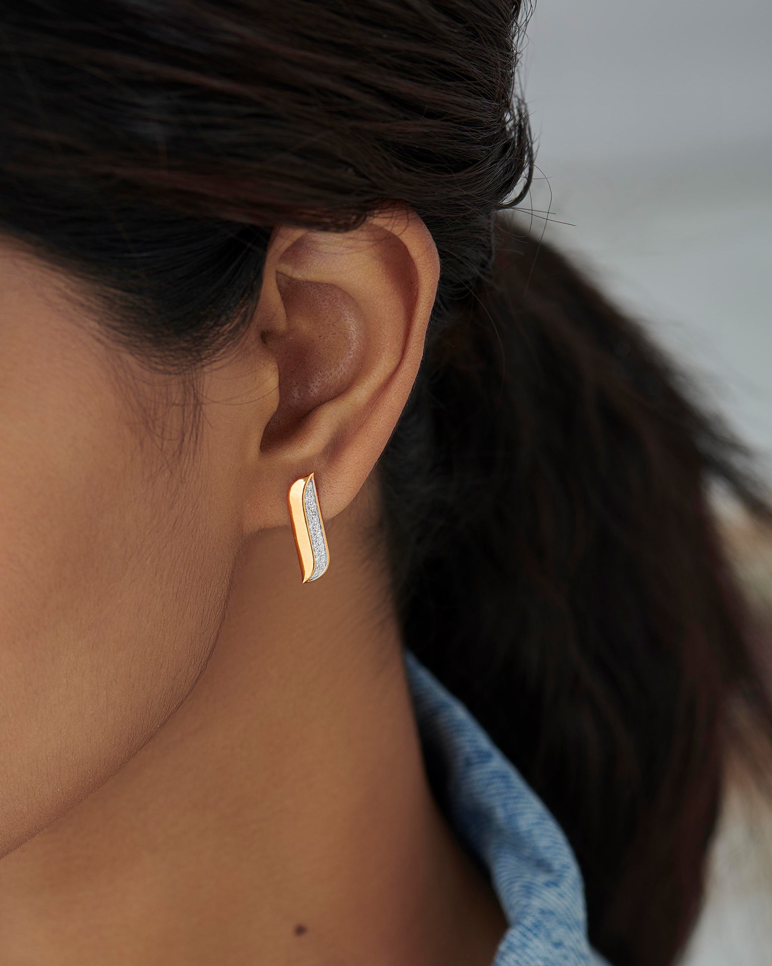 These 14kt gold vermeil hoops combine bold bar silhouettes with 0.34 ct of clustered diamonds and sleek metal accents—graphic, modern, and made to shine.