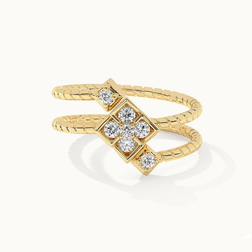 This 14kt gold vermeil ring spirals with 0.28 ct of diamonds—sleek, gleaming, and made to wrap your finger in brilliance.