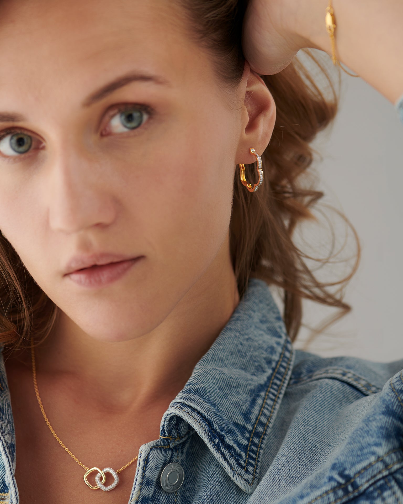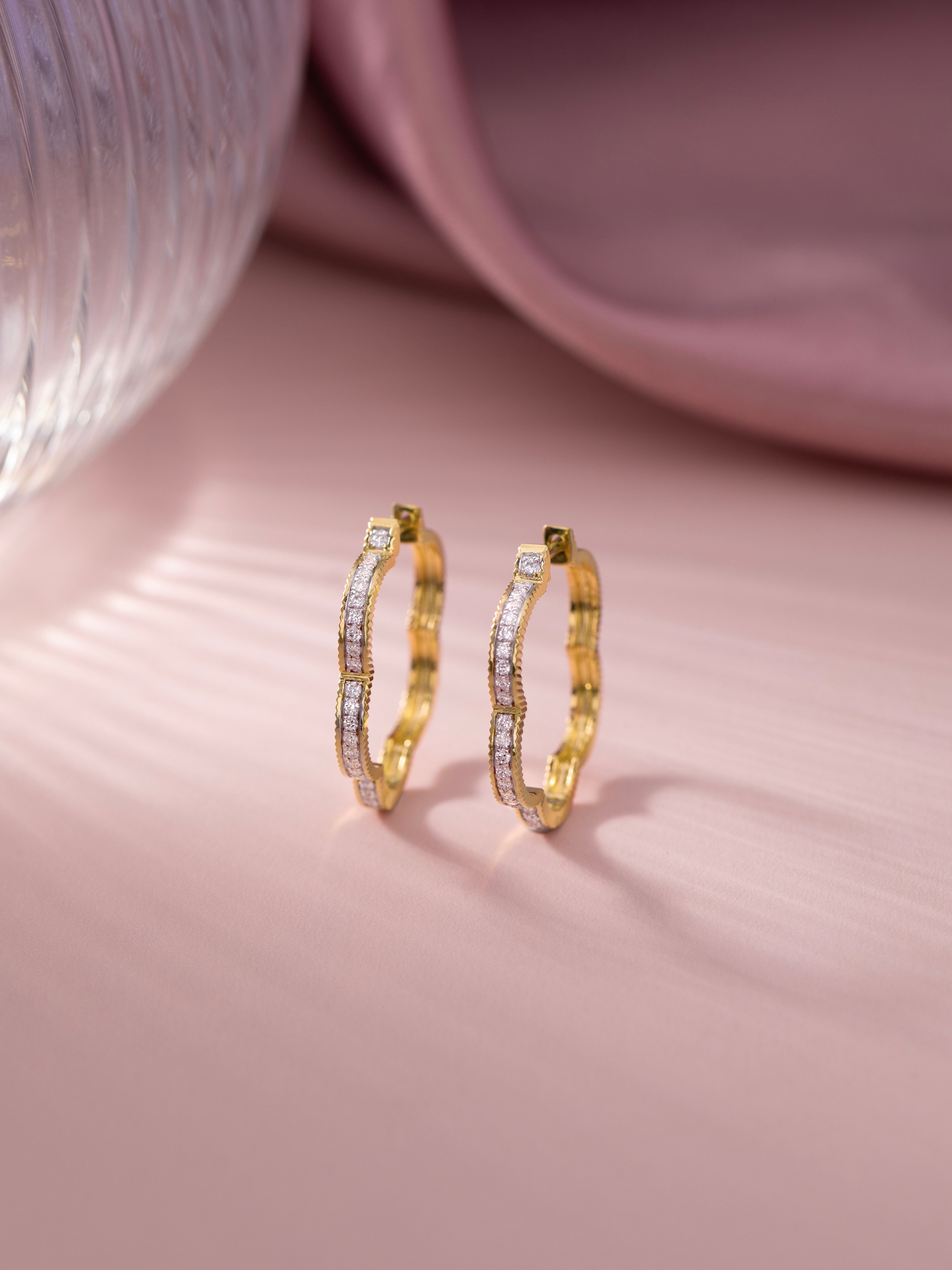 These 14kt gold vermeil hoops feature a unique floral-inspired shape with 0.34 ct of diamonds—fresh, minimal, and made to move with you.