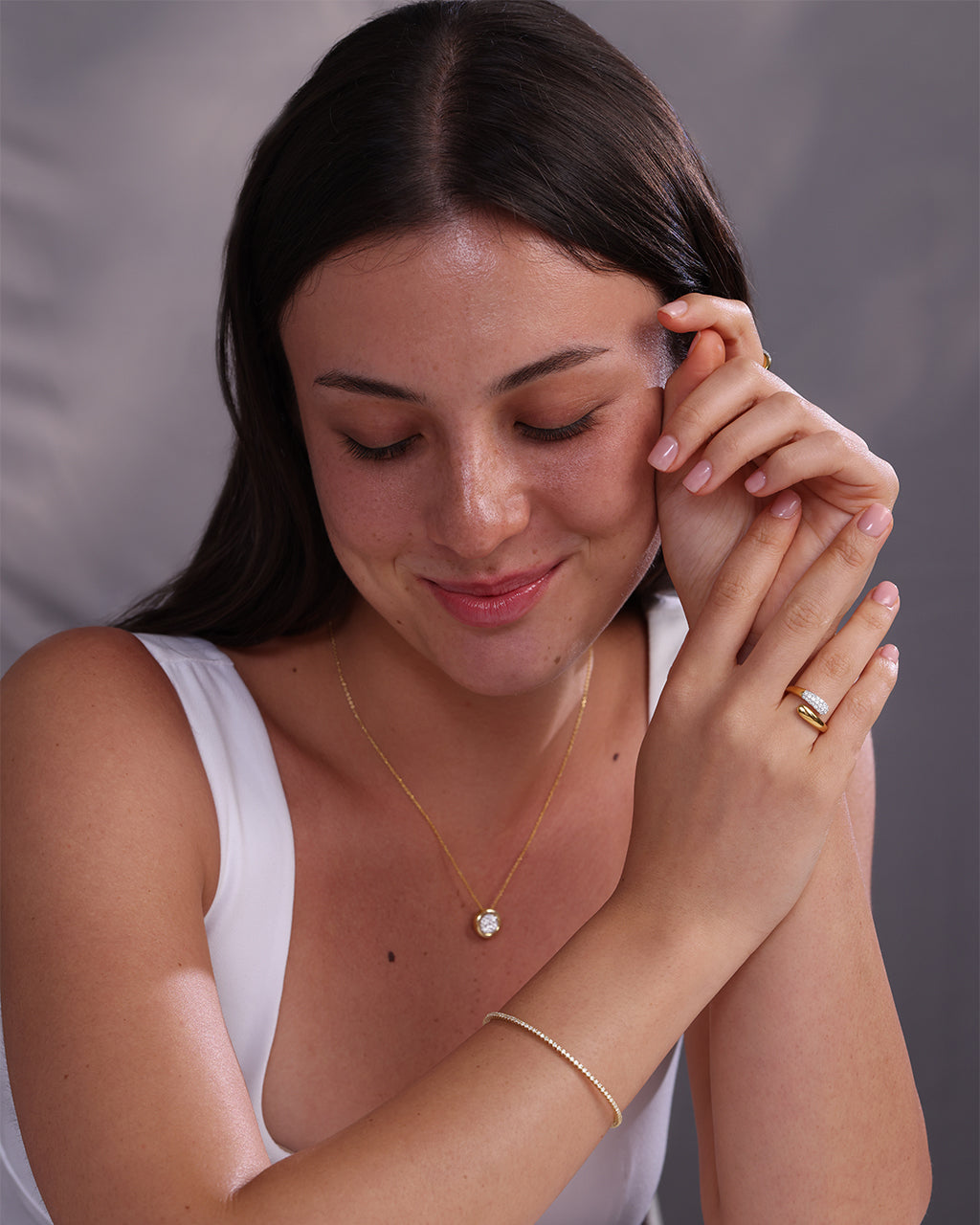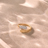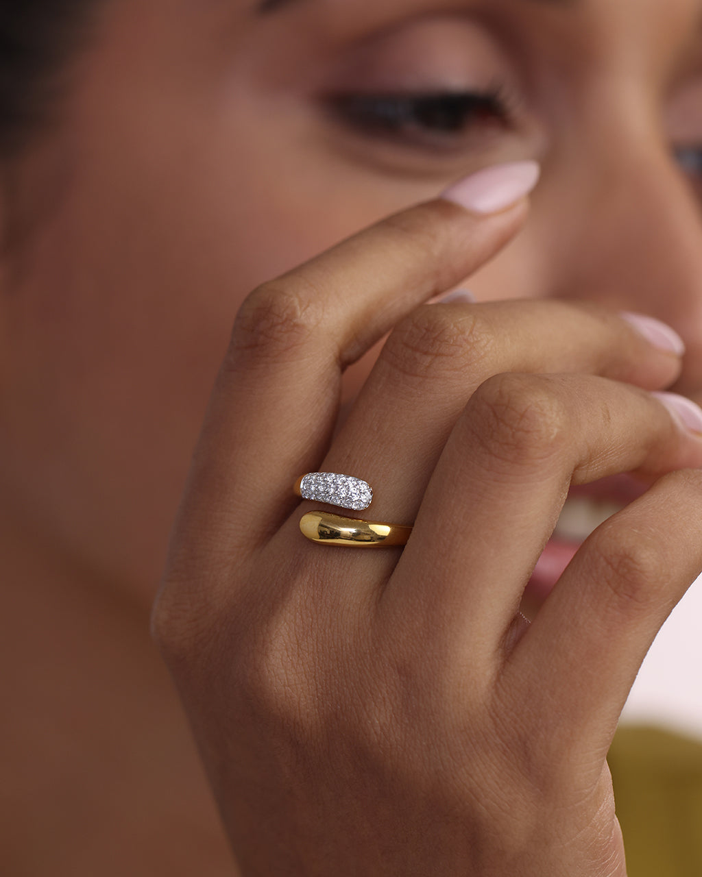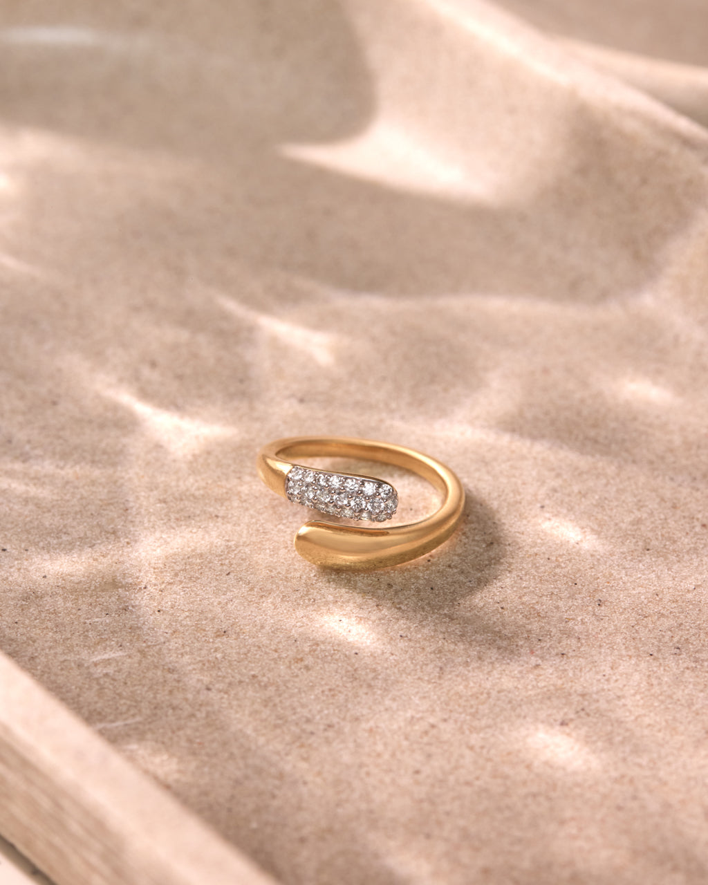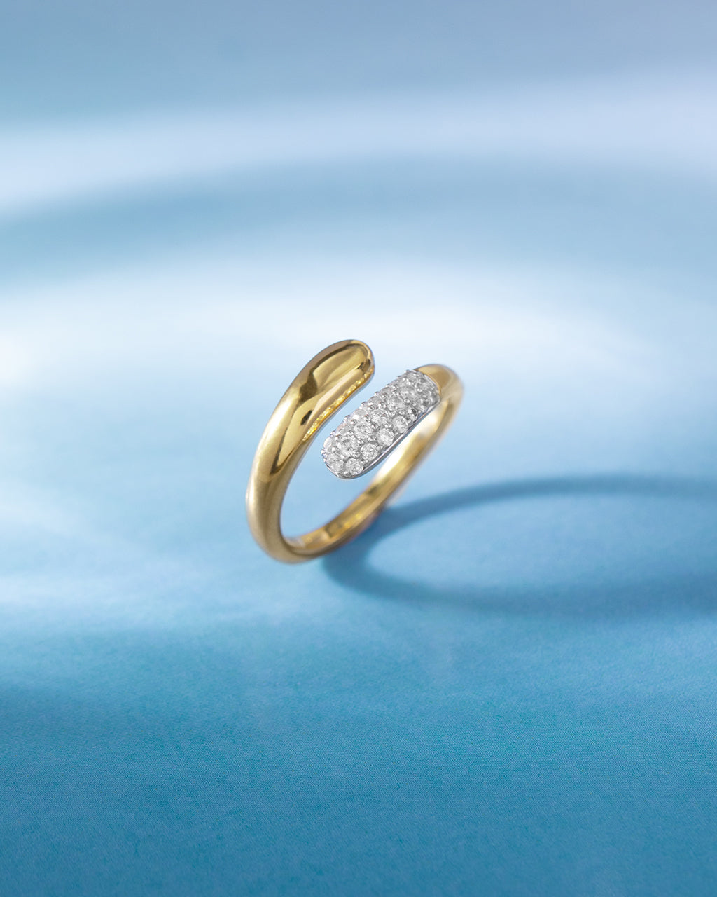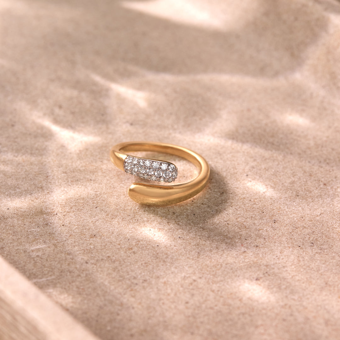 With a smooth wrap and pavé diamond detail, the Radiant Flow Diamond Ring brings graceful movement and quiet brilliance to your everyday lineup.