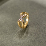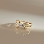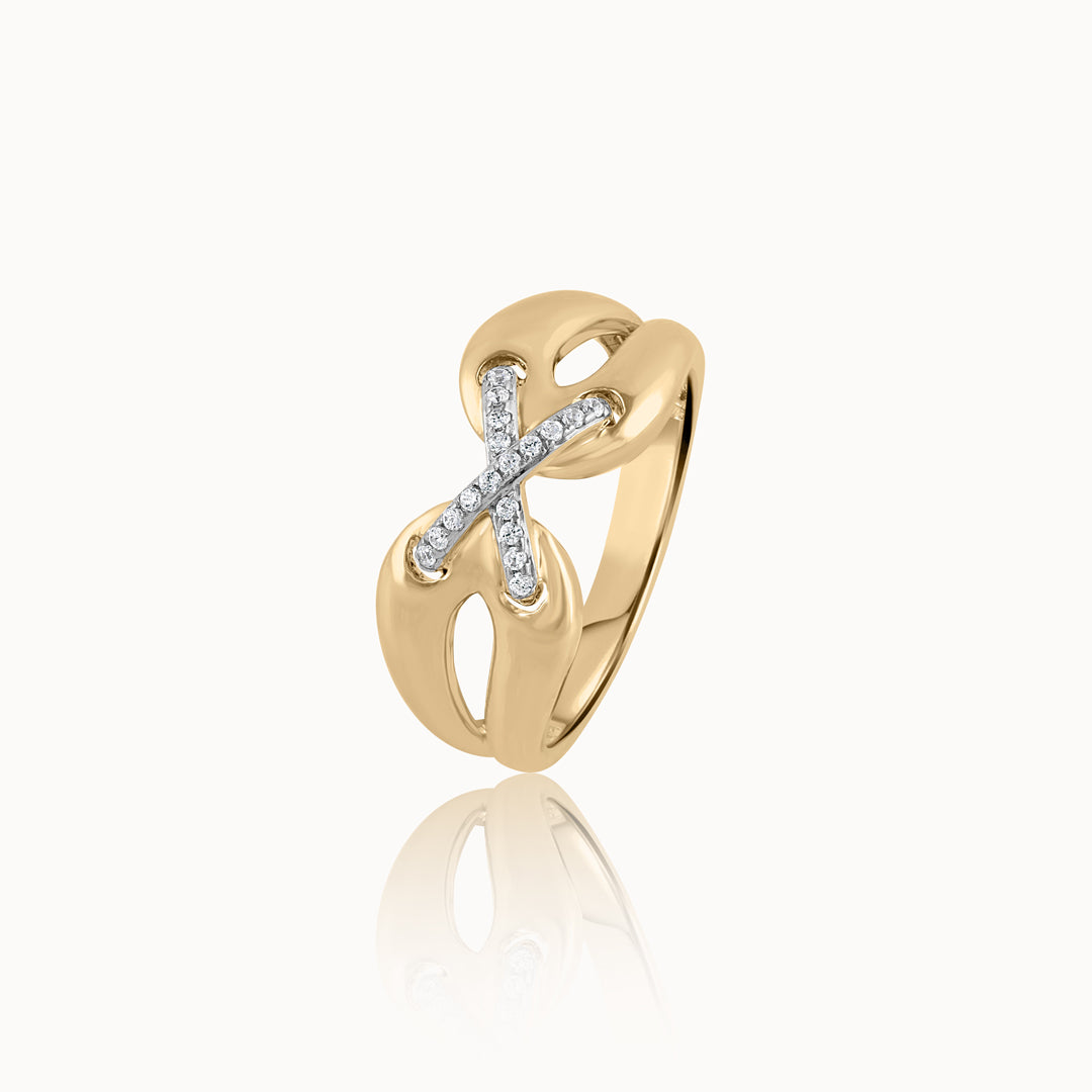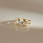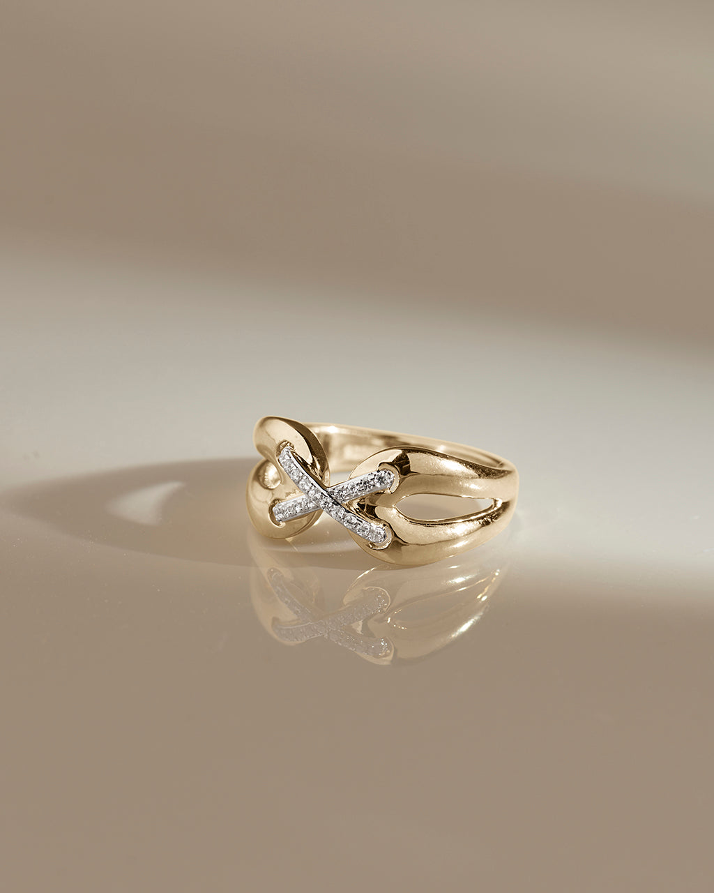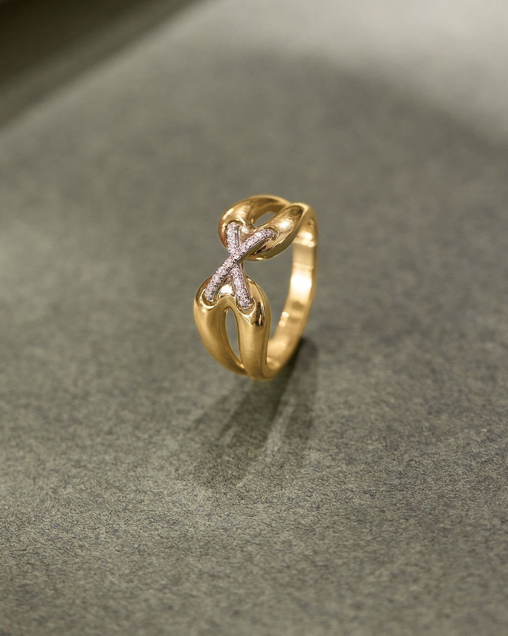 Two textures, one effortless statement. This 14k gold vermeil ring pairs smooth, sculpted gold with a crisscross of pavé-set diamonds, creating a bold design that stands out from every angle.