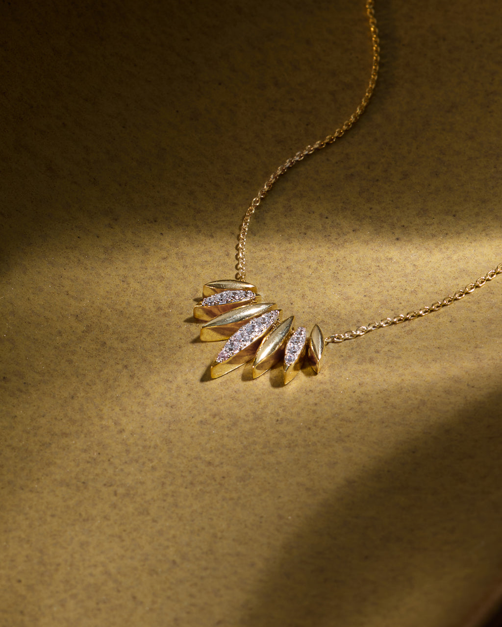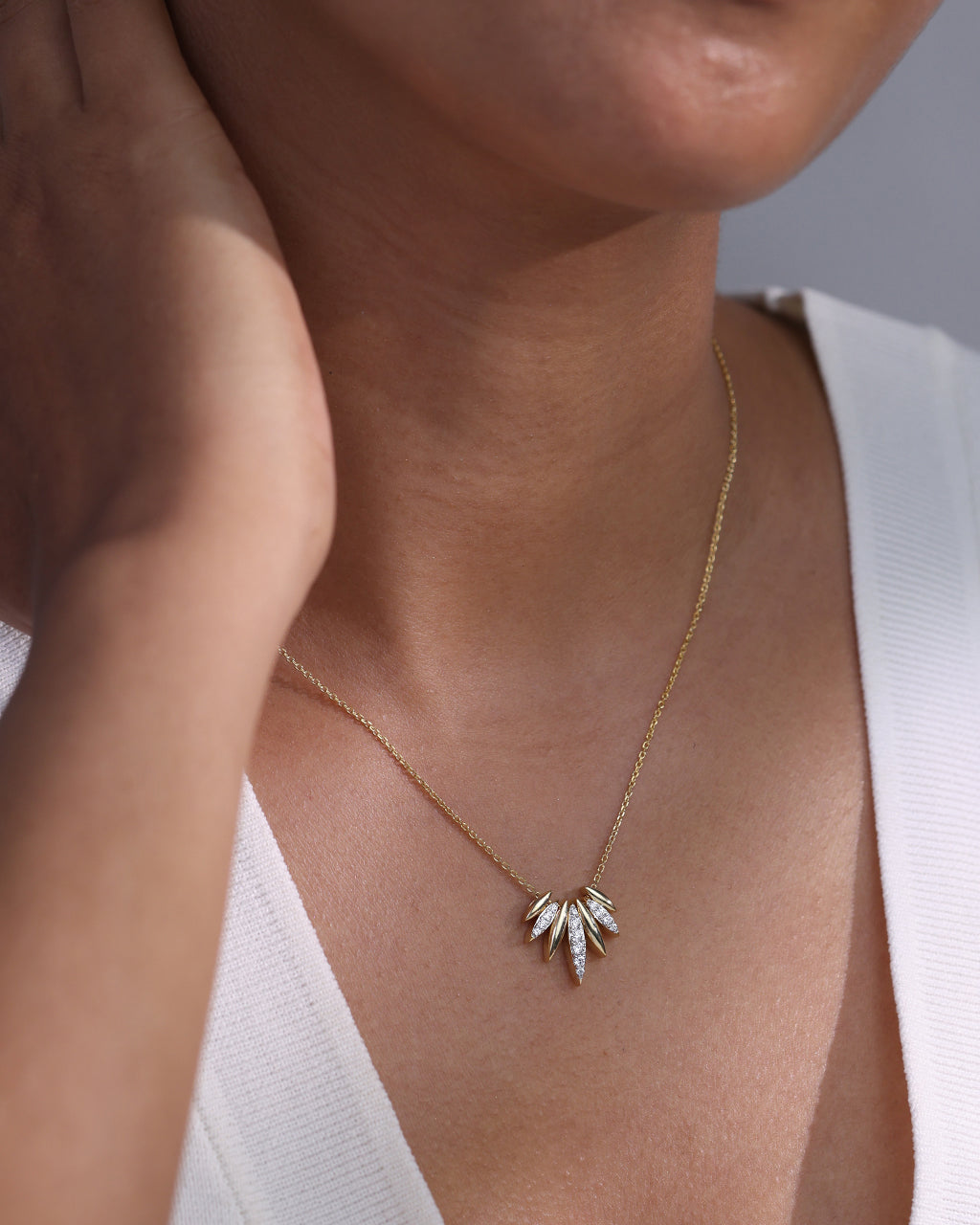 Graceful and full of sparkle—the Symphony Diamond Necklace in polished 14kt Gold Vermeil features an elegant pendant adorned with shimmering diamonds, bringing effortless harmony to your everyday style.