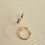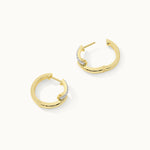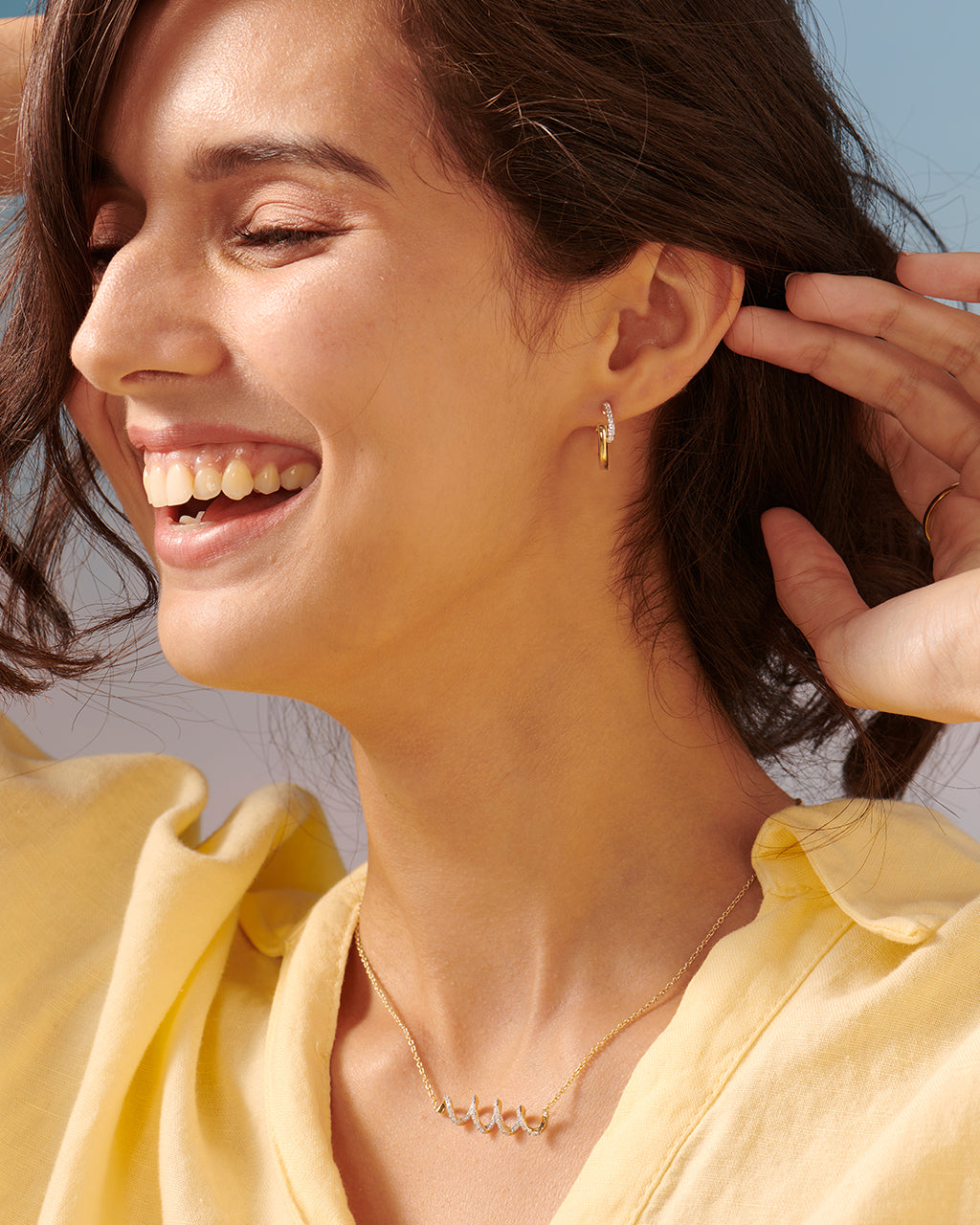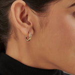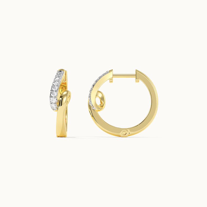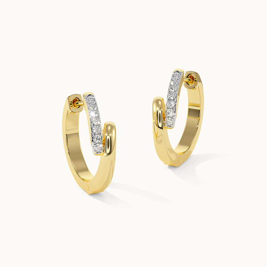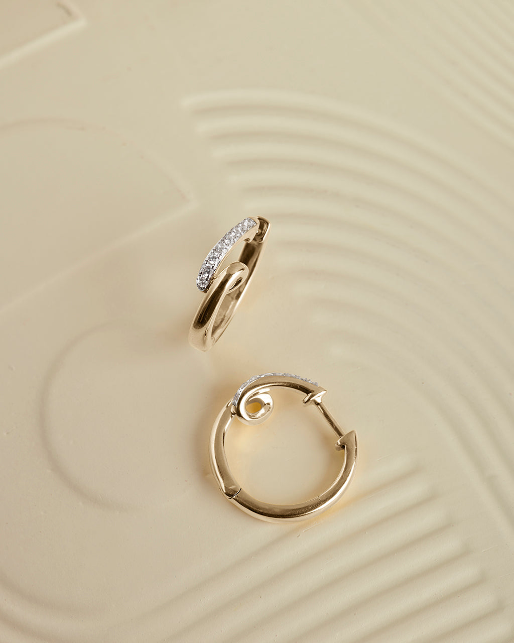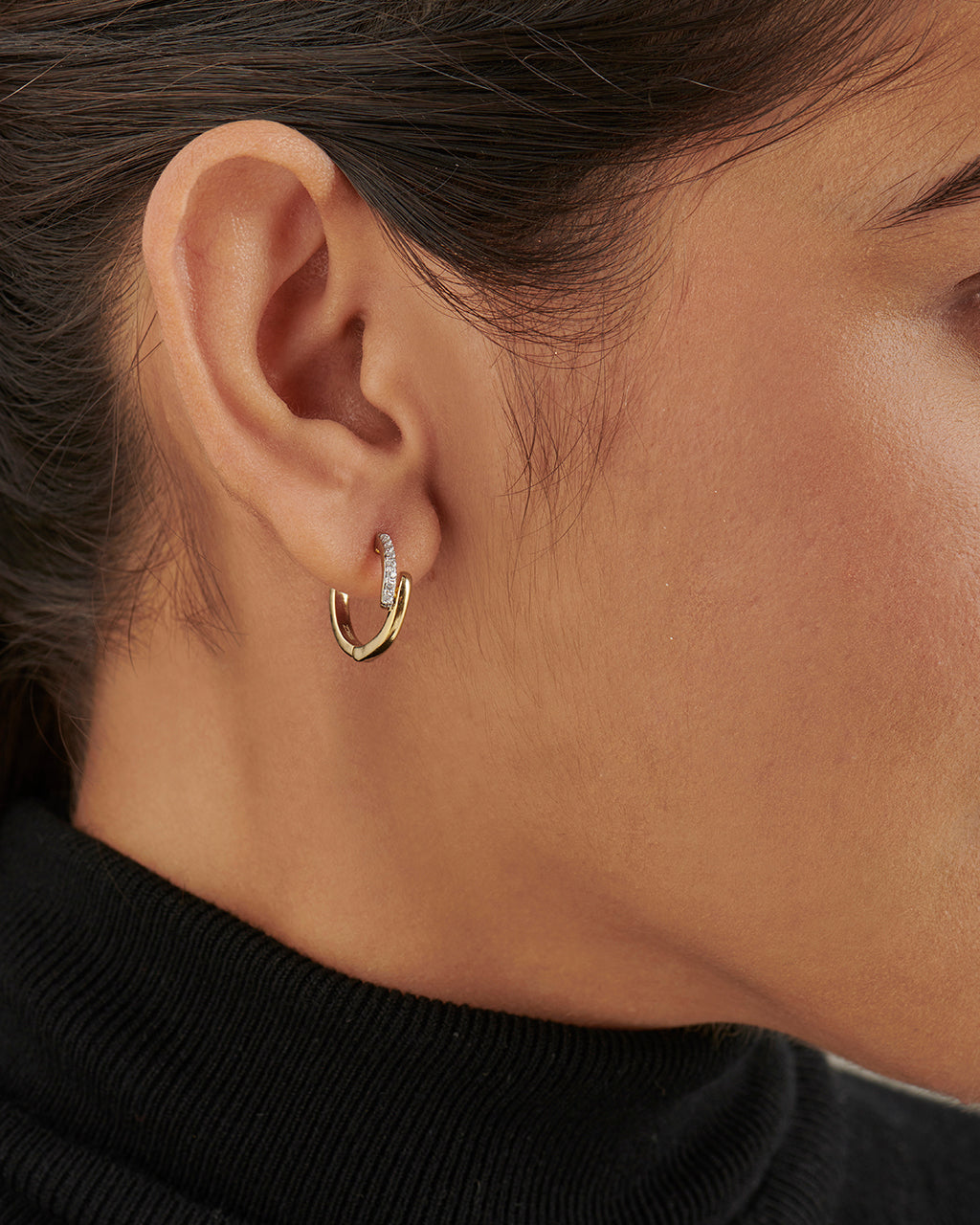 Sleek hoops with a twist, literally. A row of pavé-set diamonds adds an unexpected sparkle to the gentle curve of 14kt gold vermeil.