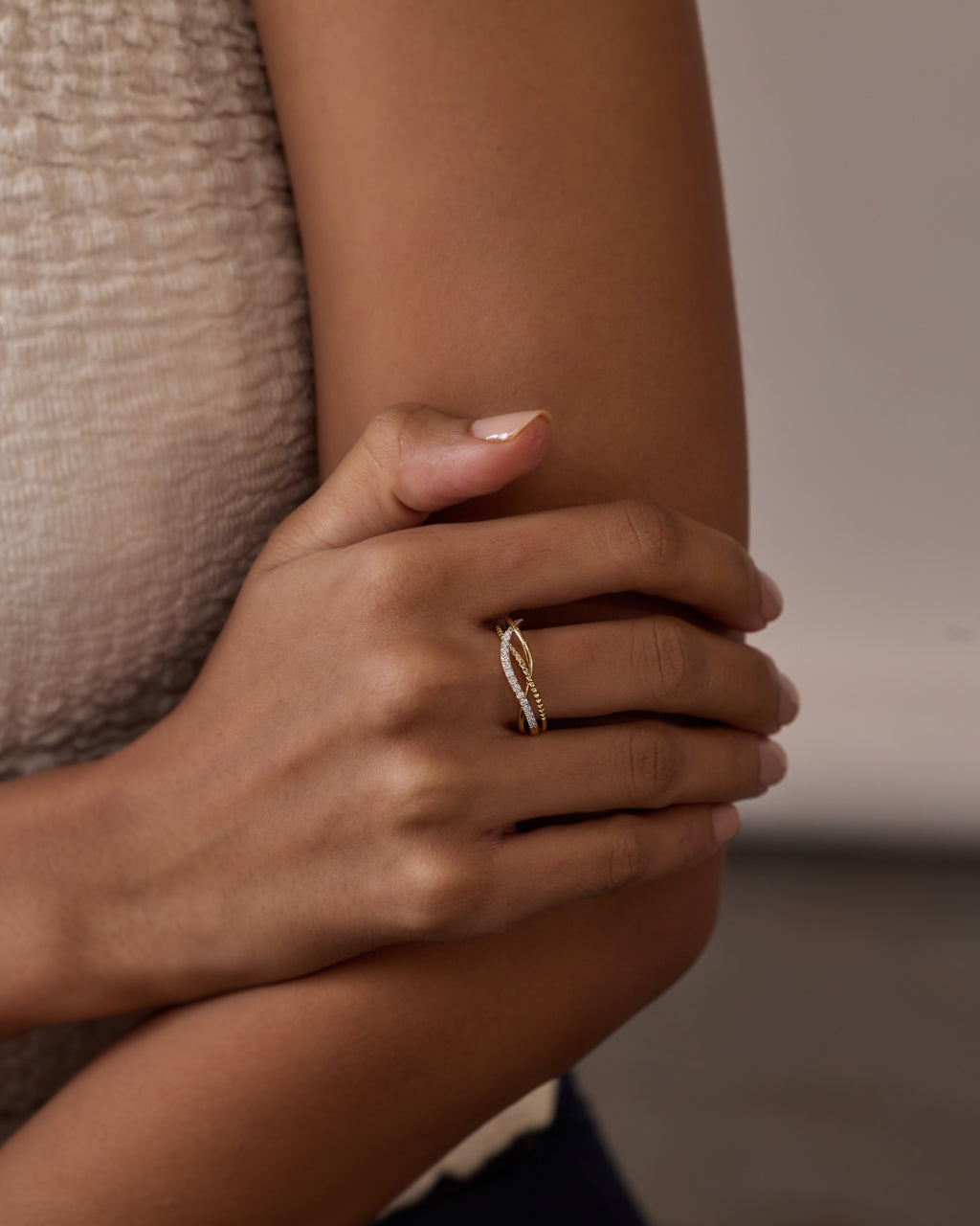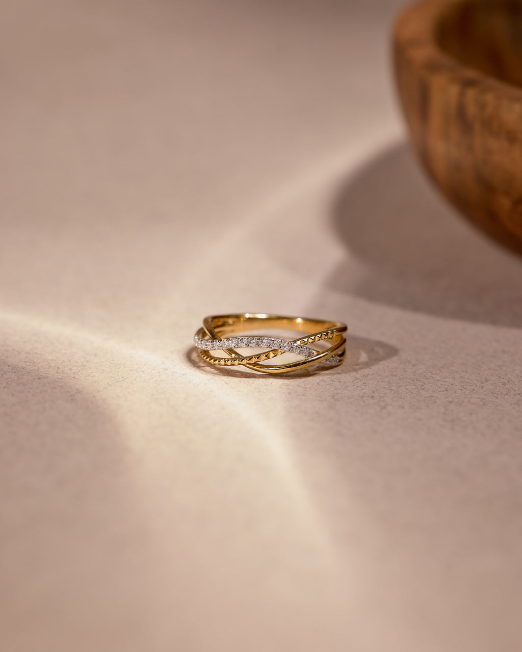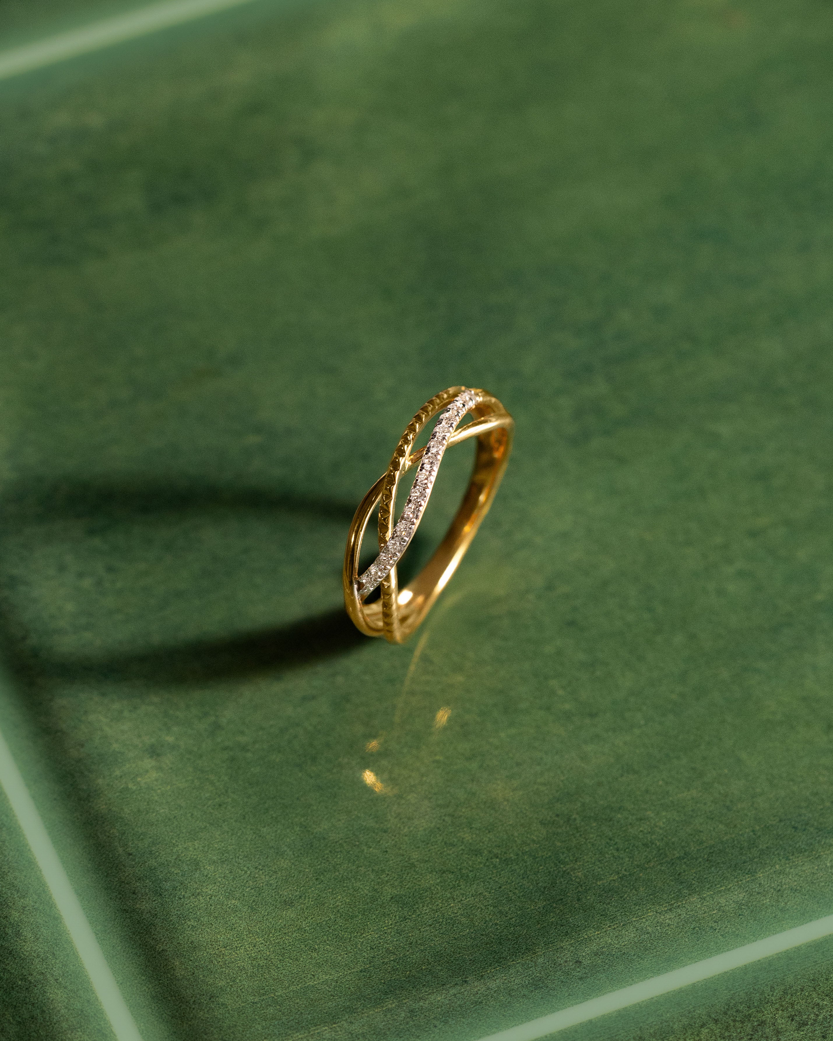 Sculpted to shine—the Twisted Pavé Diamond Ring in polished 14kt Gold Vermeil features entwined curves lined with shimmering pavé diamonds, bringing bold elegance and everyday brilliance to your style.