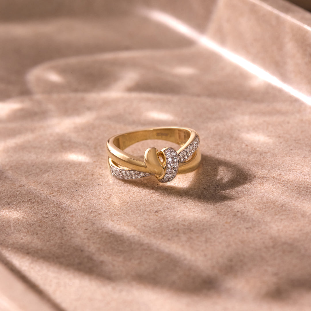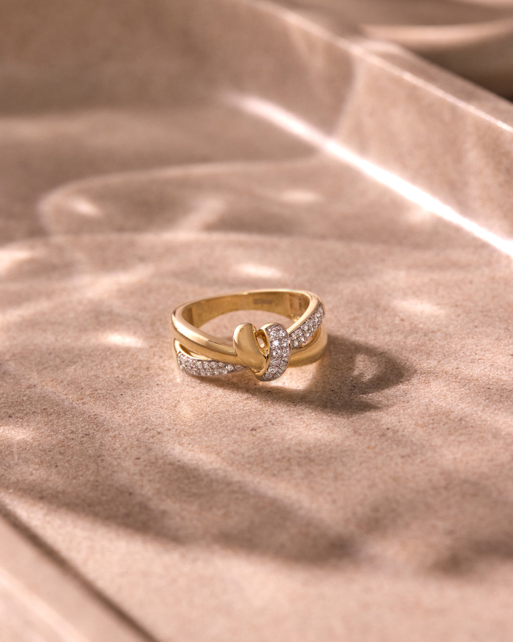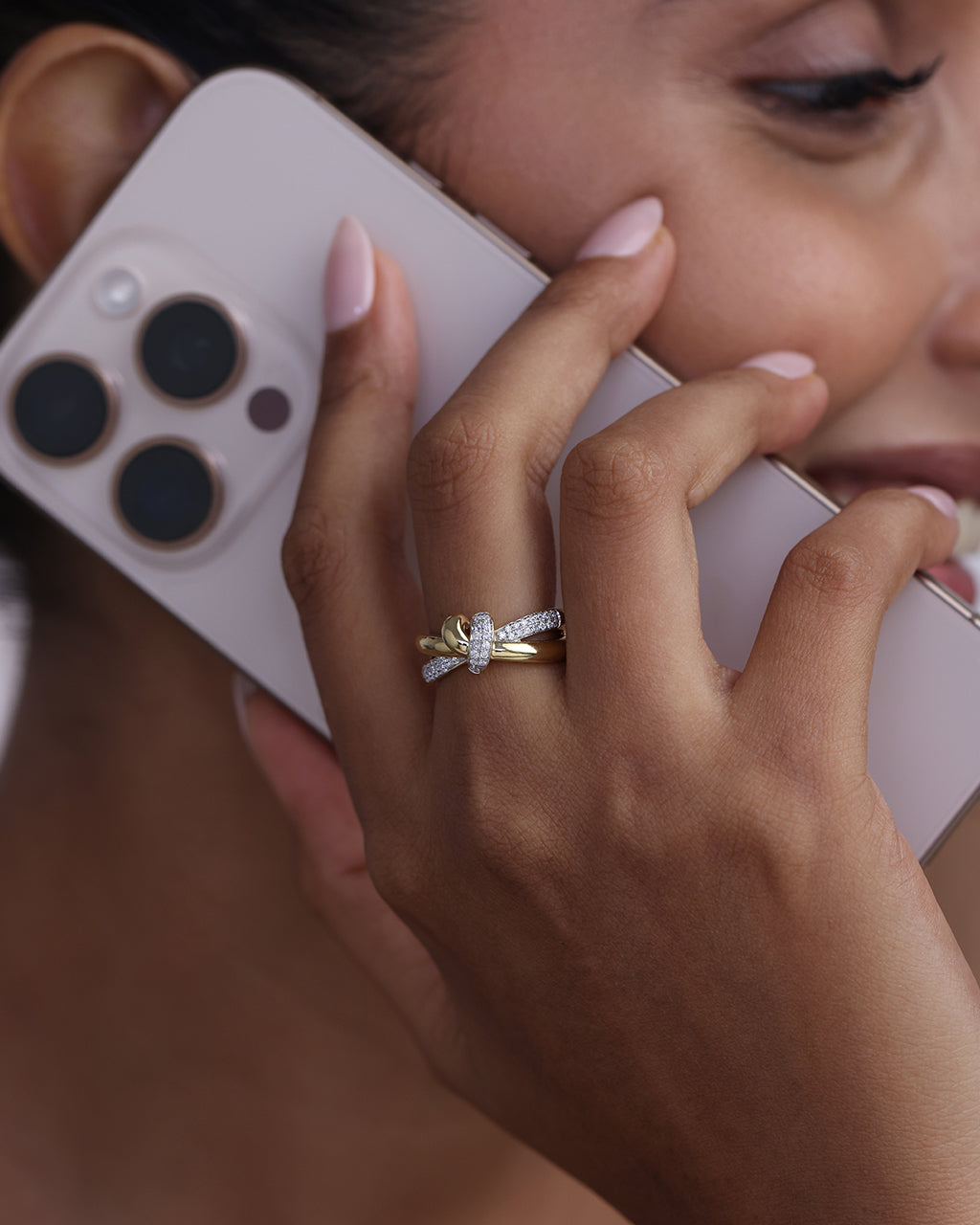 A knot that holds more than just sparkle. This stylish ring pairs smooth gold vermeil with a ribbon of pavé diamonds, tied together in an iconic, wear-everywhere design.