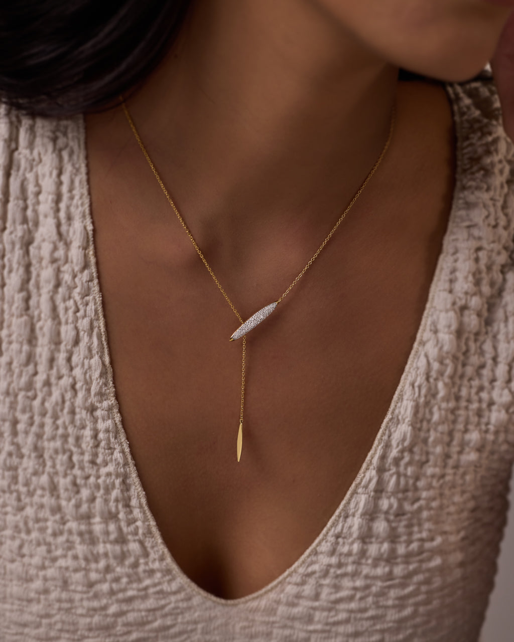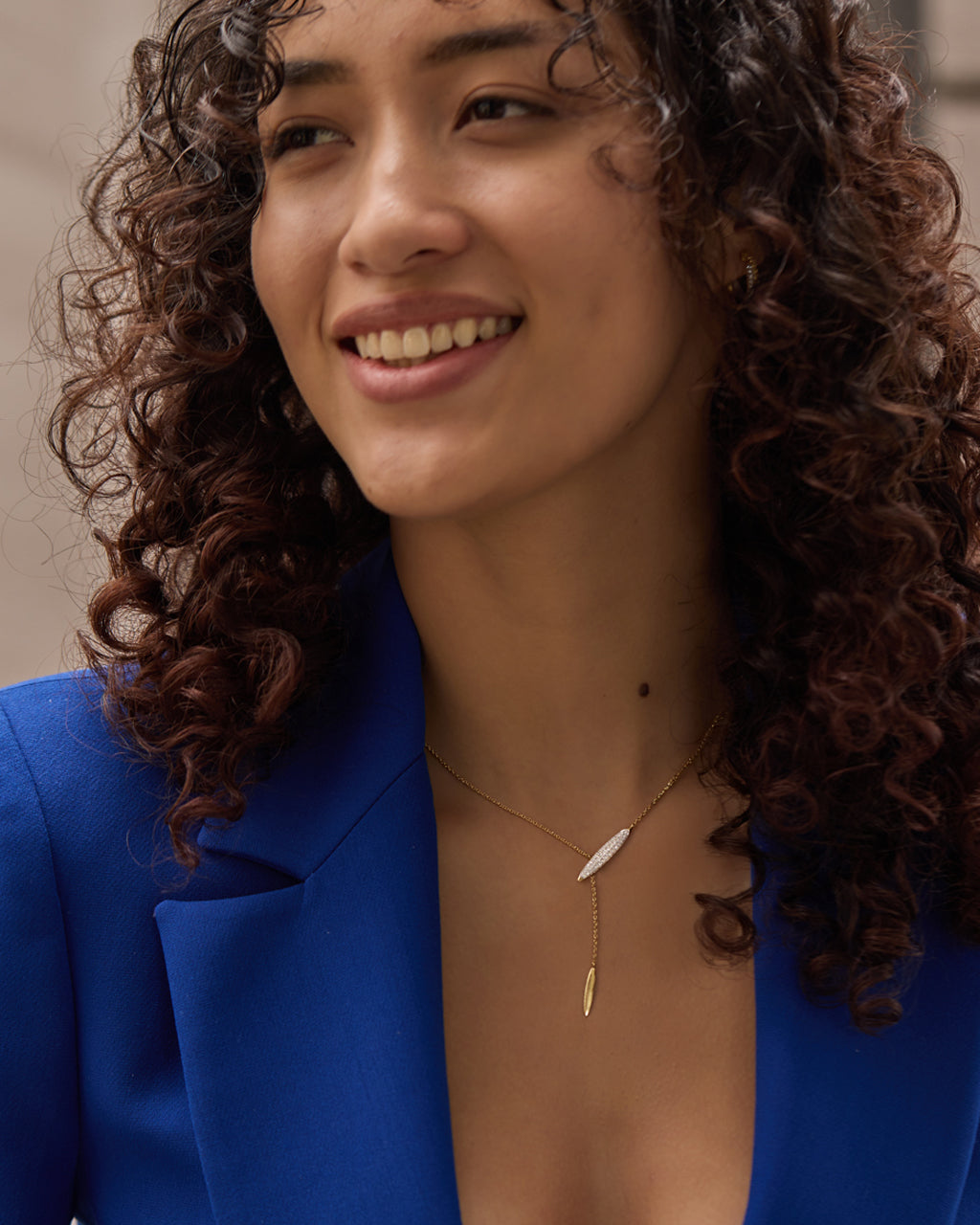 Smooth, striking, and endlessly wearable—the Sleek Drop Lariat Necklace in polished 14kt Gold Vermeil features a fluid drop design that adds a bold yet graceful finish to any look.