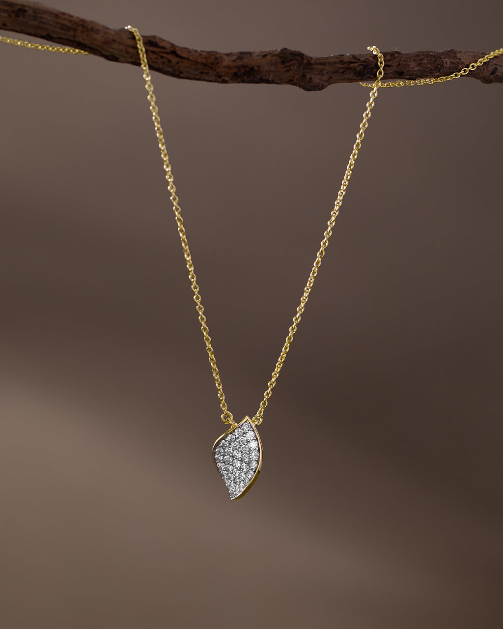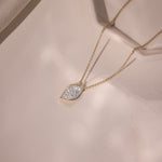 Crafted in 14kt Gold Vermeil, this pendant pairs petal-inspired curves with clustered diamonds. Delicate in shape, luminous in intent.