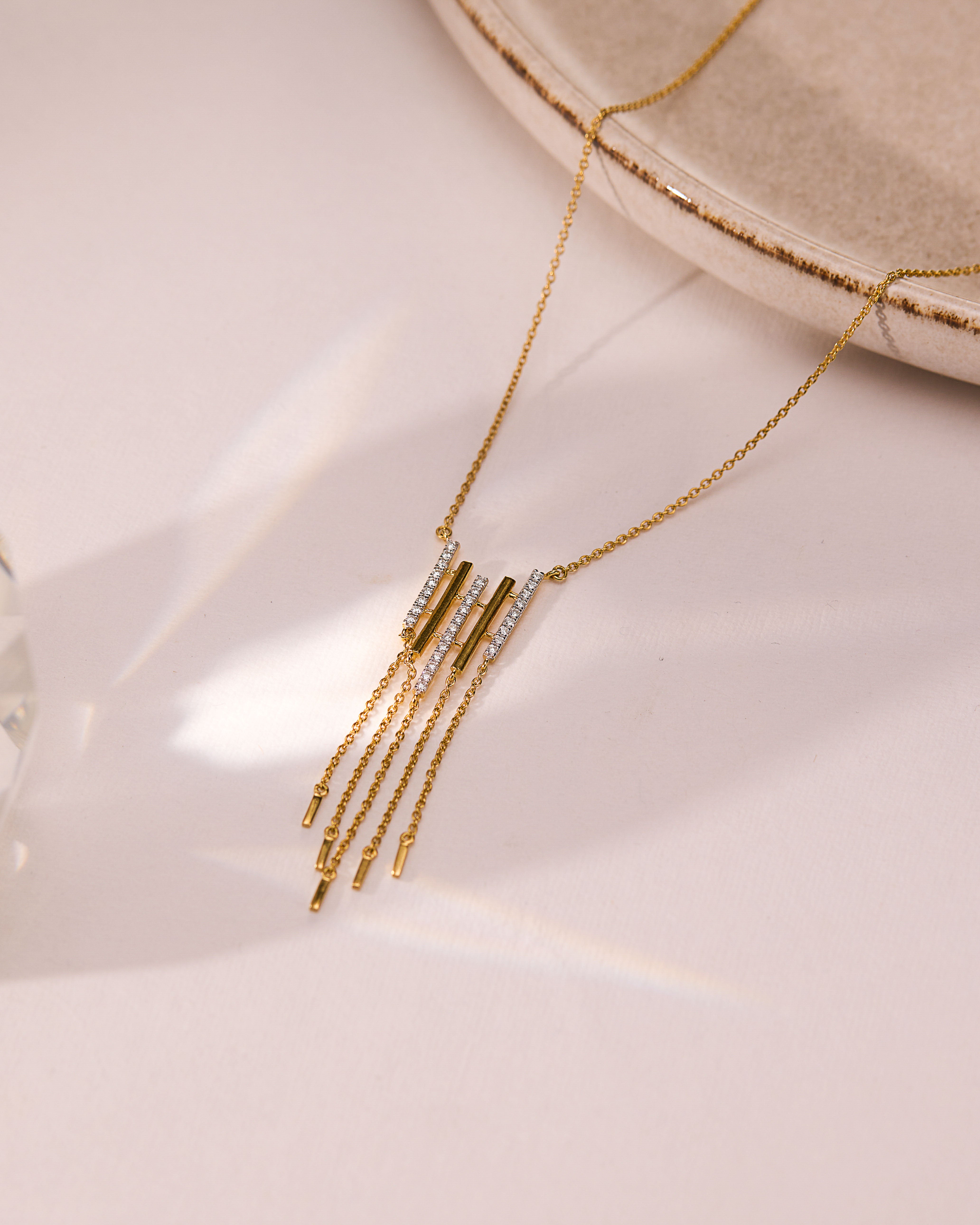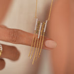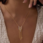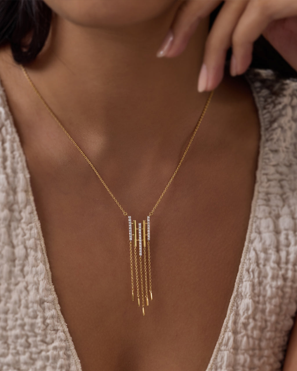 Light up your look with the Starlight Fringe Necklace in polished 14kt Gold Vermeil. Featuring delicate fringes that shimmer like falling stars, it brings a touch of magic to every moment you wear it.