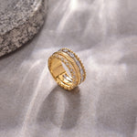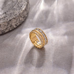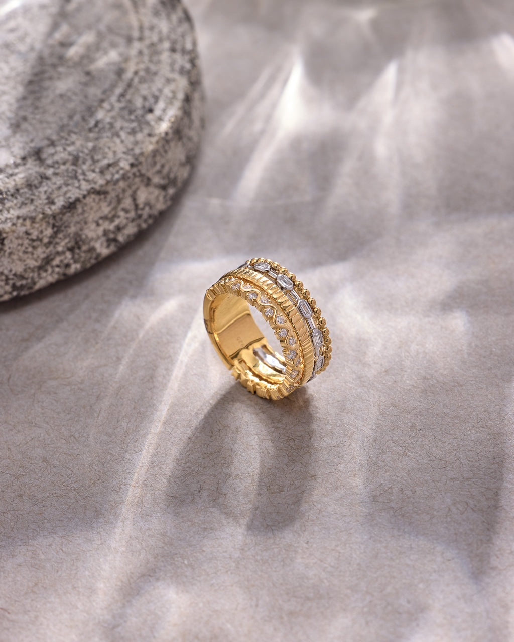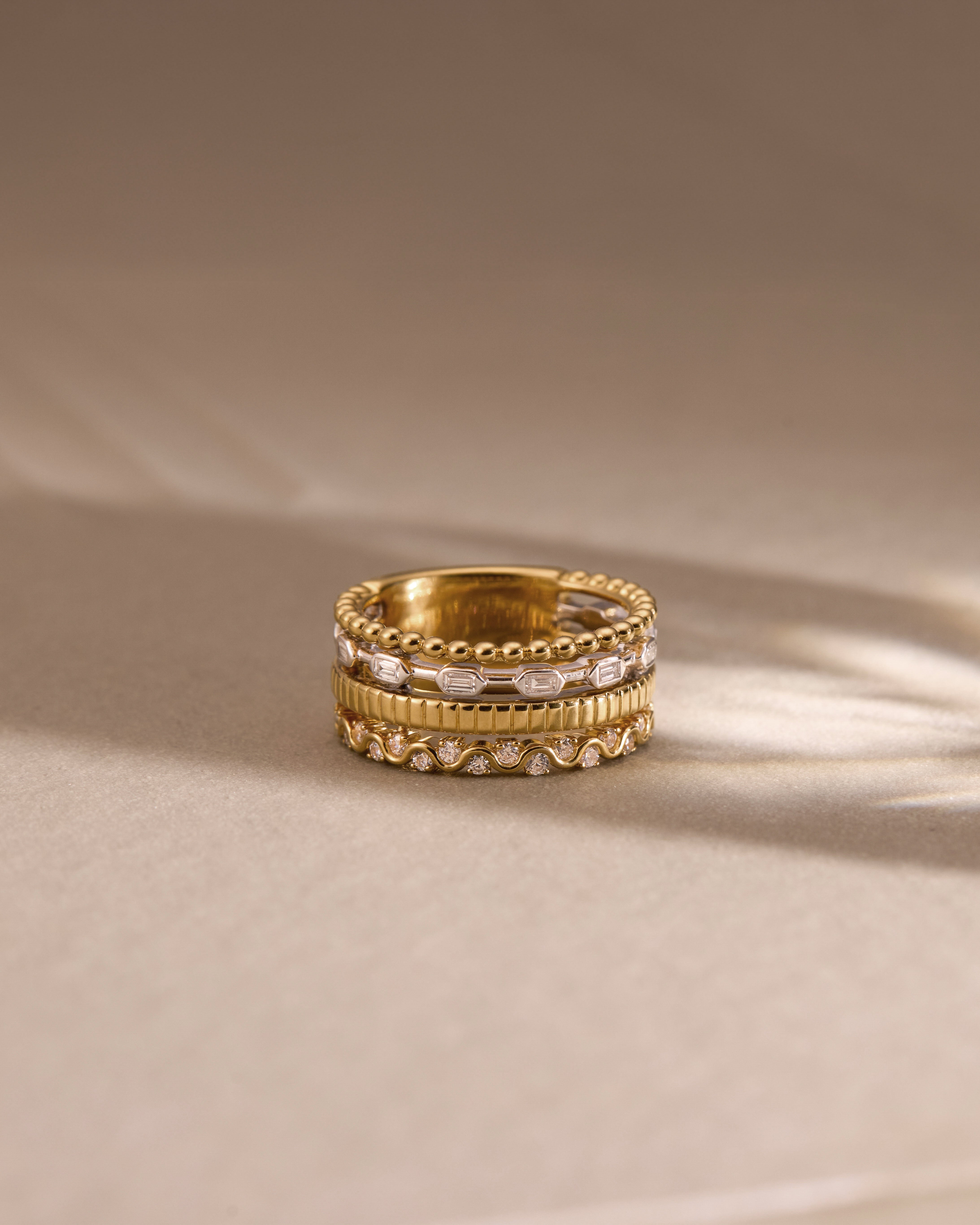 Bold by design—the Texture Stacked Diamond Band Ring in polished 14kt Gold Vermeil layers rich textures and shimmering diamonds, creating a statement piece that brings depth and brilliance to every look.