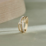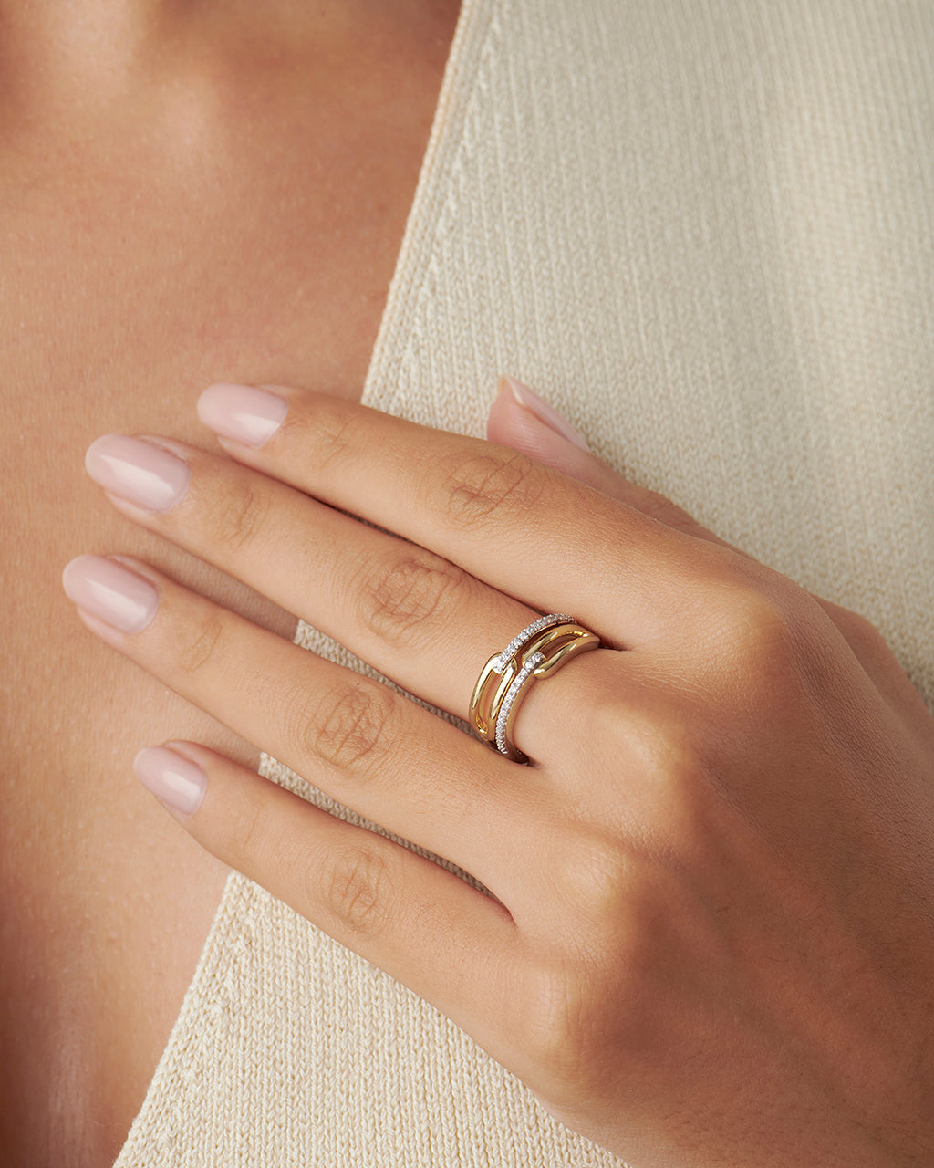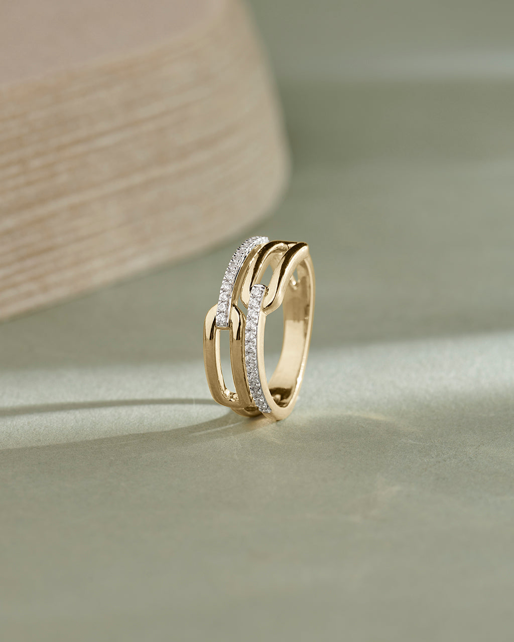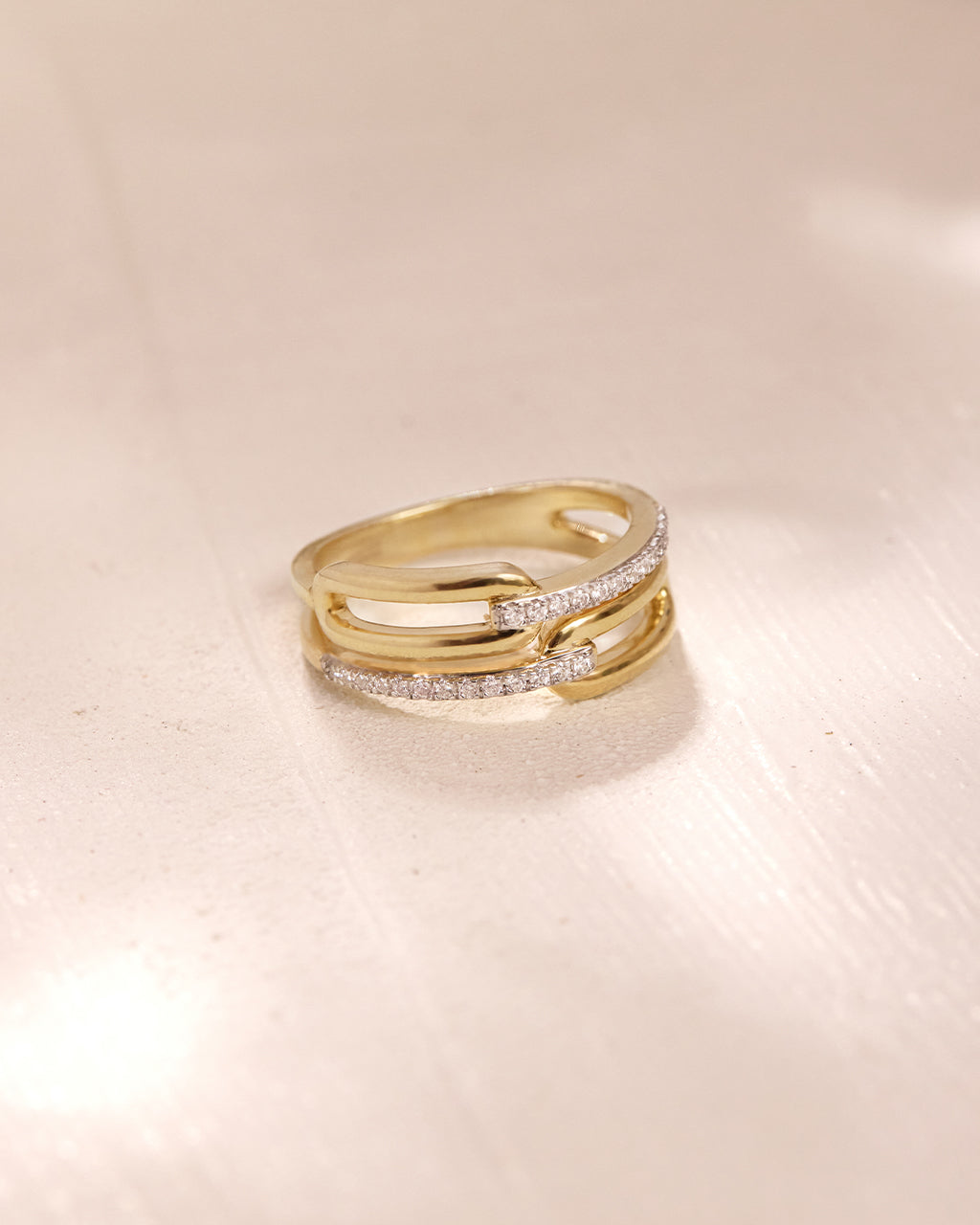 Double the style, double the shine. This 14k gold vermeil band features two parallel paperclip-inspired links, one polished to perfection and the other accented with pavé diamonds, creating a sleek, modern statement.