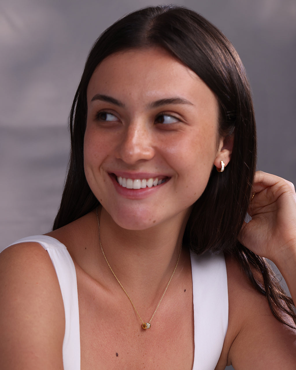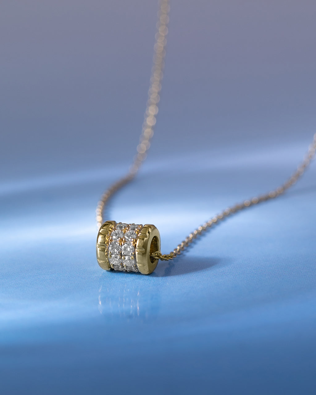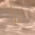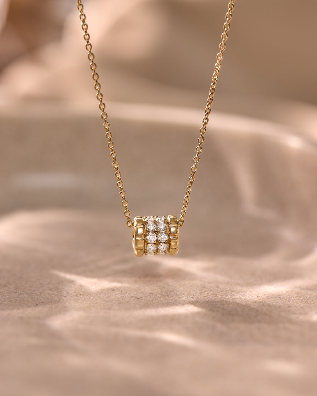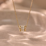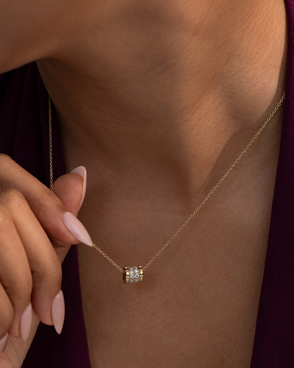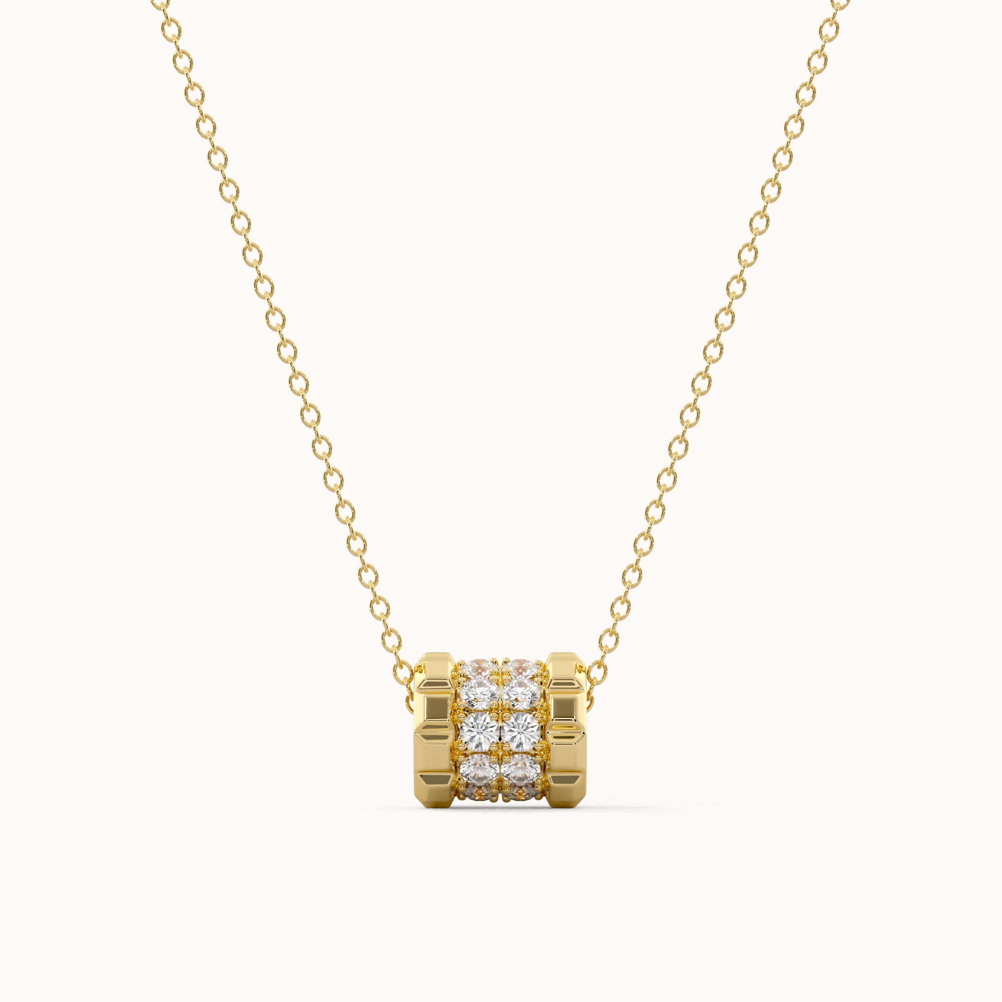 The Bling Diamond Loop Necklace combines a bold cylindrical shape with pavé sparkle, giving your neckline just the right dose of modern glam.