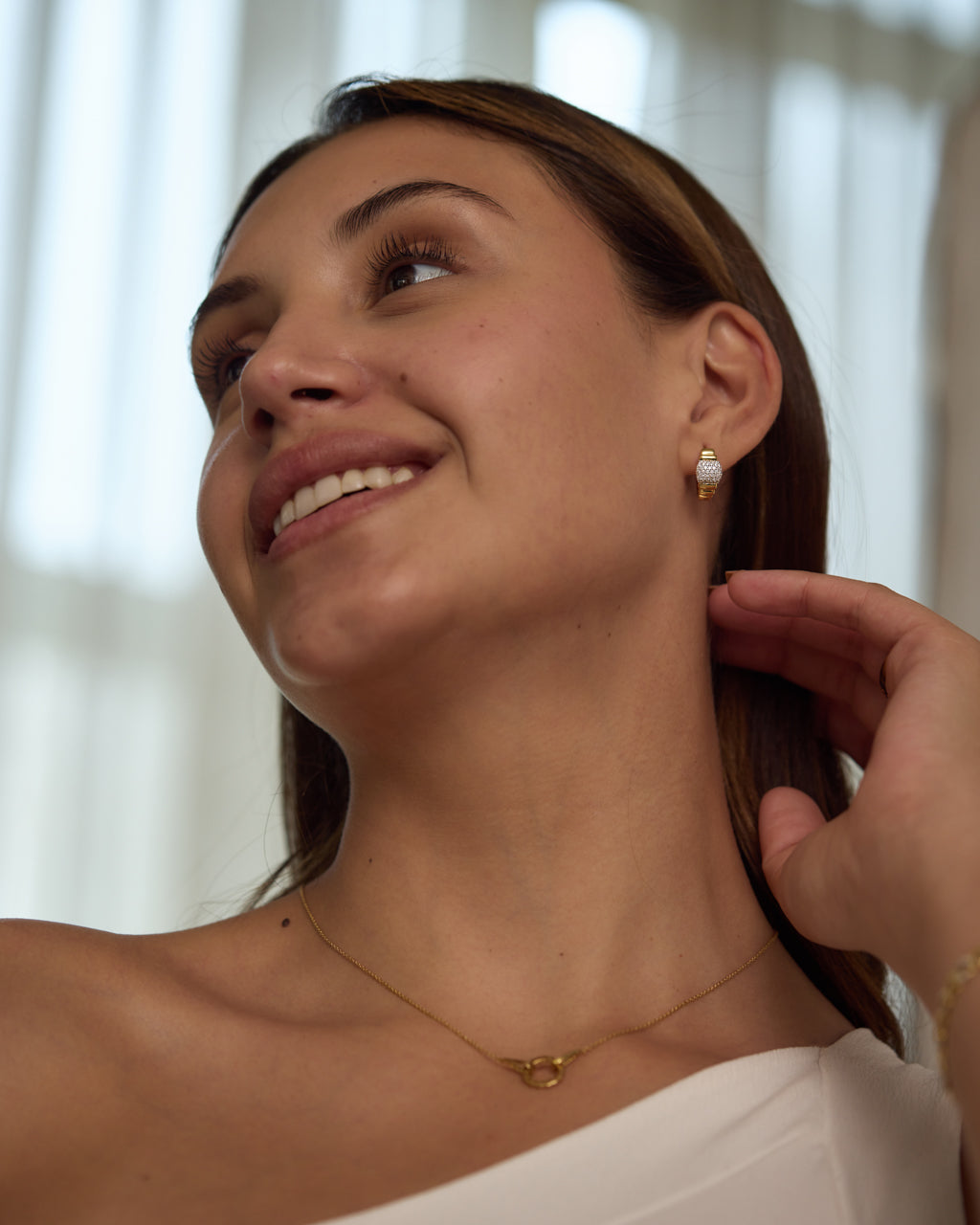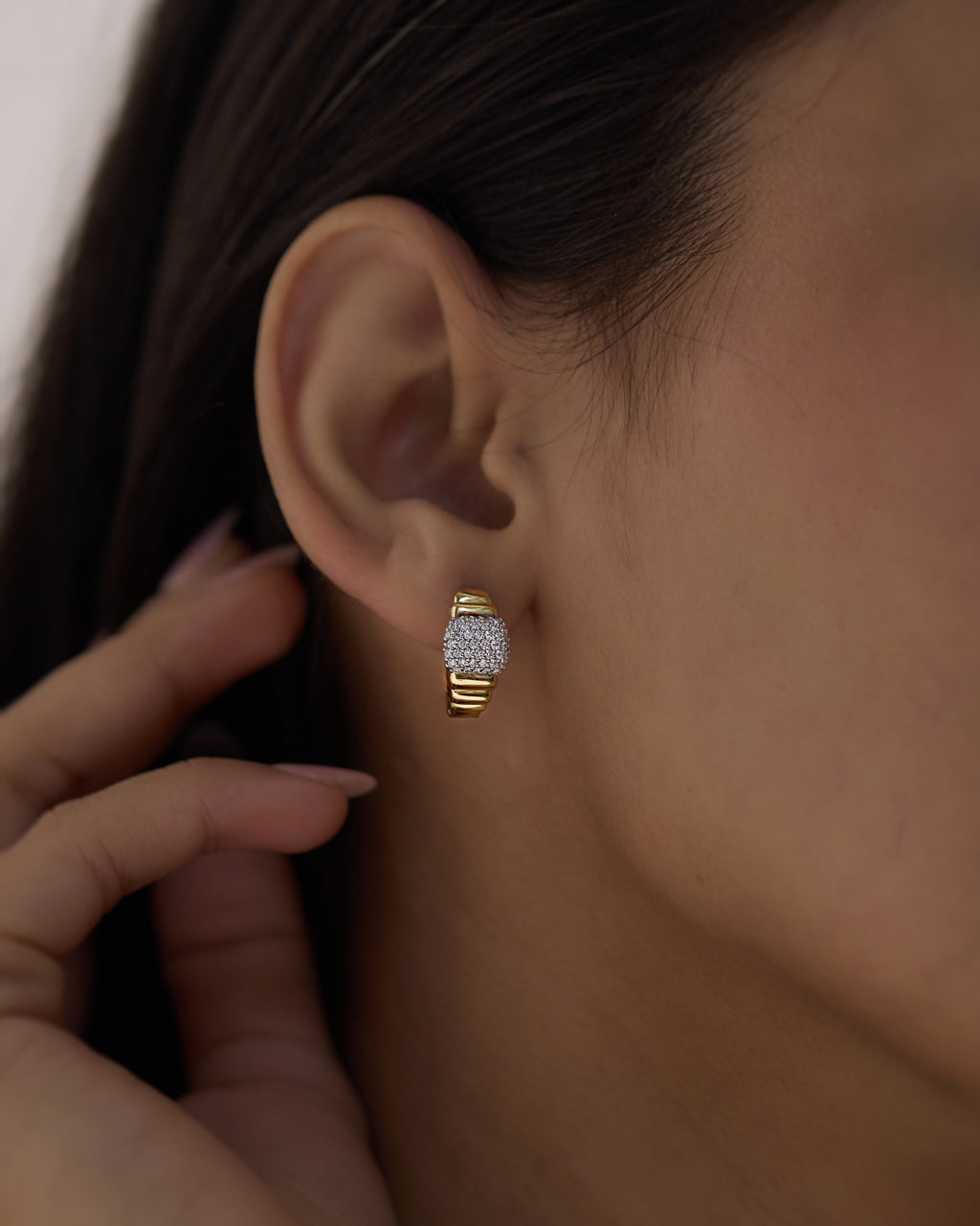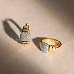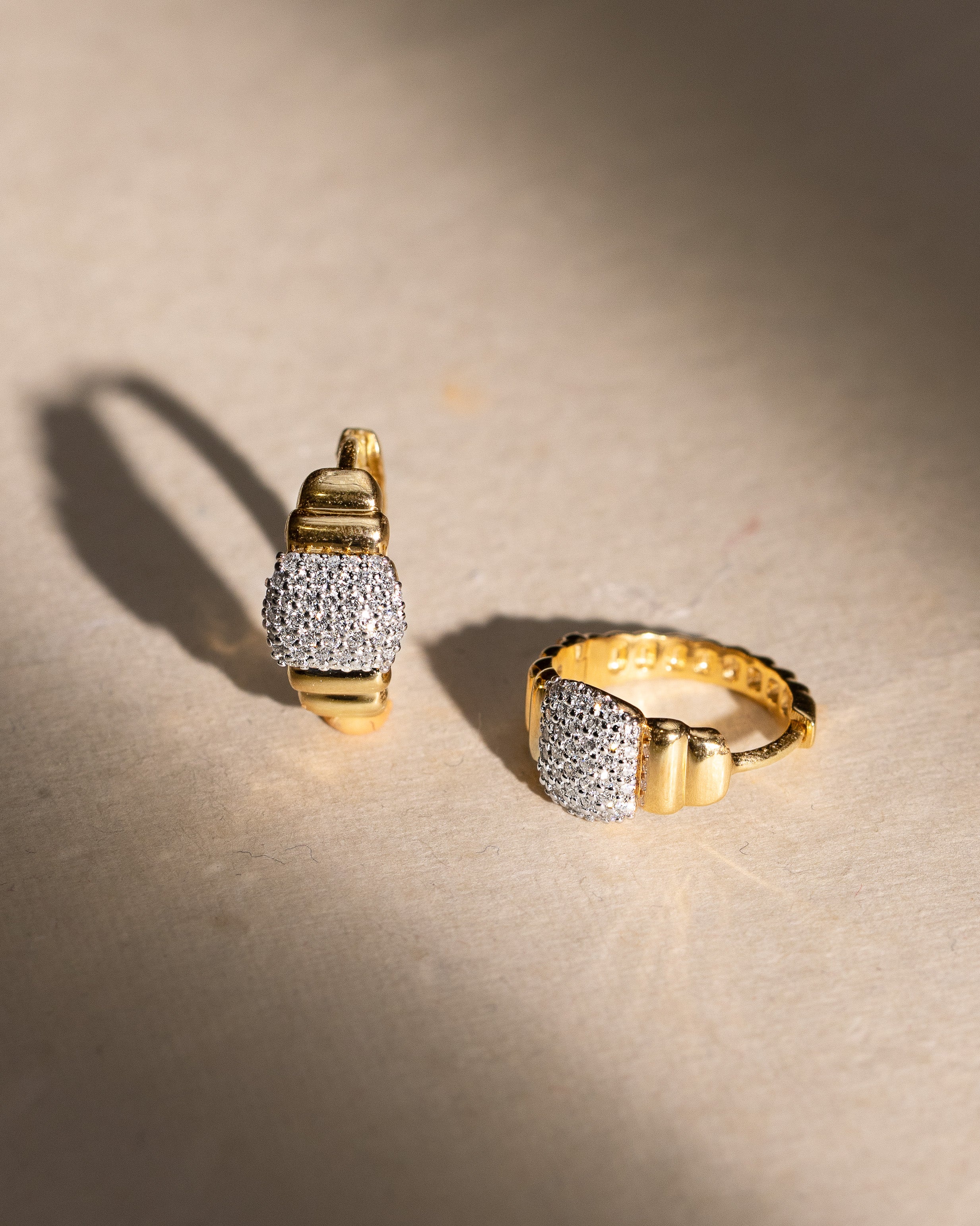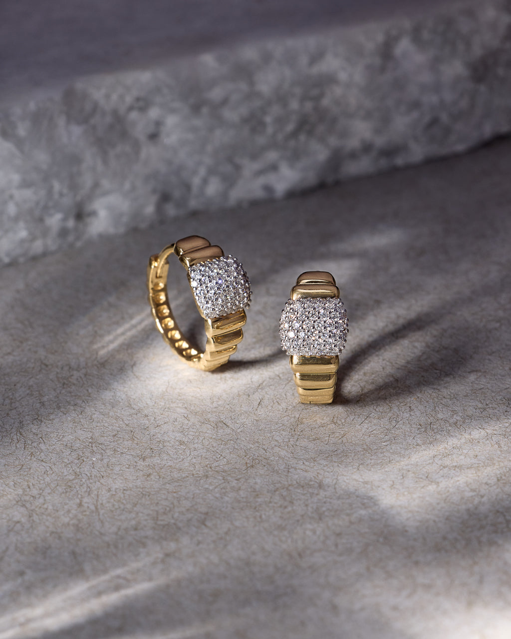 Glow with quiet fire—the Diamond Ember Hoops in polished 14kt Gold Vermeil feature a refined silhouette lit up with sparkling diamonds, striking the perfect balance between bold edge and everyday ease.
