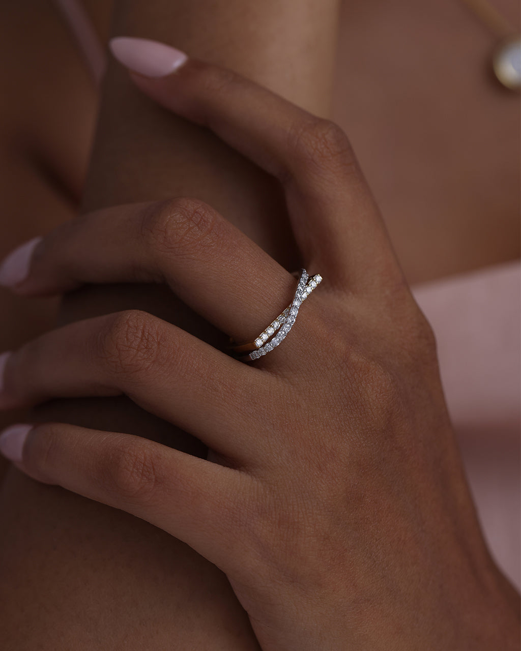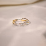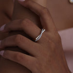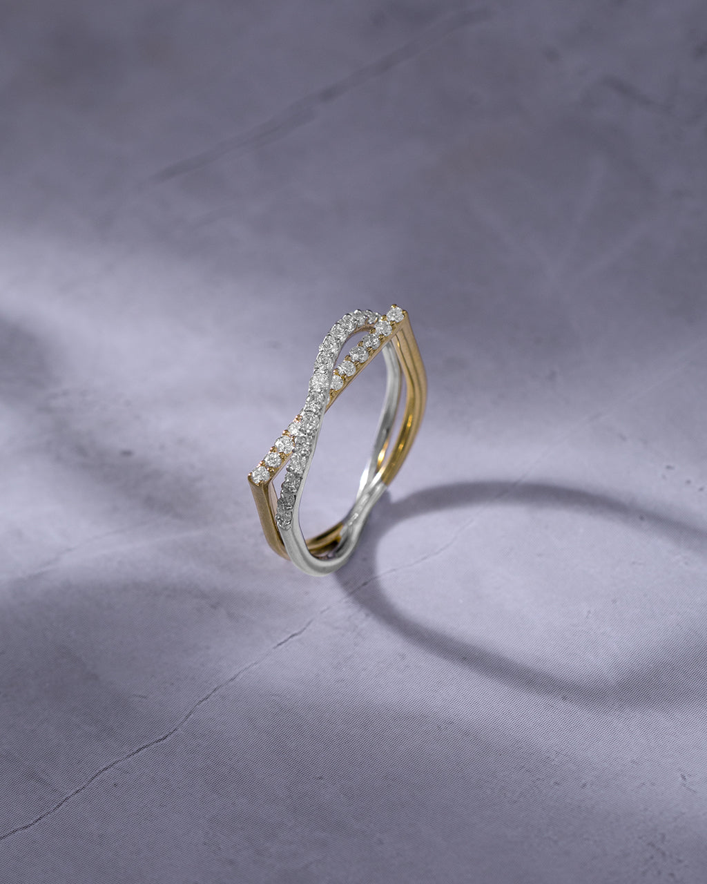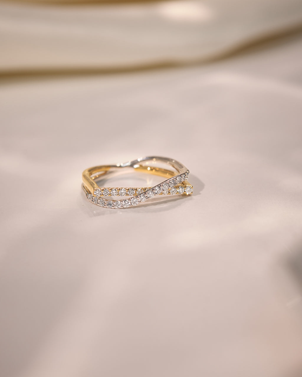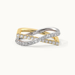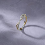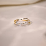 Sleek gold meets shimmering pavé in this sculptural crossover design. The Diamond Threads Ring wraps the finger in movement, texture, and quiet brilliance.