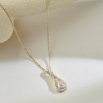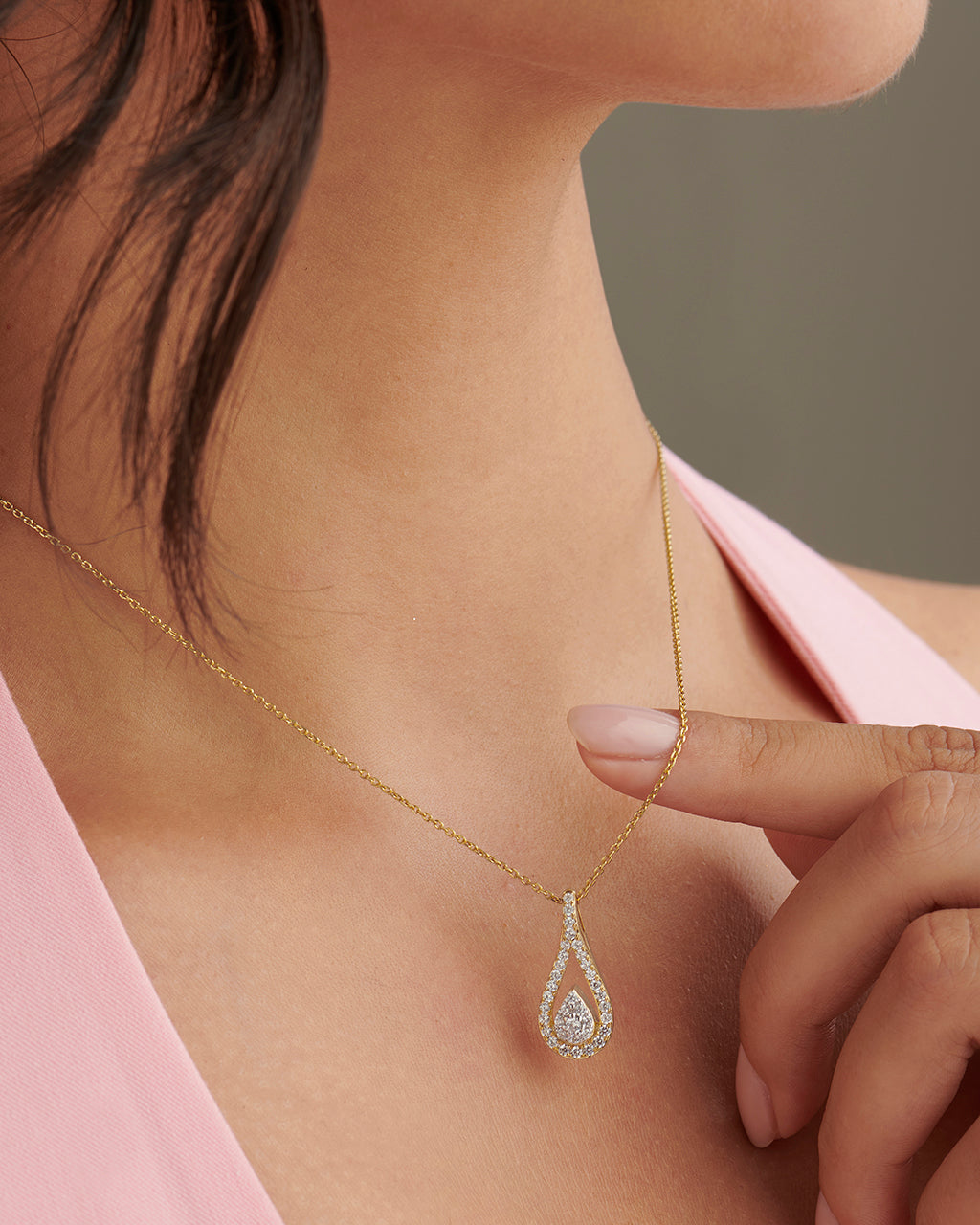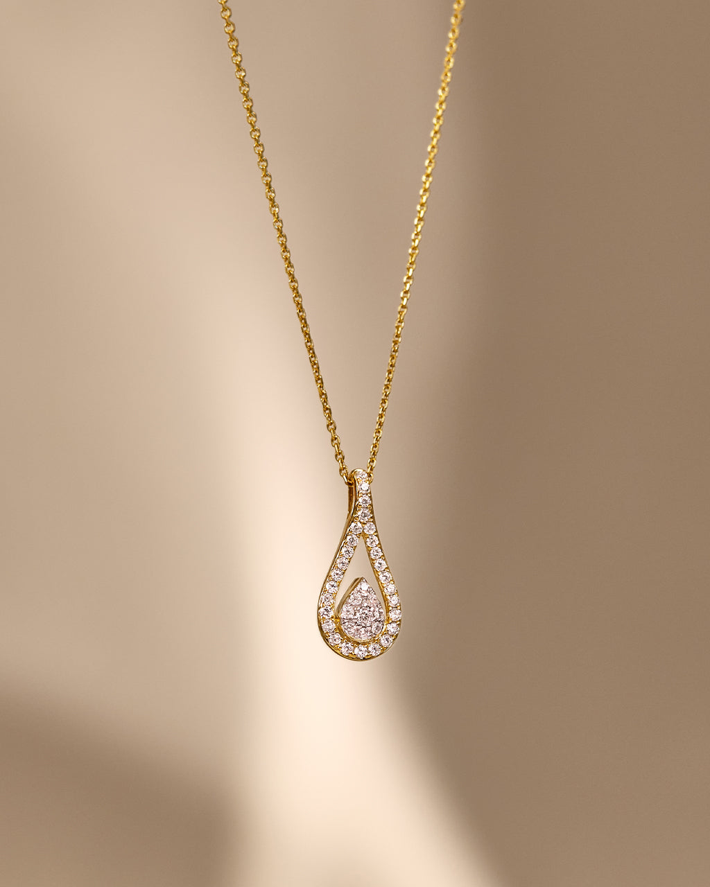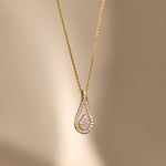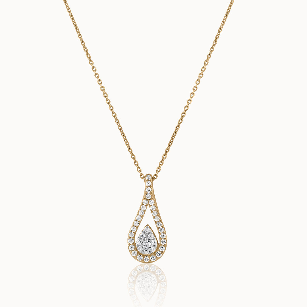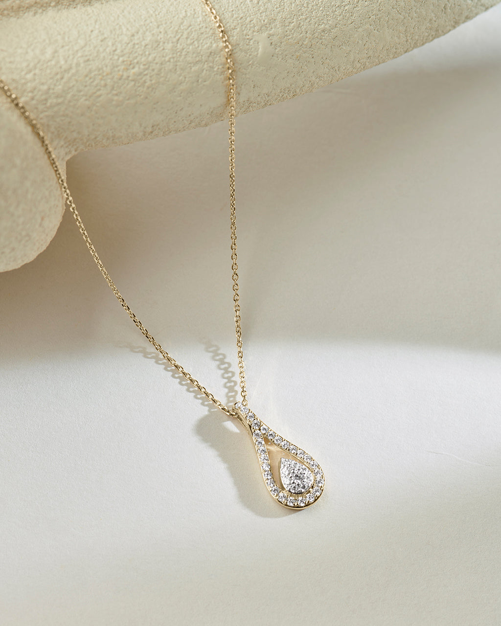 A teardrop within a teardrop , this pendant layers open space and brilliant sparkle for a striking yet graceful look. Crafted in 14kt gold vermeil and set with shimmering diamonds, it’s a piece that draws the eye without overpowering your style.