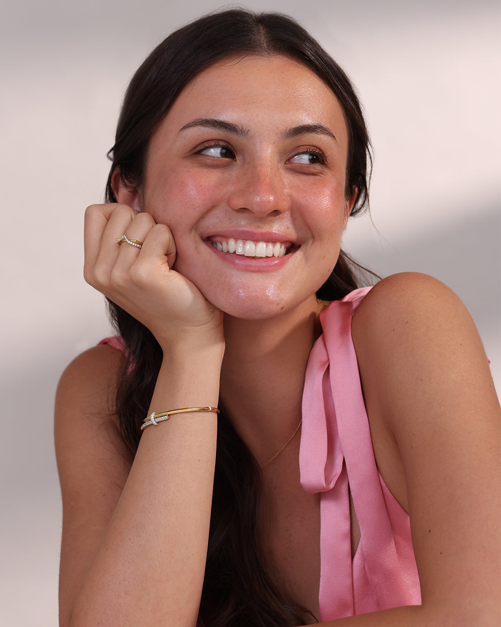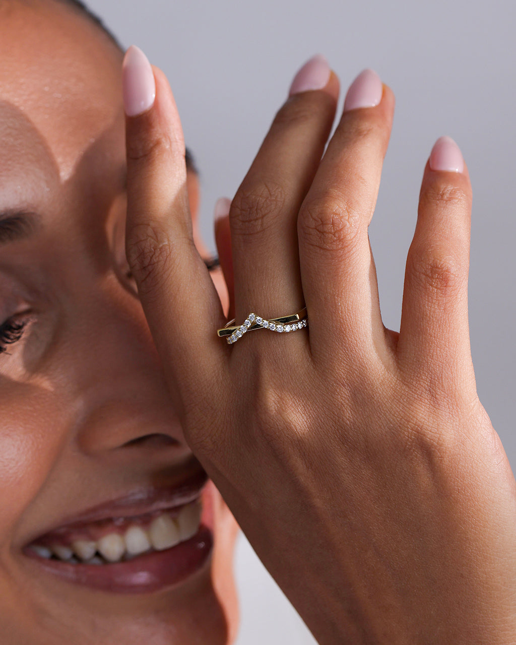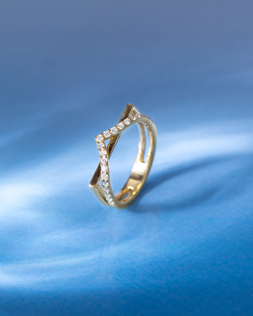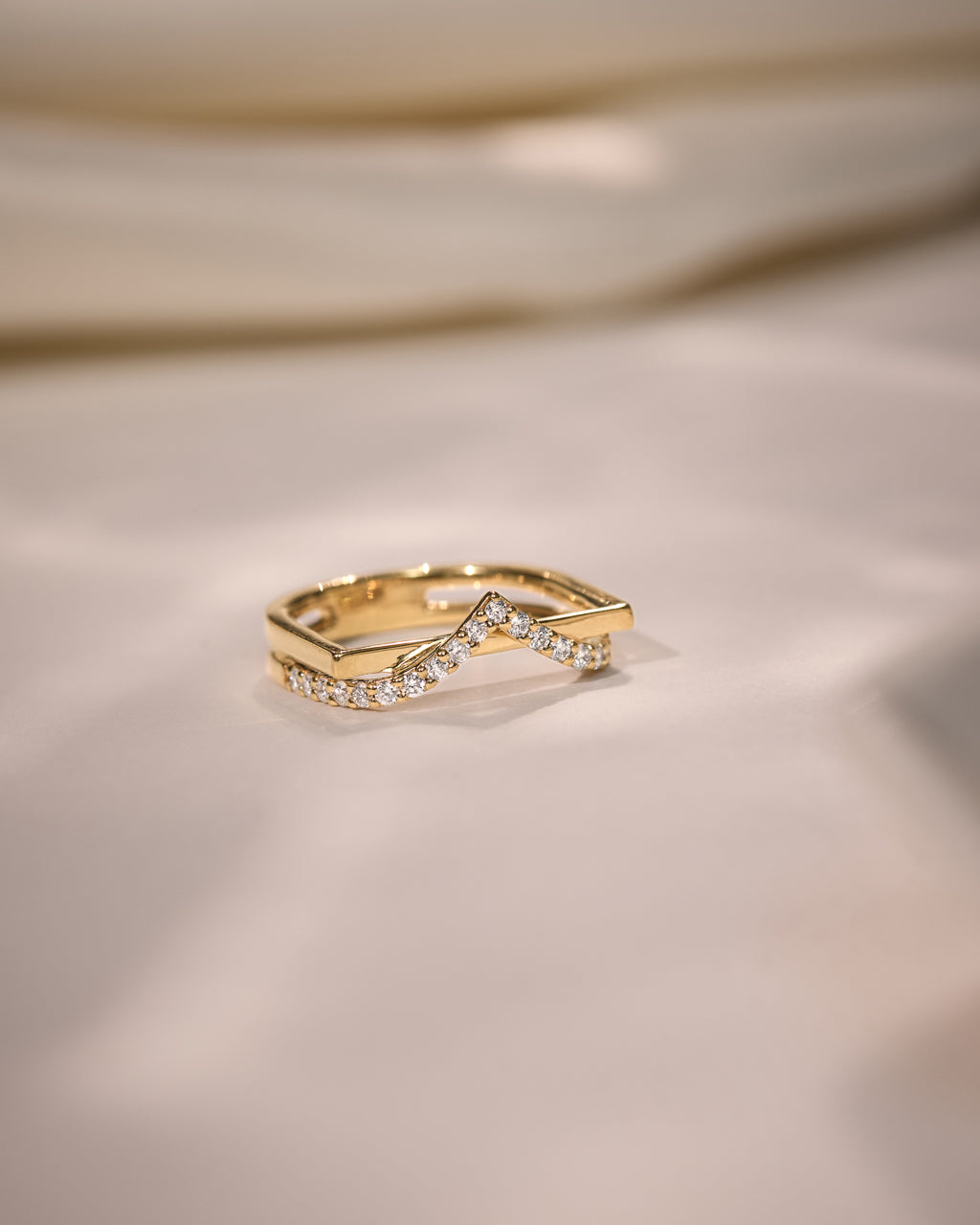 With its elevated diamond ridge and smooth gold band, this ring blends sculptural form and everyday polish in perfect balance.