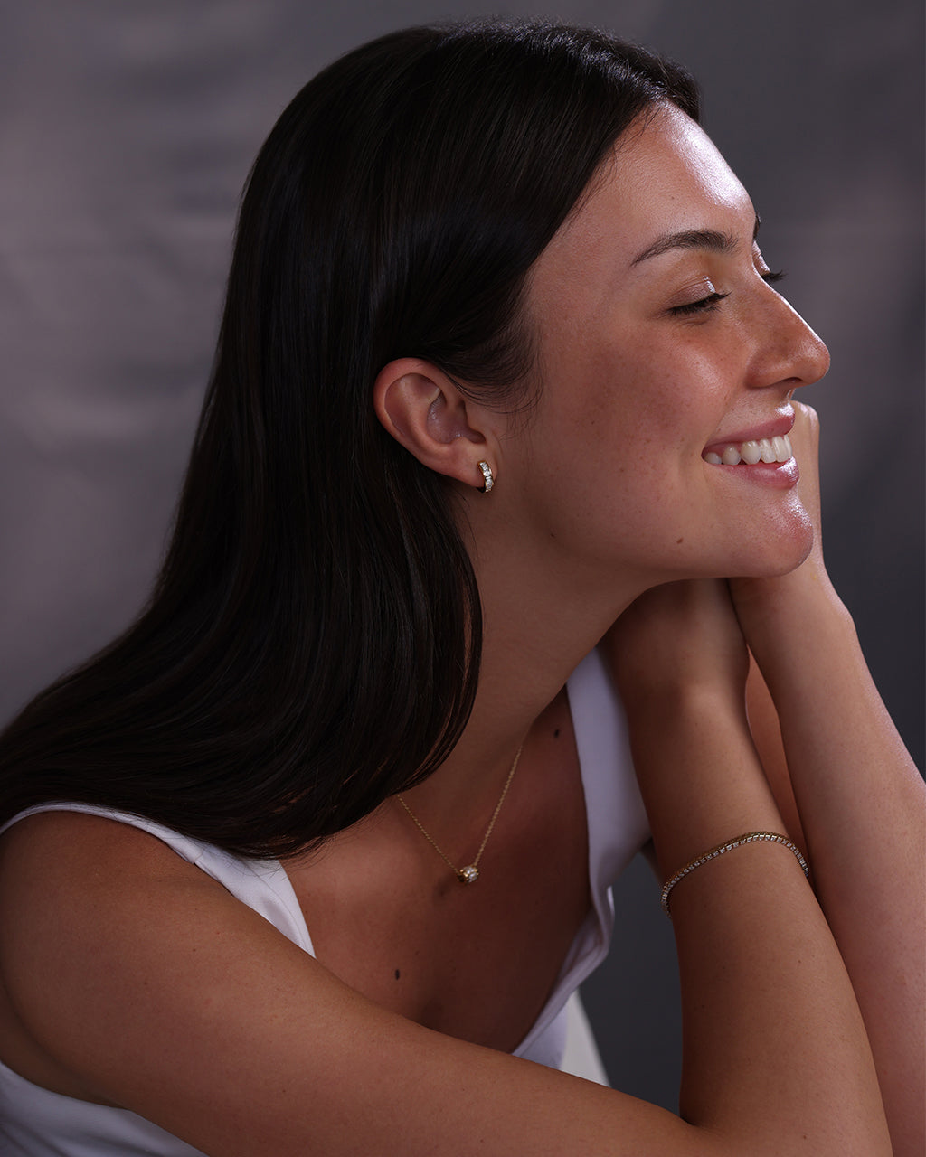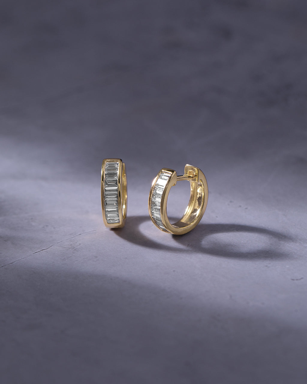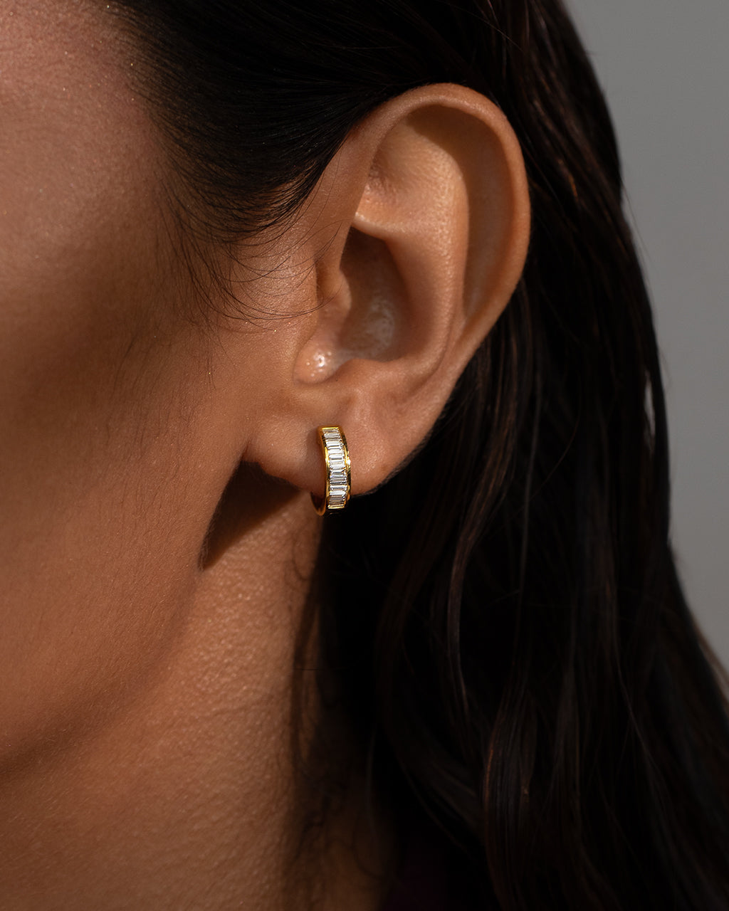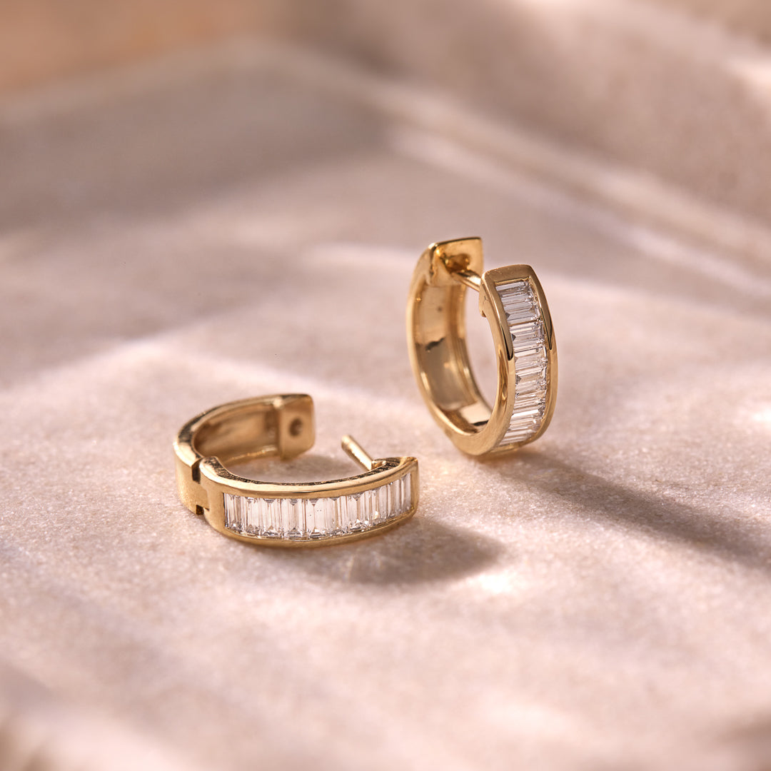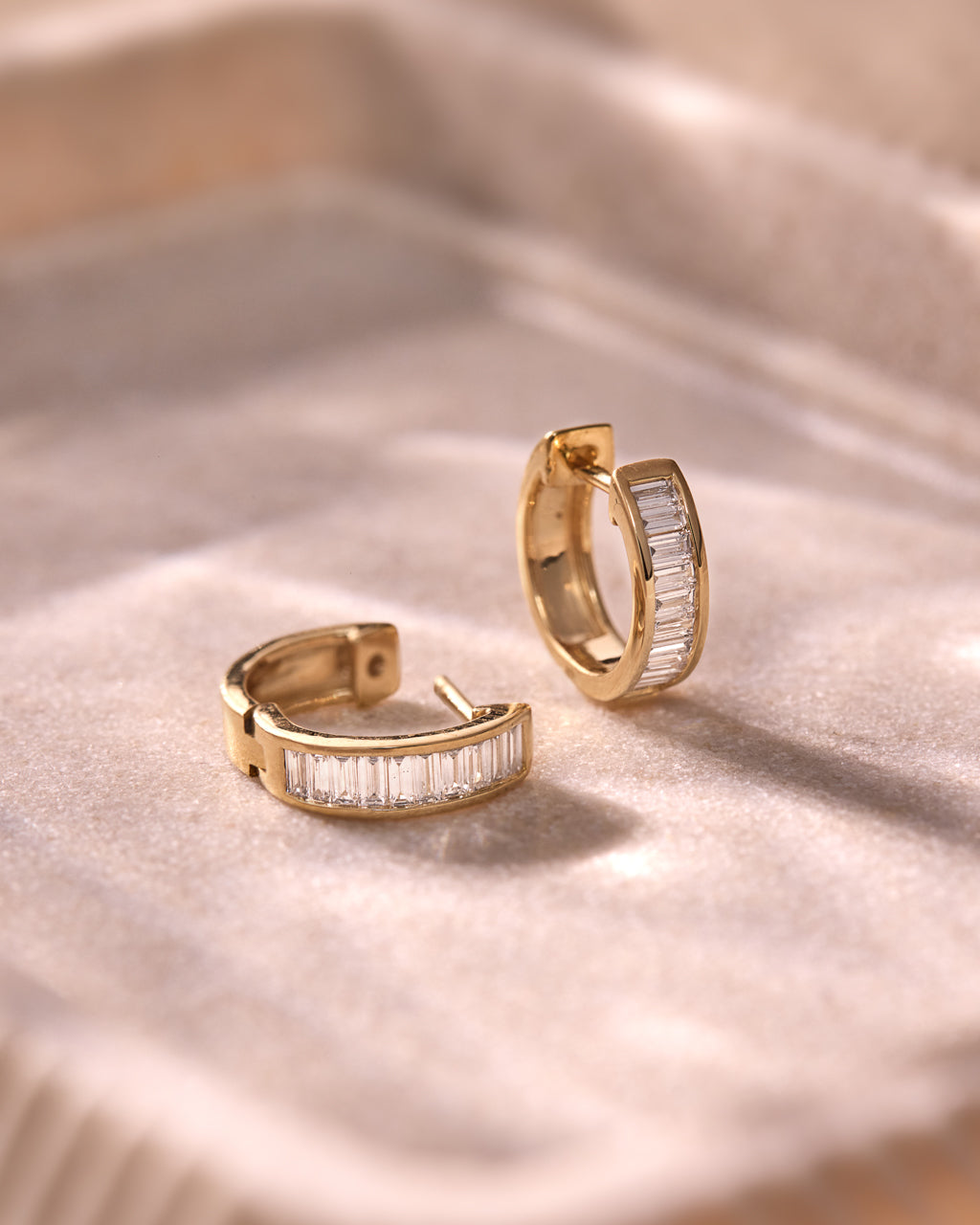 The Essence Diamond Earrings bring together sculptural gold and tailored baguette sparkle—made to shine in your daily rotation or elevate any occasion.