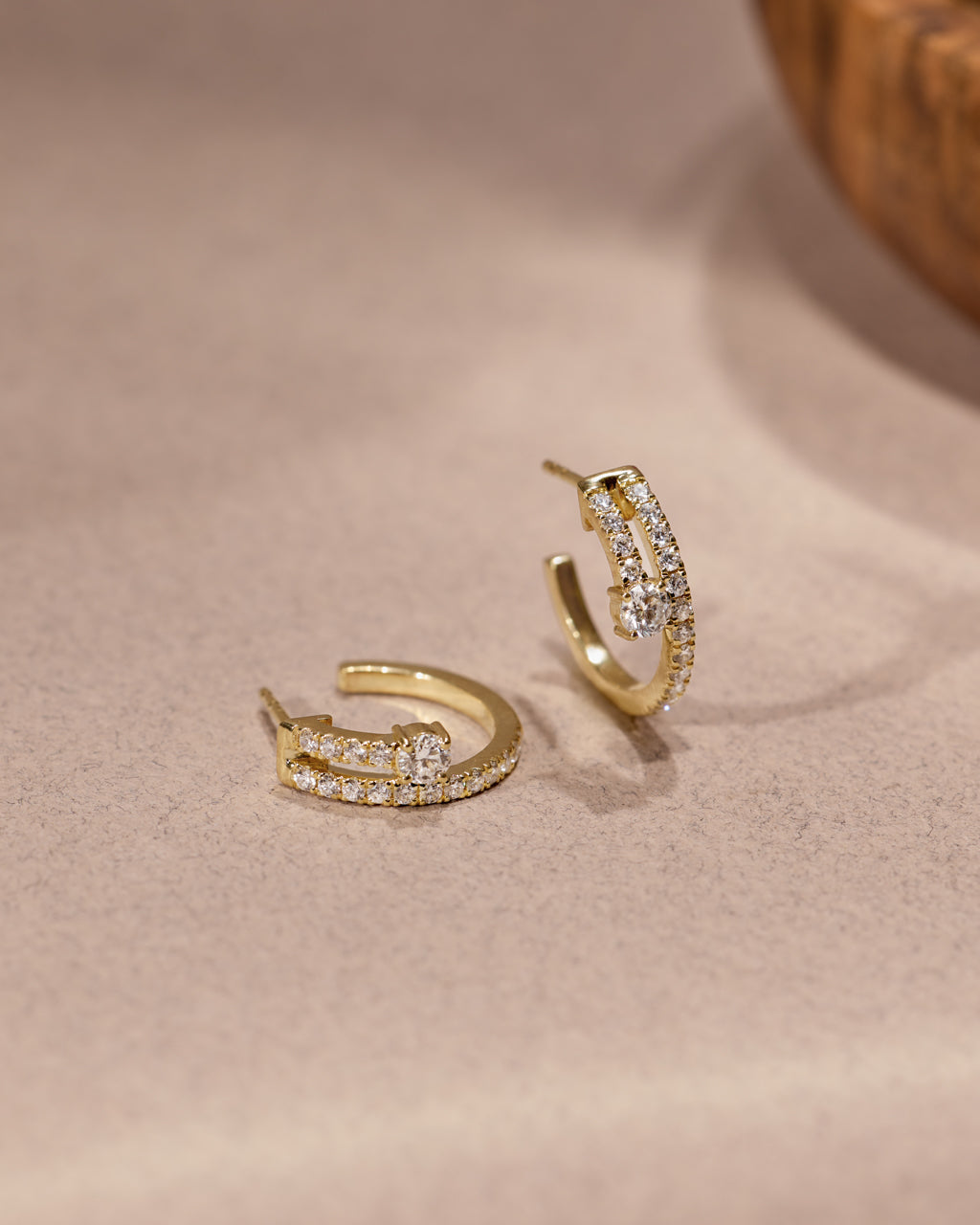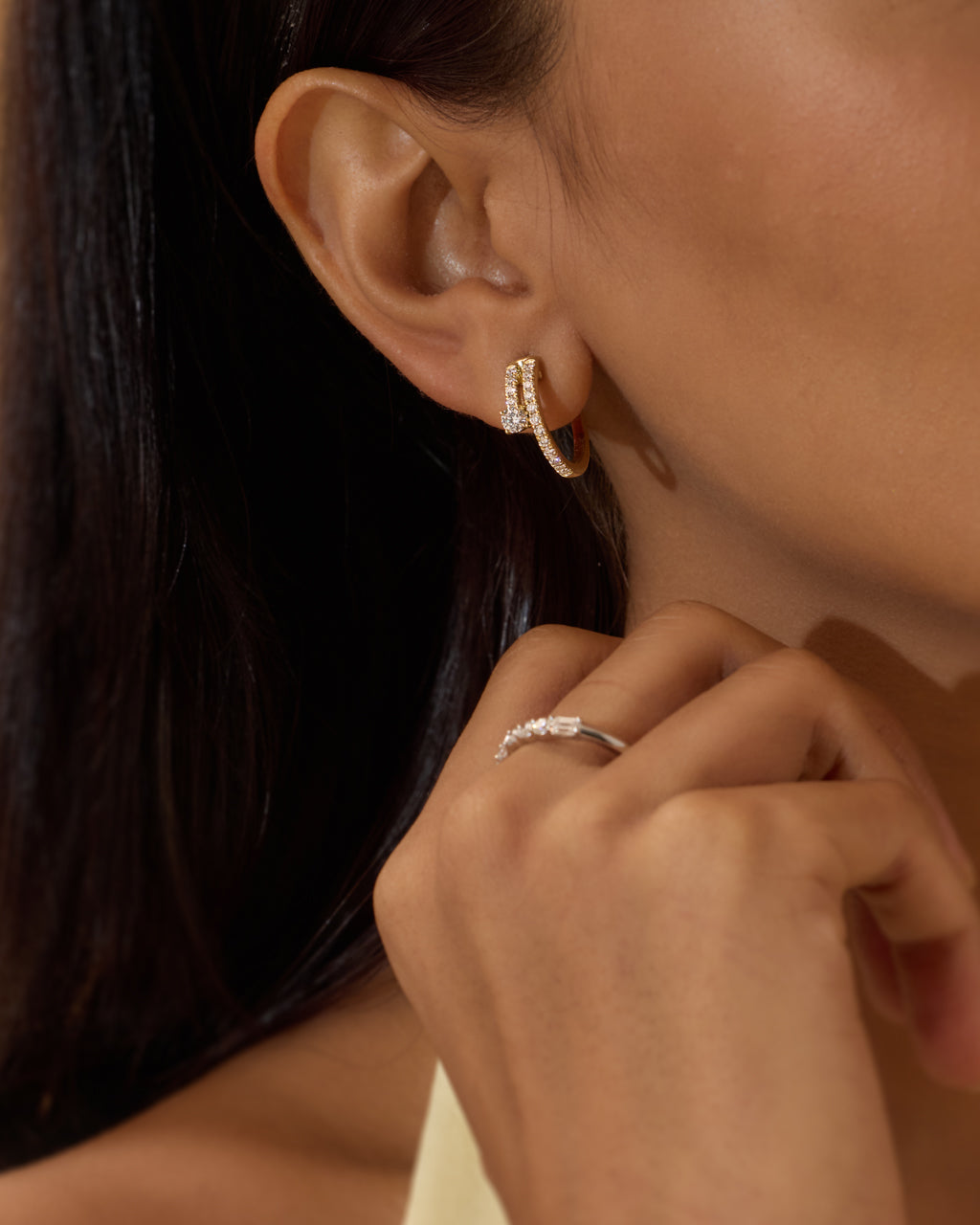 Effortlessly polished—the Everyday Chic Diamond Earrings in polished 14kt Gold Vermeil feature sleek hoops accented with shimmering diamonds, crafted to move with you from morning meetings to late-night plans.