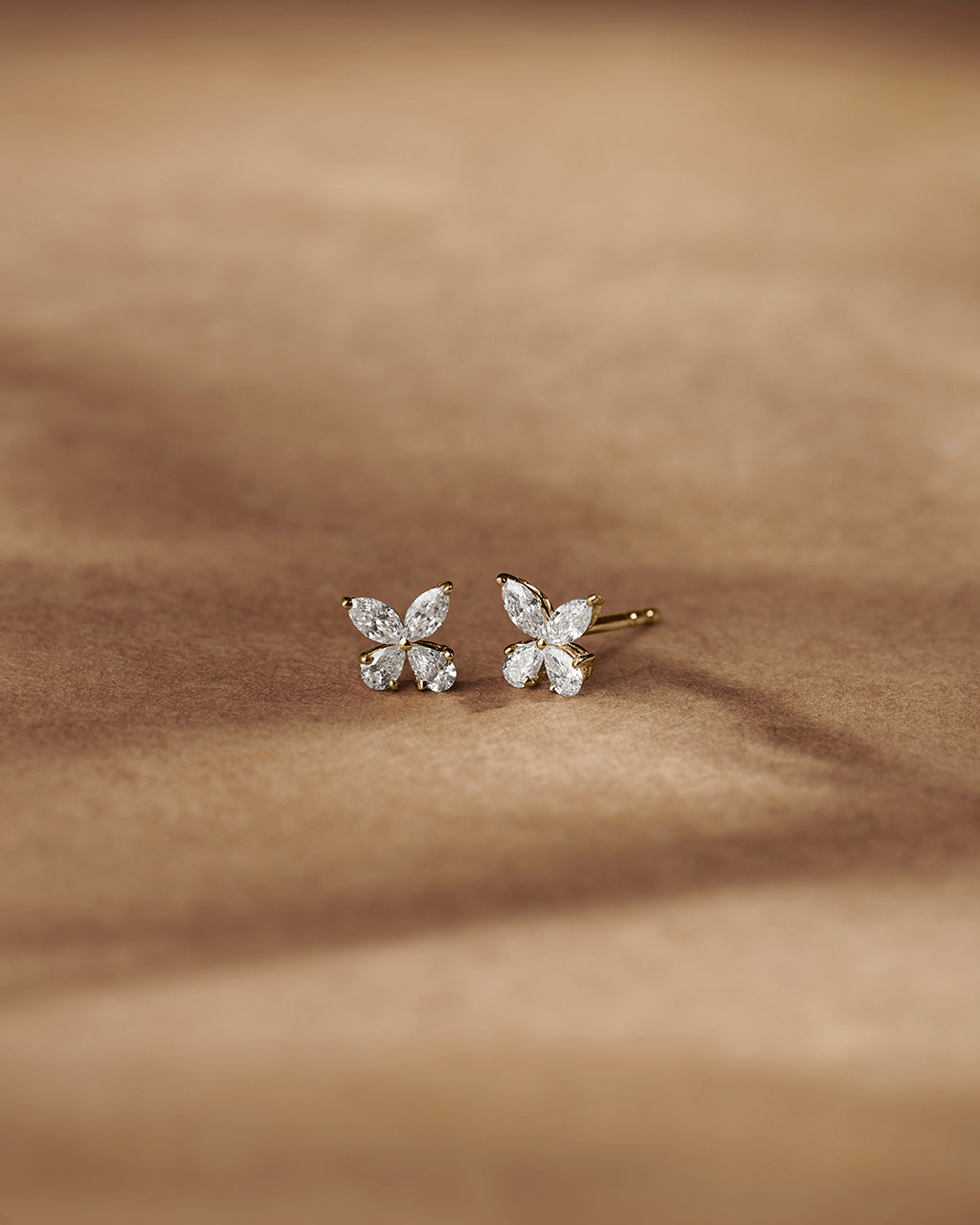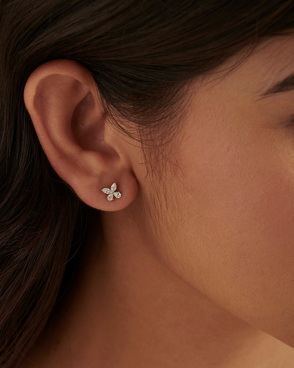 Diamonds that dance without trying. Crafted in 14kt gold vermeil, the Flutter Diamond Studs are a delicate nod to nature, making them an effortless choice for both casual and dressed-up moments.