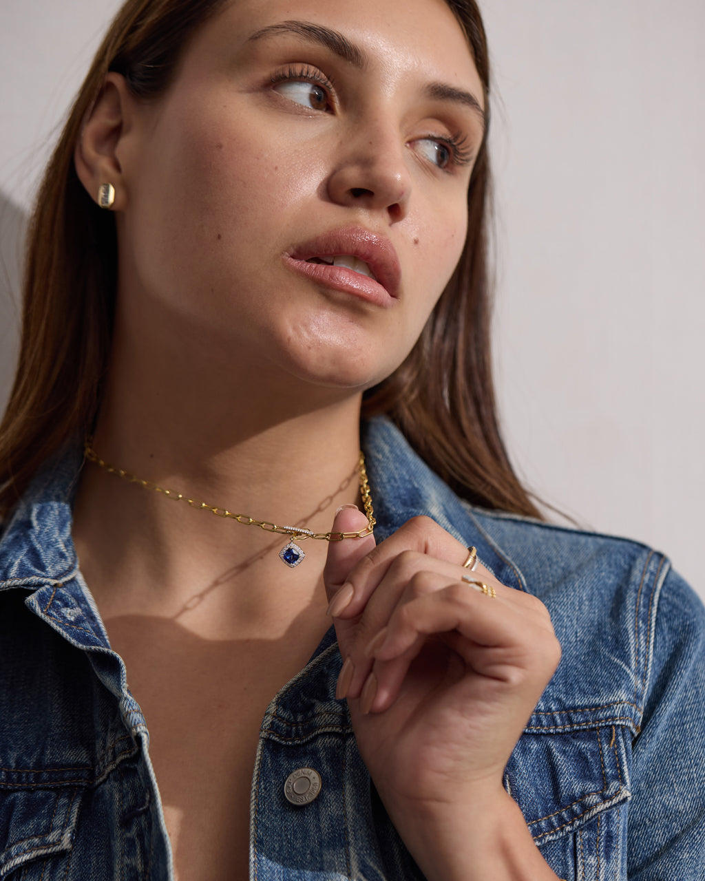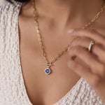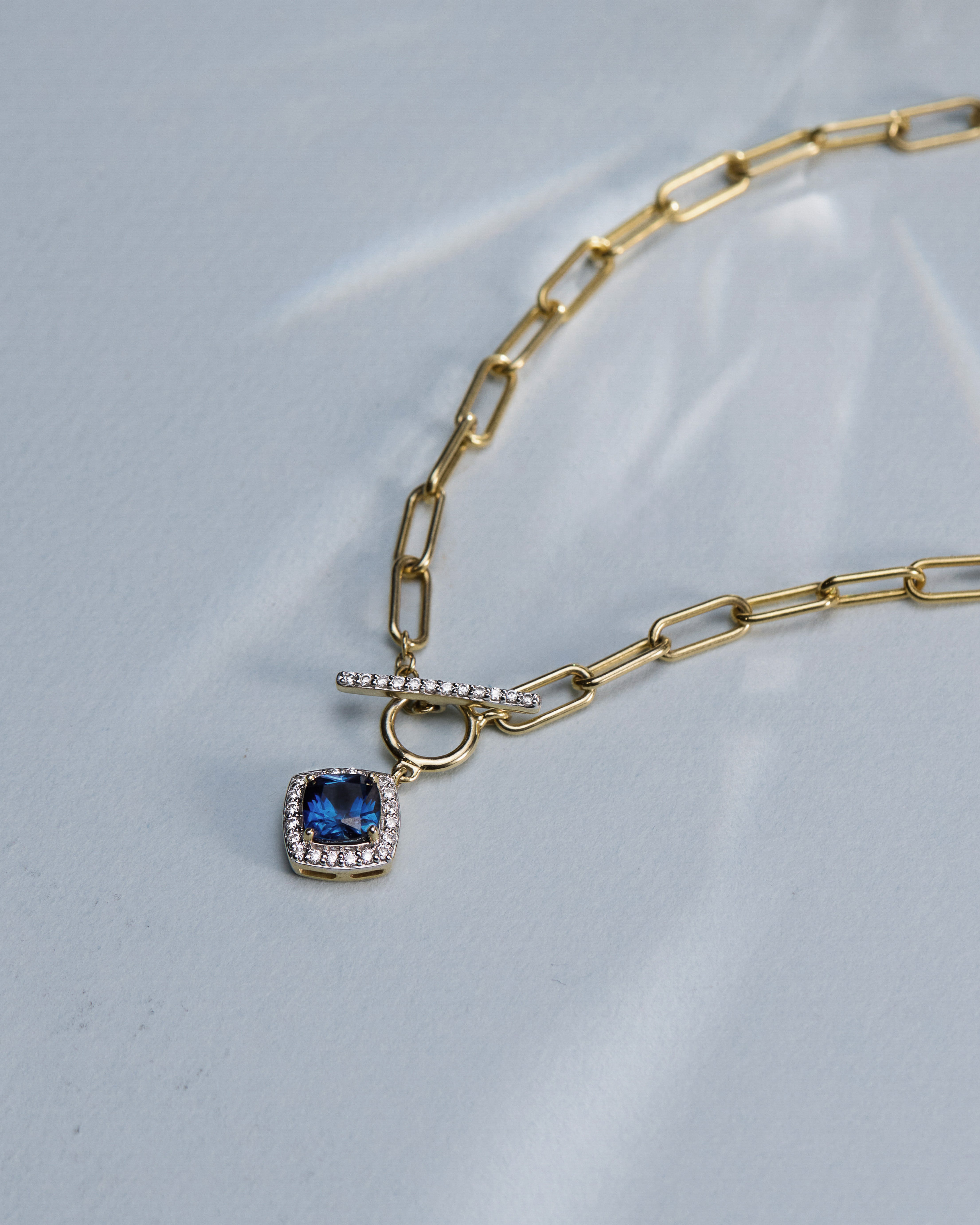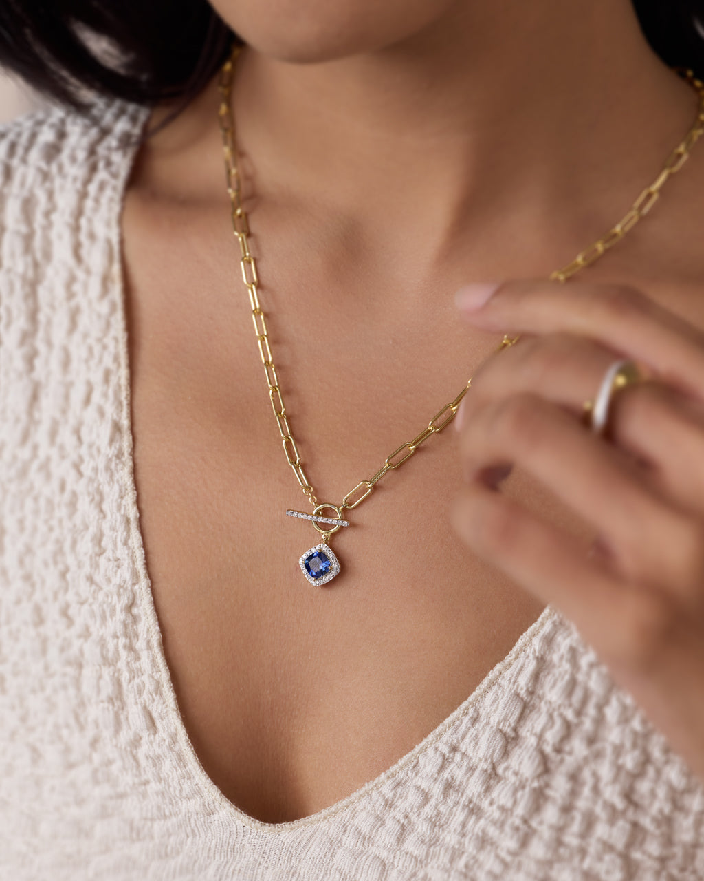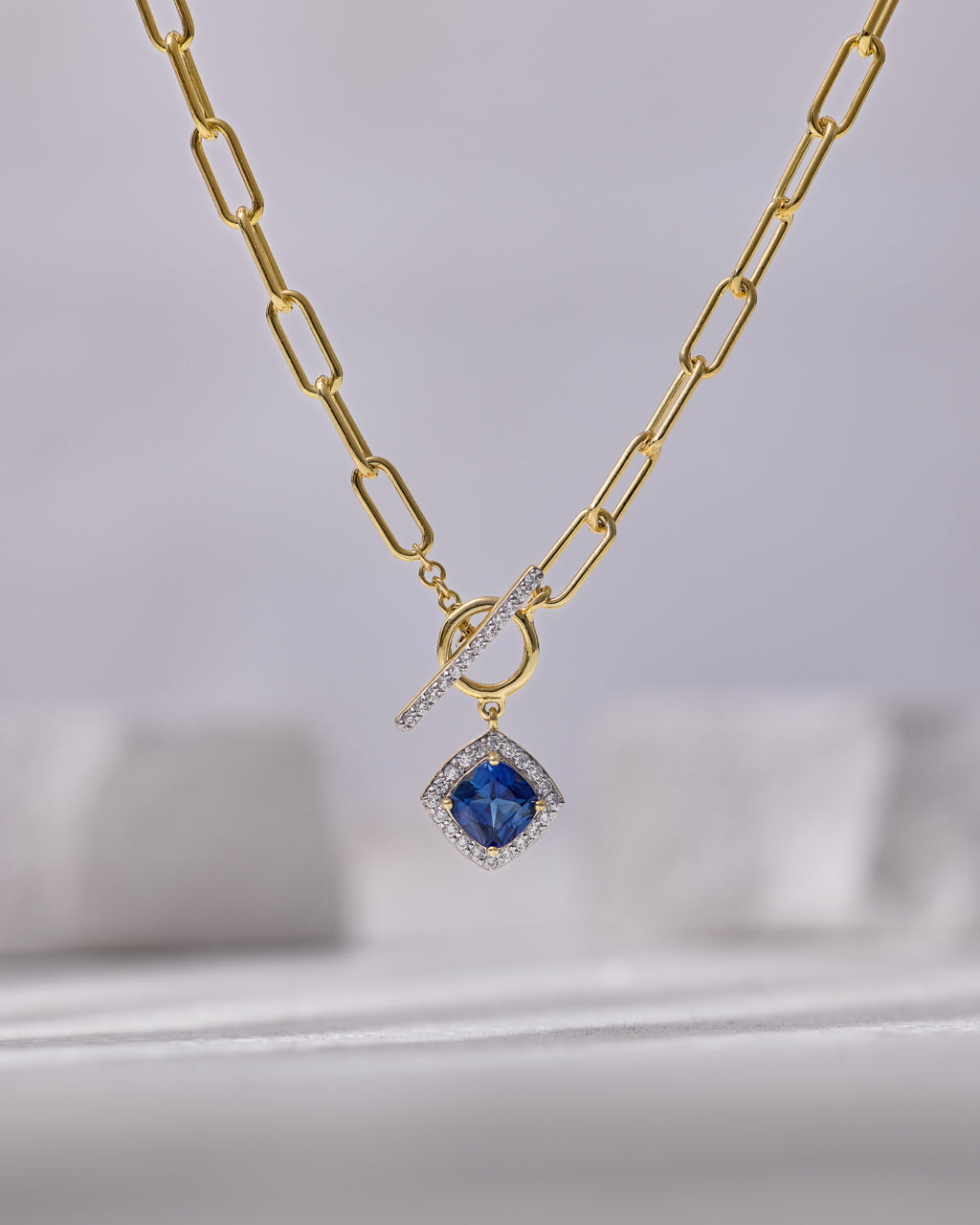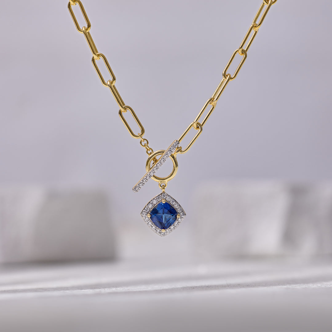 Glow your own way with the Gemstone Glow Toggle Necklace in 14kt Gold Vermeil. Featuring a striking Created Blue Sapphire pendant, this toggle-style necklace instantly adds a pop of color and personality to your everyday style.